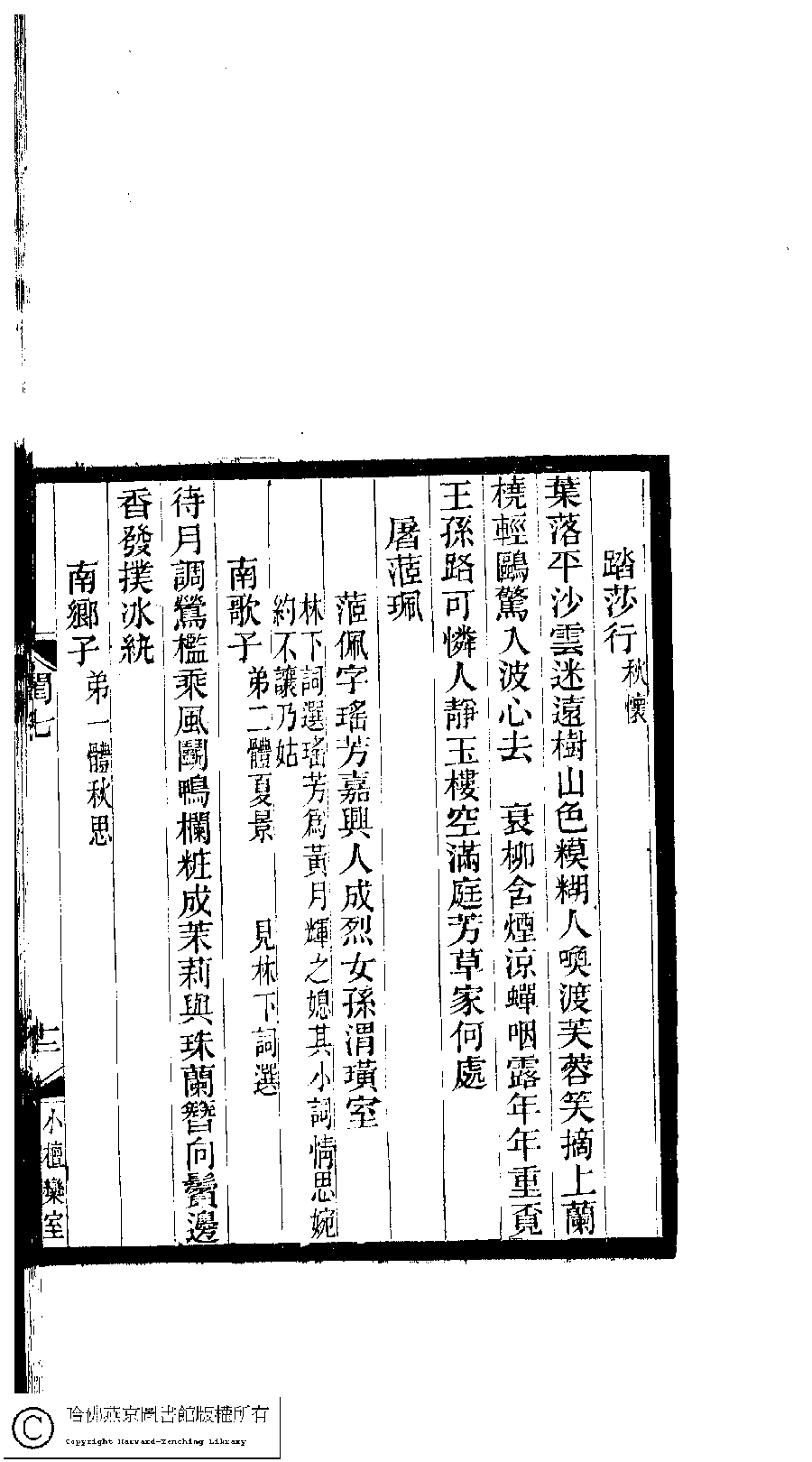 閨秀詞鈔﹕十六卷(清徐乃昌輯) Gui xiu ci chao: 16 juan (edited by Xu Naichang, Qing dynasty) , pp. 7.12a.