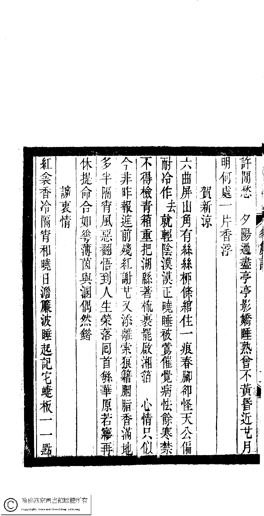 | 秋波媚 : 題汪沅蘭女史白蓮畫卷 Qiu bo mei : Ti Wang Yuanlan nü shi bai lian hua juan 詞 ci 吳藻﹐號玉岑子﹐字蘋香﹐又名花簾詞人 Wu Zao, hao: Yucenzi, zi: Pingxiang 小檀欒室彙刻閨秀詞﹕十集一百種一百卷(清徐乃昌輯) 花簾詞﹕一卷 Xiao tan luan shi hui ke gui xiu ci: 10 ji 100 zhong 100 juan (edited by Xu Naichang, Qing dynasty) Hua lian ci: 1 juan, pp. 花簾詞.3a,花簾詞.3b. |