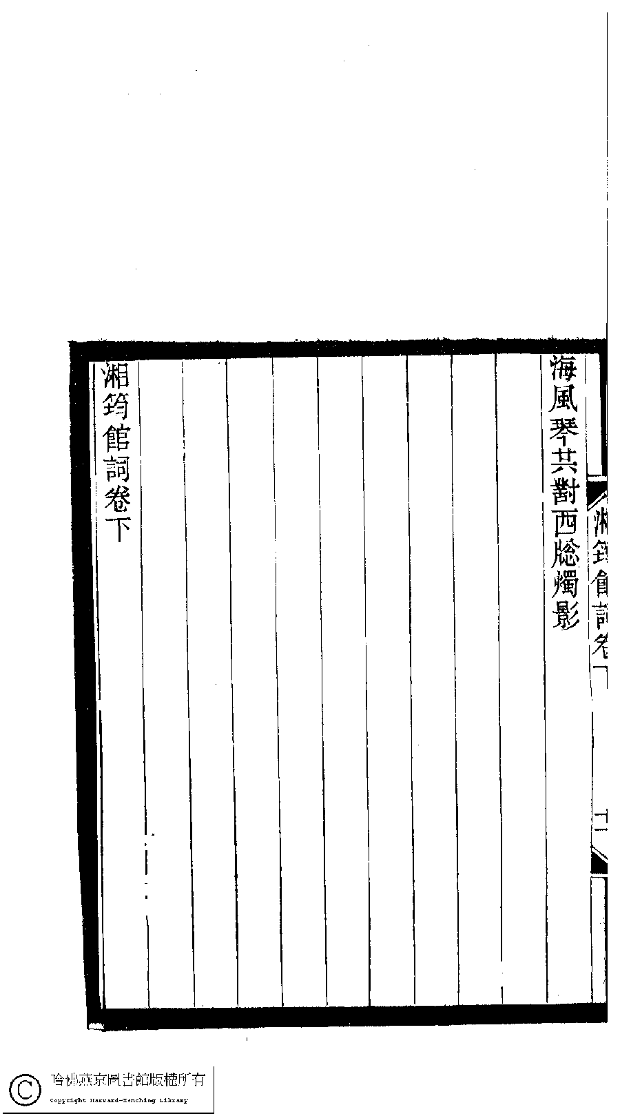 | 西江月 : 自題詞稾兼寄仙品妹 Xi jiang yue : Zi ti ci gao jian ji Xianpin mei 詞 ci 孫雲鳳﹐字碧梧 Sun Yunfeng, zi: Biwu 小檀欒室彙刻閨秀詞﹕十集一百種一百卷(清徐乃昌輯) 湘雲館詞﹕二卷 Xiao tan luan shi hui ke gui xiu ci: 10 ji 100 zhong 100 juan (edited by Xu Naichang, Qing dynasty) Xiang yun guan ci: 2 juan, pp. 卷下.11a,卷下.11b. |
