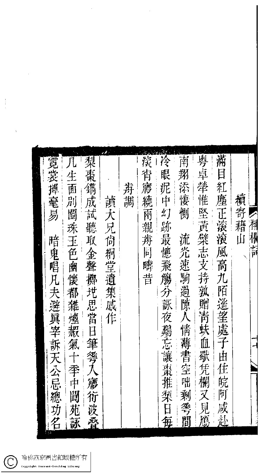 | 前調[滿江紅] : 讀大兄尚絅堂遺集感作 Qian diao[Man jiang hong] : Du da xiong Shang Jiongtang yi ji gan zuo 詞 ci 劉琬懷﹐號撰芳﹐字韞如 Liu Wanhuai, hao: Zhuanfang, zi: Yunru 小檀欒室彙刻閨秀詞﹕十集一百種一百卷(清徐乃昌輯) 補欄詞﹕一卷 Xiao tan luan shi hui ke gui xiu ci: 10 ji 100 zhong 100 juan (edited by Xu Naichang, Qing dynasty) Bu lan ci: 1 juan, pp. 補欄詞.17b,補欄詞.18a. |