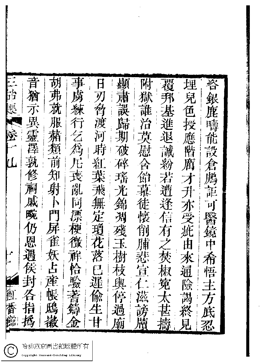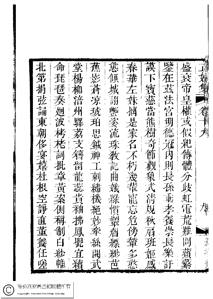 | 輯歷代后妃表成詩以落之 Ji li dai hou fei biao cheng shi yi luo zhi 詩 - 五言古詩 shi - wuyangushi 陳爾士﹐號靜友﹐字煒卿 Chen Ershi, hao: Jingyou, zi: Weiqing 國朝閨秀正始集﹕二十卷﹐附錄﹕一卷﹐補遺﹕一卷﹐又附題詞﹕一卷(清惲珠輯) Guo chao gui xiu zheng shi ji: 20 juan, fu lu: 1 juan, bu yi: 1 juan, you fu ti ci: 1 juan (edited by Yun Zhu, Qing dynasty) , pp. 19.10a,19.10b,19.9a,19.9b. |