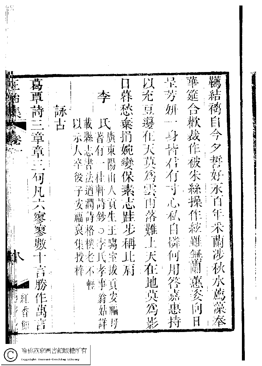 | 同聲歌 Tong sheng ge 詩 - 樂府 shi - yuefu 沈蕙玉﹐字畹亭﹐又名綠莊 Shen Huiyu, zi: Wanting 國朝閨秀正始集﹕二十卷﹐附錄﹕一卷﹐補遺﹕一卷﹐又附題詞﹕一卷(清惲珠輯) Guo chao gui xiu zheng shi ji: 20 juan, fu lu: 1 juan, bu yi: 1 juan, you fu ti ci: 1 juan (edited by Yun Zhu, Qing dynasty) , pp. 1.7b,1.8a. |
