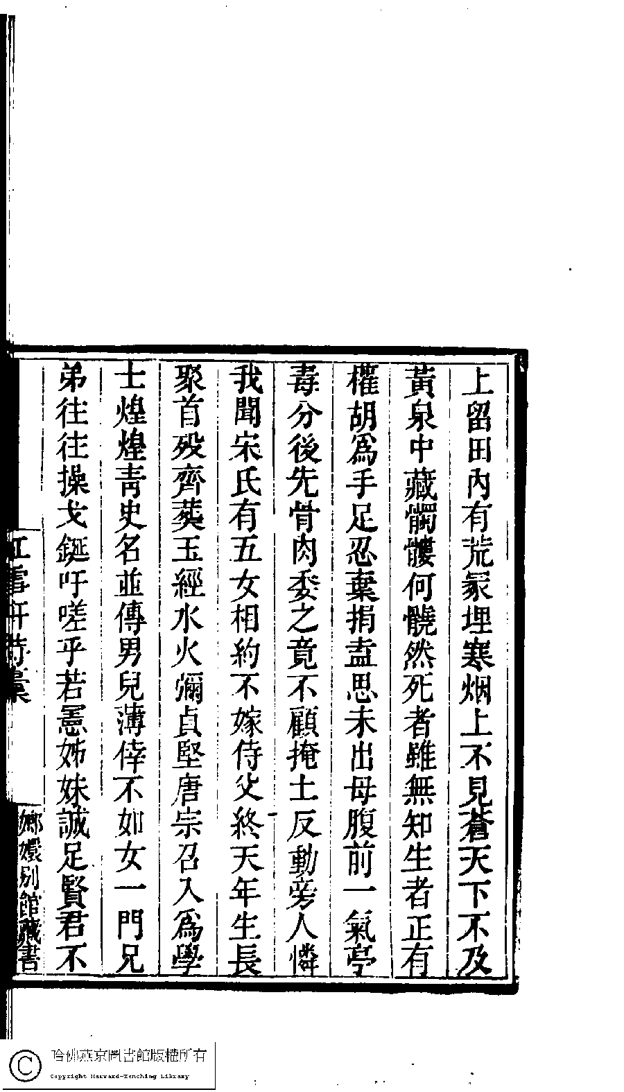 國朝閨閣詩鈔﹕一百種一百卷(清蔡殿齊輯) 紅雪軒詩稿﹕一卷 Guo chao gui ge shi chao: 100 zhong 100 juan (edited by Cai Dianqi, Qing dynasty) Hong xue xuan shi gao: 1 juan, pp. 4.51b,4.52a,4.52b.