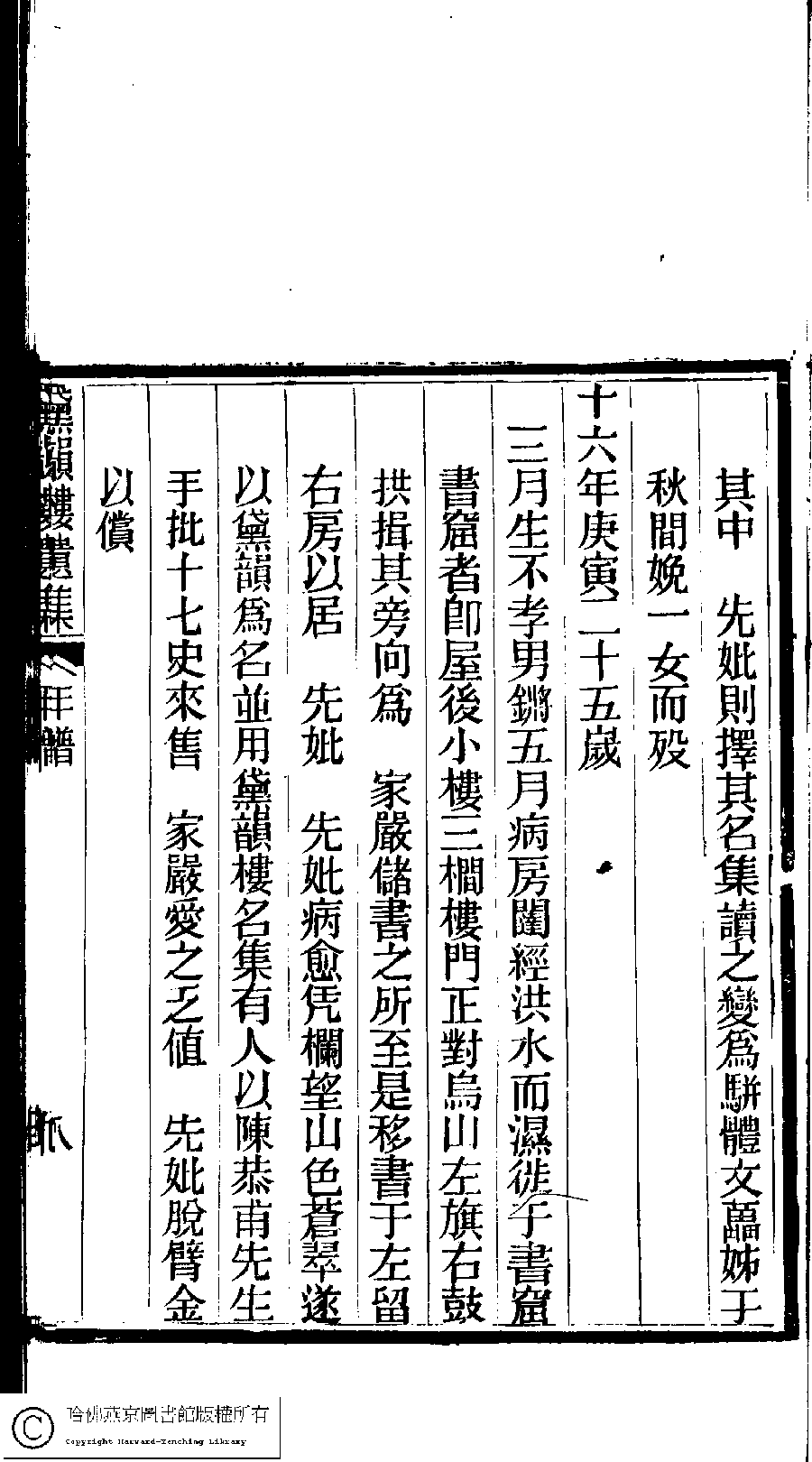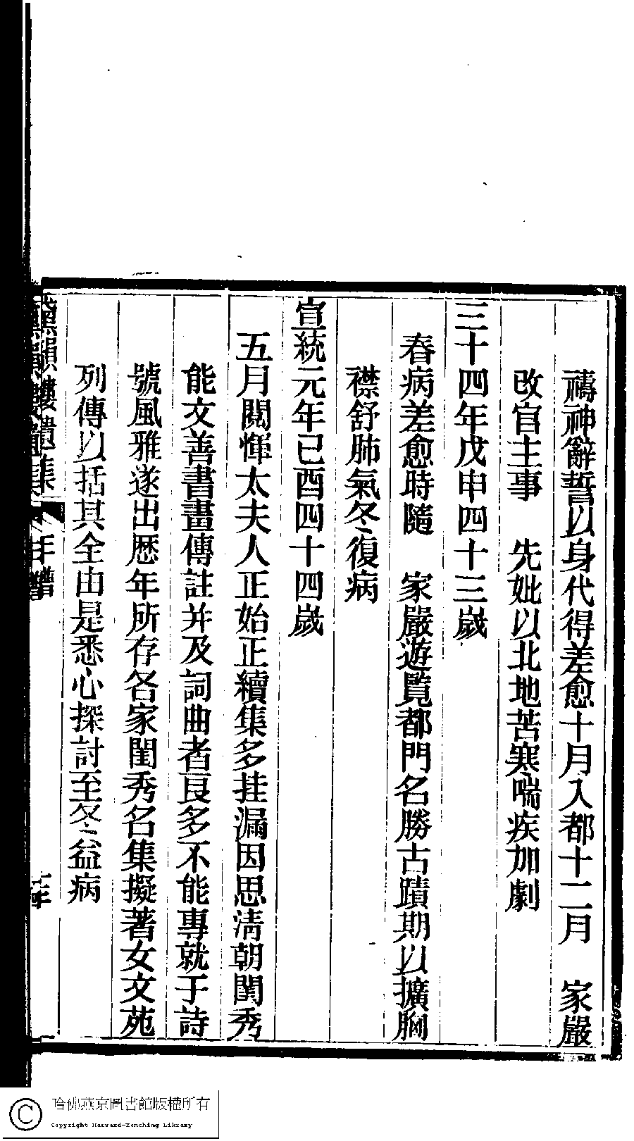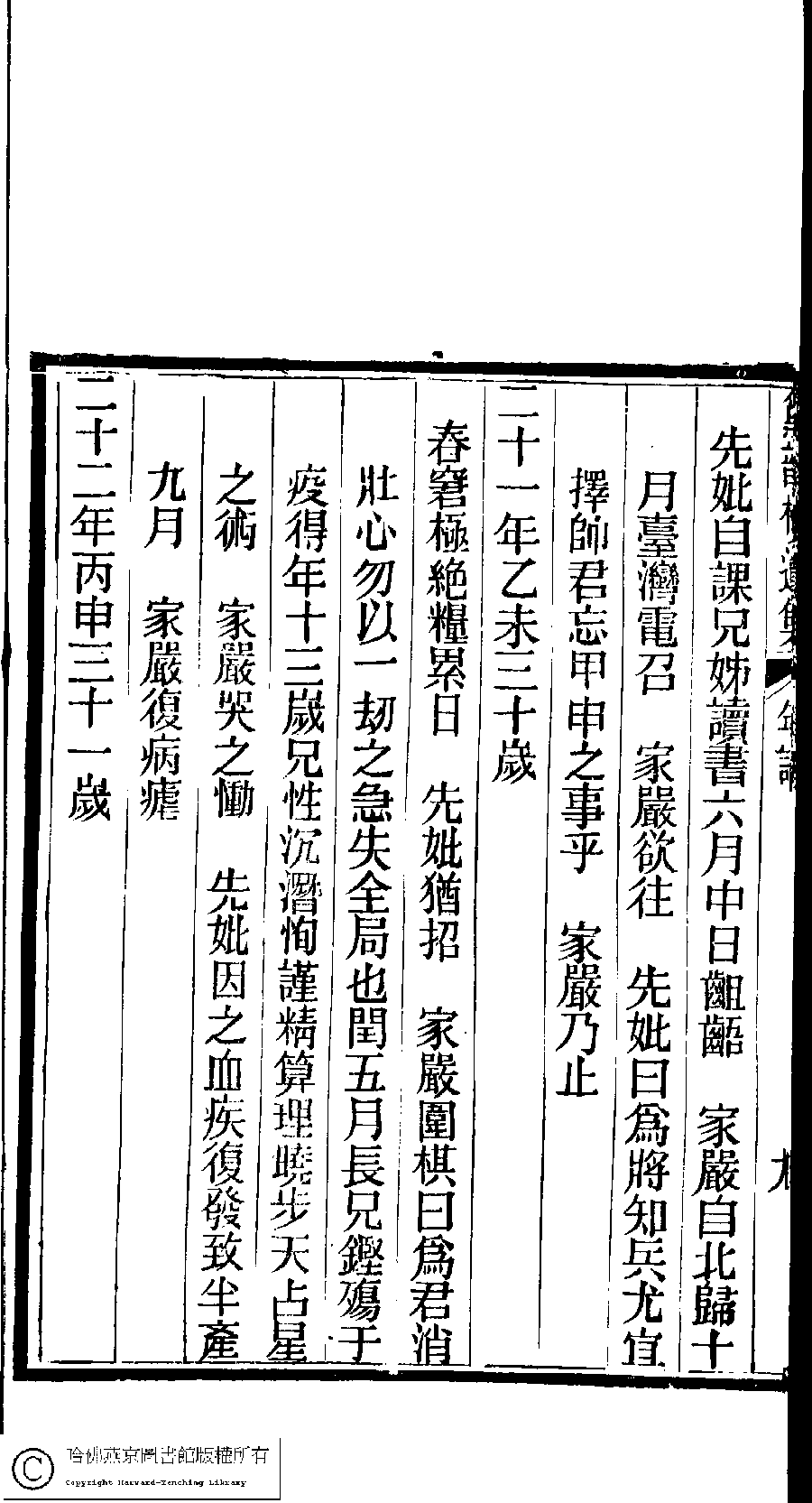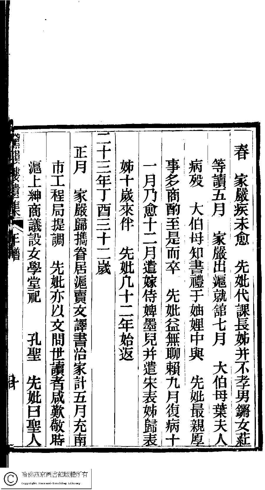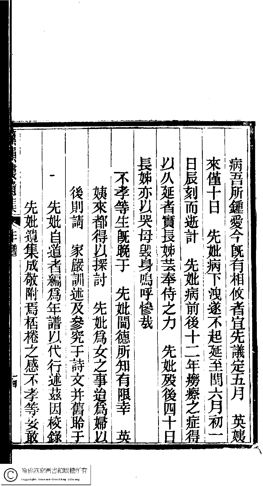 | 先妣薛恭人年譜 Xian pi Xue gong ren nian pu 文﹕年譜 Wen: Nian pu 陳鏘 Chen Qiang 陳瑩 Chen Ying 陳葒 Chen Hong 黛韻樓遺集(清薛紹徽撰) Dai yun lou shi wen ji (by Xue Shaohui, Qing dynasty) , pp. 年譜.10a,年譜.10b,年譜.11a,年譜.11b,年譜.12a,年譜.12b,年譜.13a,年譜.13b,年譜.14a,年譜.14b,年譜.1a,年譜.1b,年譜.2a,年譜.2b,年譜.3a,年譜.3b,年譜.4a,年譜.4b,年譜.5a,年譜.5b,年譜.6a,年譜.6b,年譜.7a,年譜.7b,年譜.8a,年譜.8b,年譜.9a,年譜.9b. |