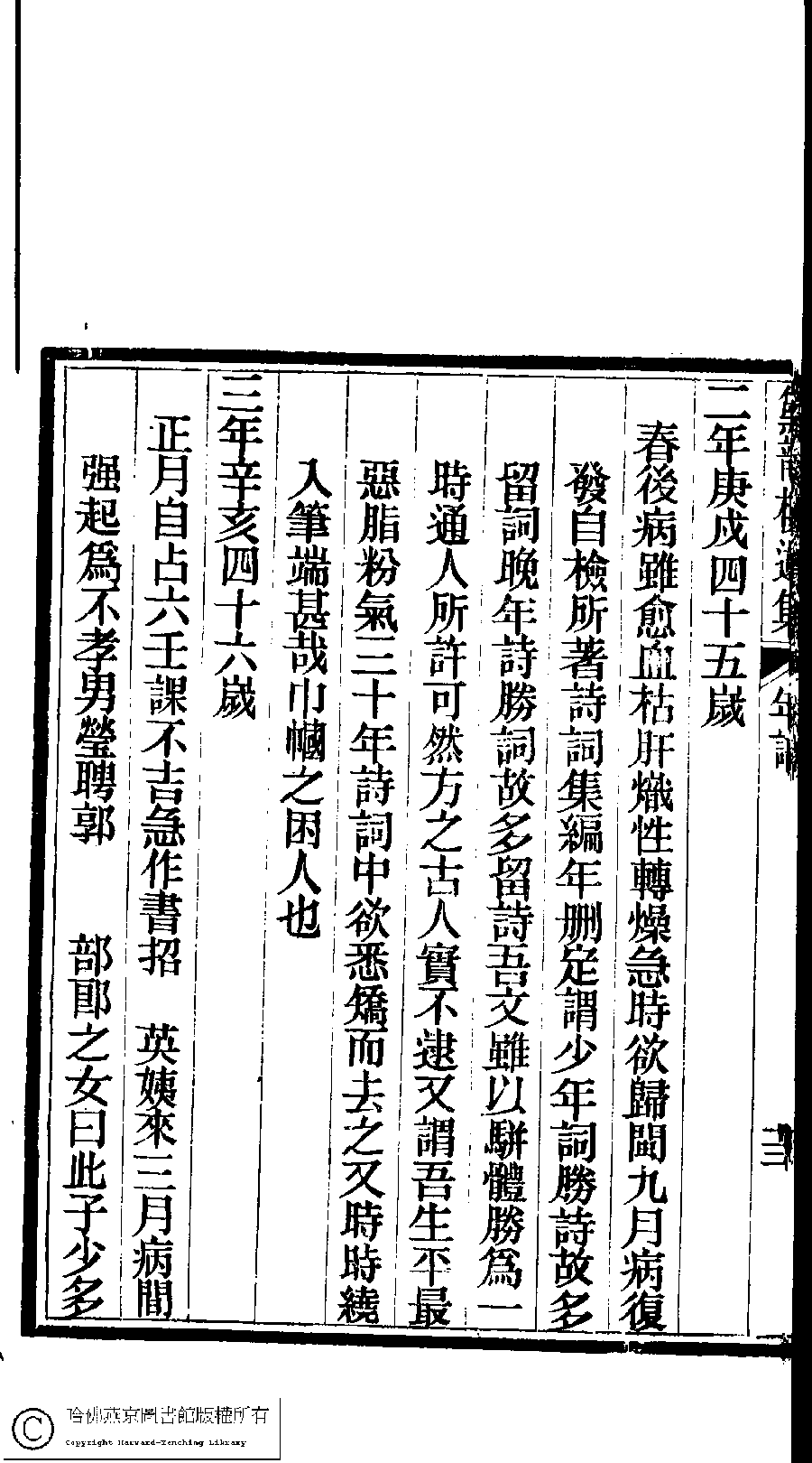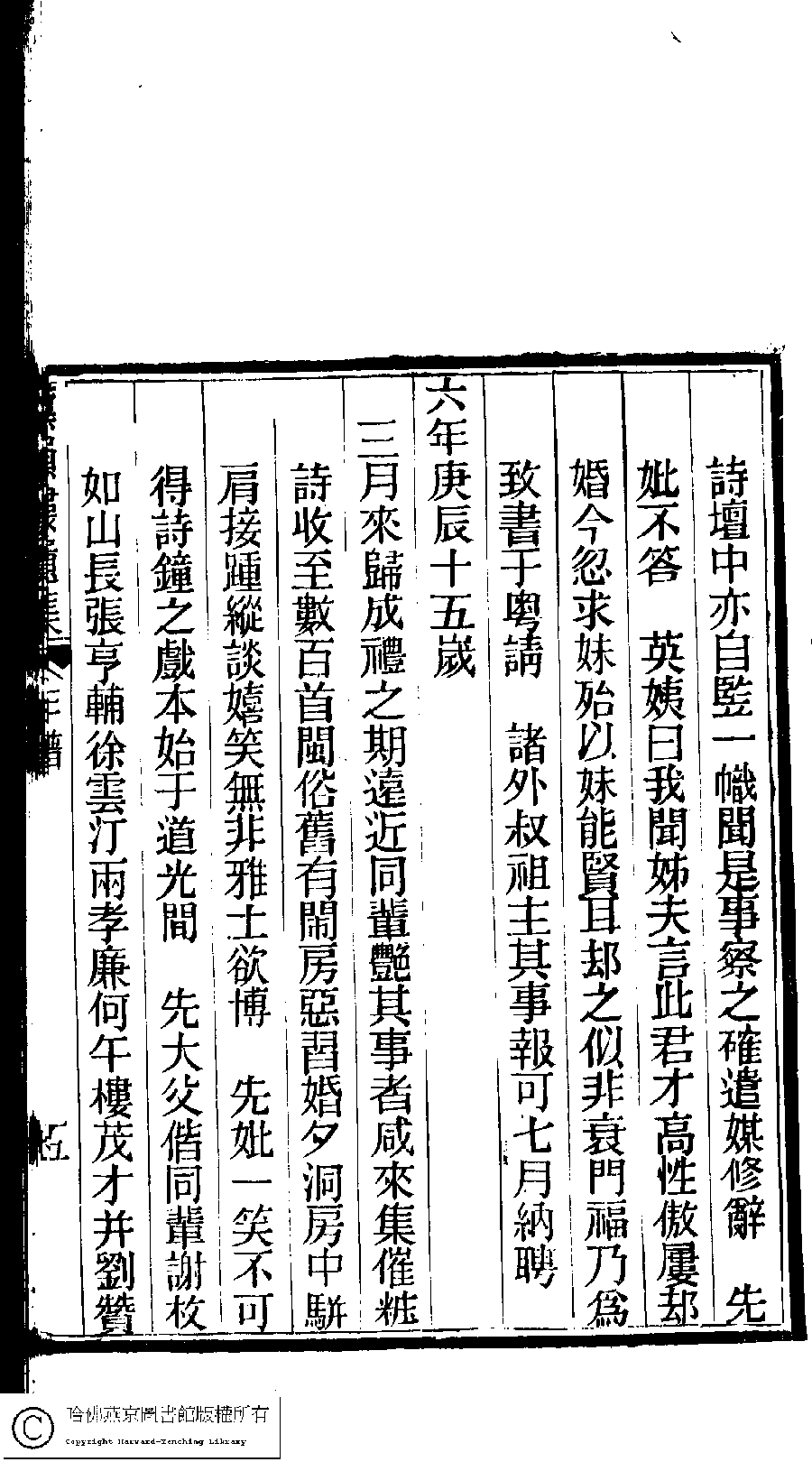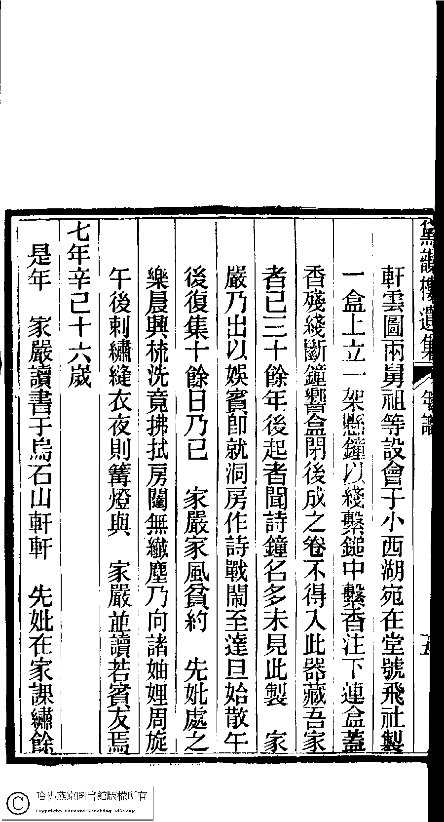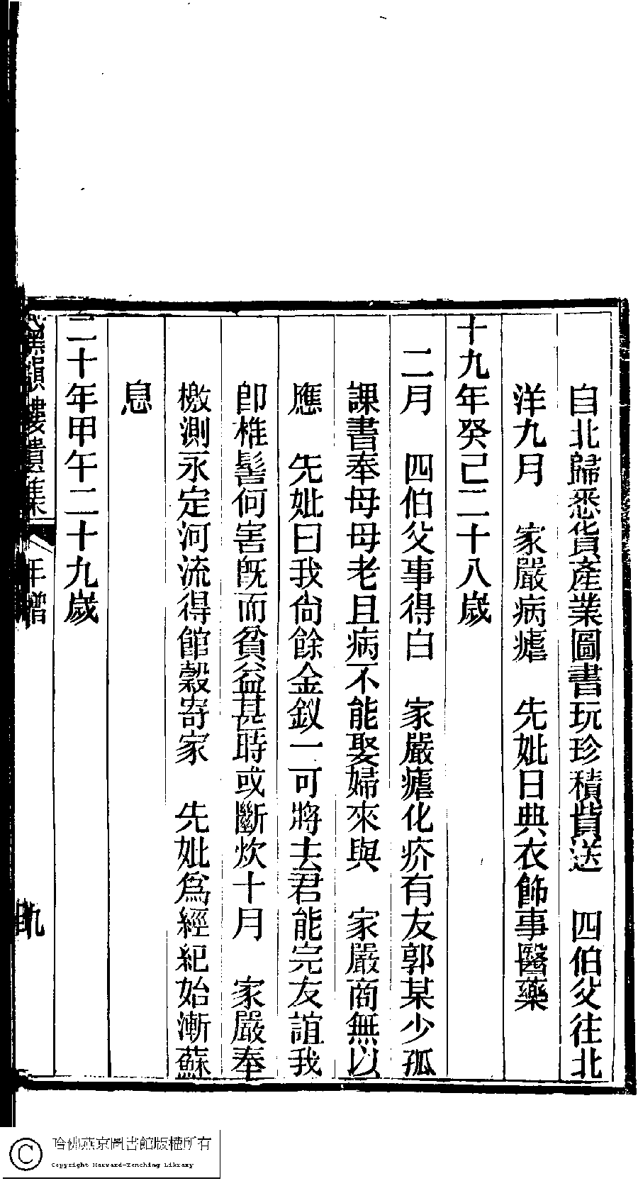 | 先妣薛恭人年譜 Xian pi Xue gong ren nian pu 文﹕年譜 Wen: Nian pu 陳鏘 Chen Qiang 陳瑩 Chen Ying 陳葒 Chen Hong 黛韻樓遺集(清薛紹徽撰) Dai yun lou shi wen ji (by Xue Shaohui, Qing dynasty) , pp. 年譜.10a,年譜.10b,年譜.11a,年譜.11b,年譜.12a,年譜.12b,年譜.13a,年譜.13b,年譜.14a,年譜.14b,年譜.1a,年譜.1b,年譜.2a,年譜.2b,年譜.3a,年譜.3b,年譜.4a,年譜.4b,年譜.5a,年譜.5b,年譜.6a,年譜.6b,年譜.7a,年譜.7b,年譜.8a,年譜.8b,年譜.9a,年譜.9b. |