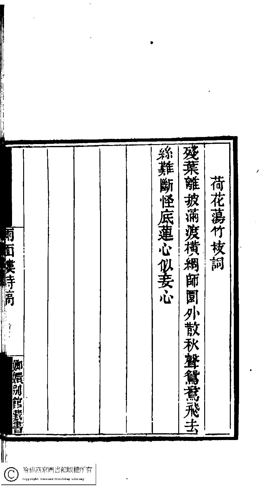 國朝閨閣詩鈔﹕一百種一百卷(清蔡殿齊輯) 兩面樓詩稿﹕一卷 Guo chao gui ge shi chao: 100 zhong 100 juan (edited by Cai Dianqi, Qing dynasty) Liang mian lou shi gao: 1 juan, pp. 5.42a,5.42b.