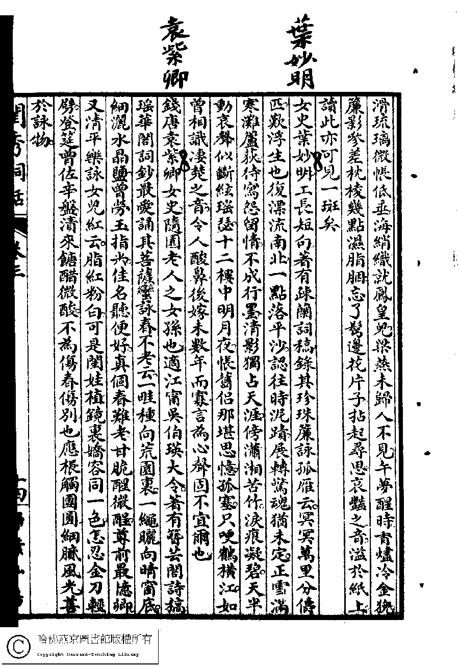 閨秀詞話﹕四卷(雷瑨、雷瑊輯) Gui xiu ci hua: 4 juan (edited by Lei Jin, Lei Jian) , pp. 3.13b,3.14a.