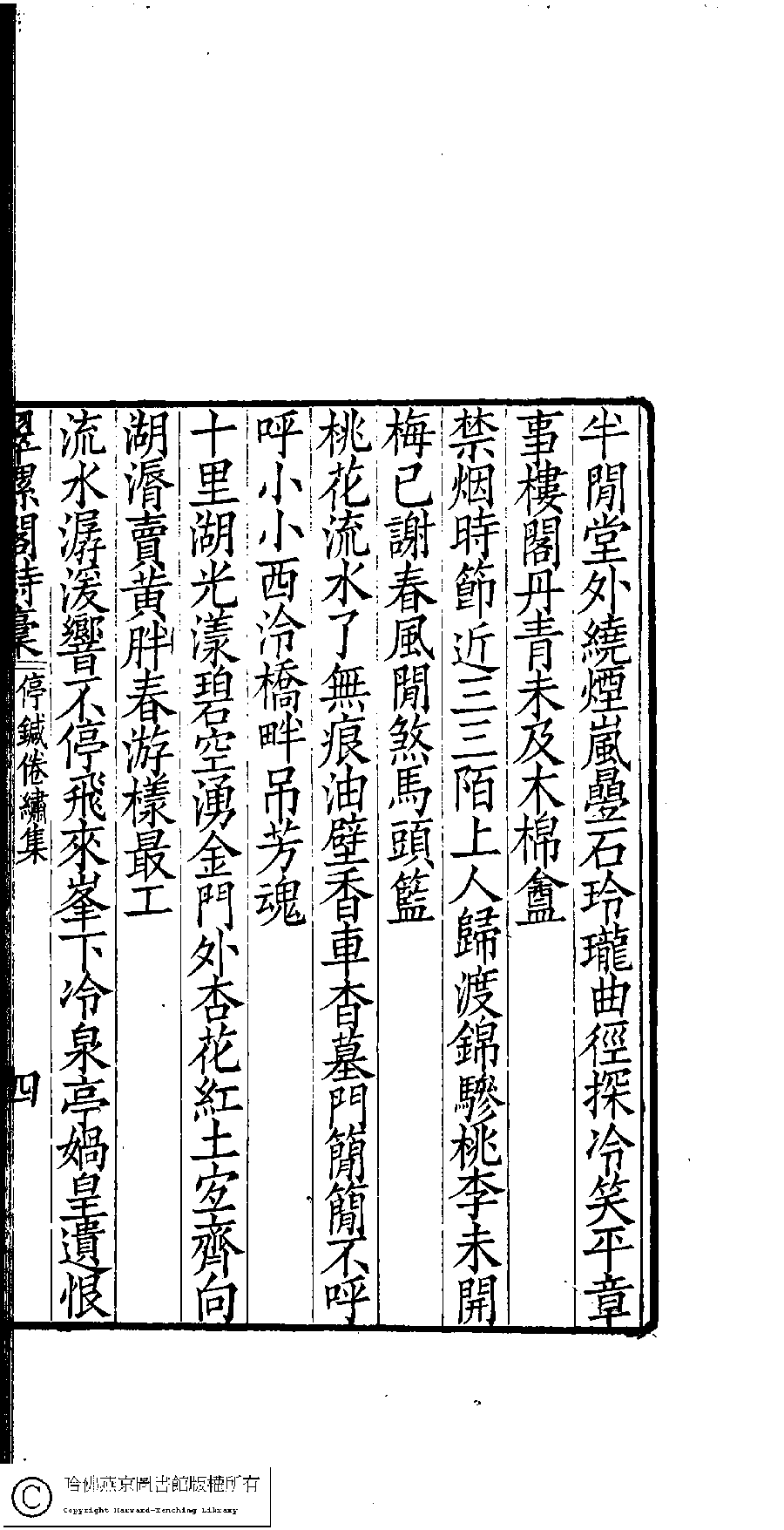 翠螺閣詩詞稾﹕五卷﹐附舞鏡集﹕一卷(清凌祉媛撰) Cui luo ge shi ci gao: 5 juan, fu wu jing ji: 1 juan (by Ling Zhiyuan, Qing dynasty) , pp. 詩稿.1.3b,詩稿.1.4a,詩稿.1.4b.