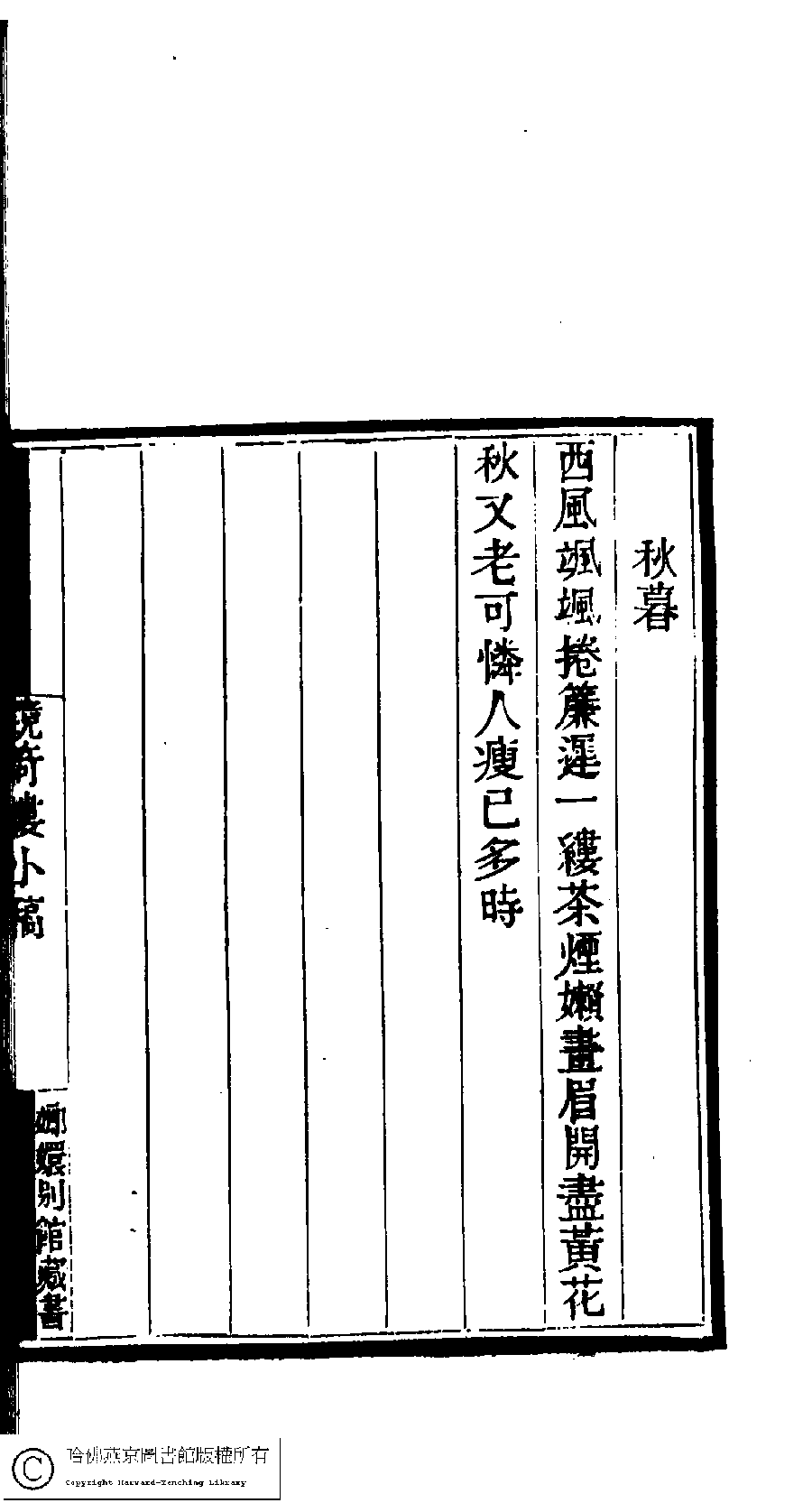 國朝閨閣詩鈔﹕一百種一百卷(清蔡殿齊輯) 鏡倚樓小稿﹕一卷 Guo chao gui ge shi chao: 100 zhong 100 juan (edited by Cai Dianqi, Qing dynasty) Jing yi lou xiao gao: 1 juan, pp. 10.41a,10.41b.