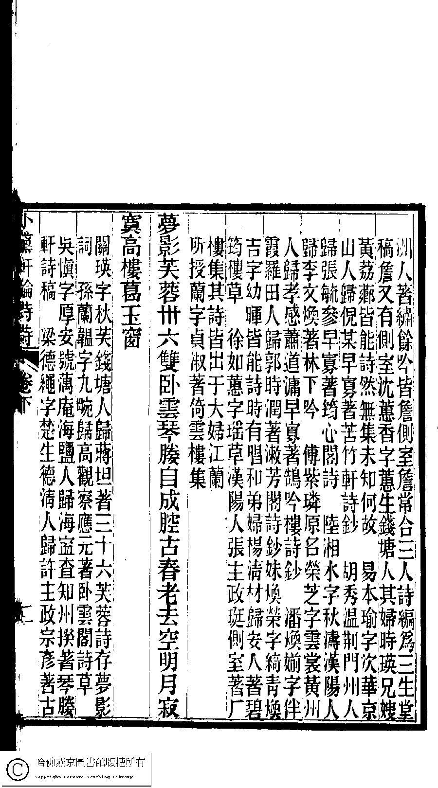 陳孝女遺集﹕二卷﹔小黛軒論詩詩﹕二卷(清陳芸撰) Chen xiao nü yi ji: 2 juan; Xiao dai xuan lun shi shi: 2 juan (by Chen Yun, Qing dynasty) , pp. 下.2a,下.2b.