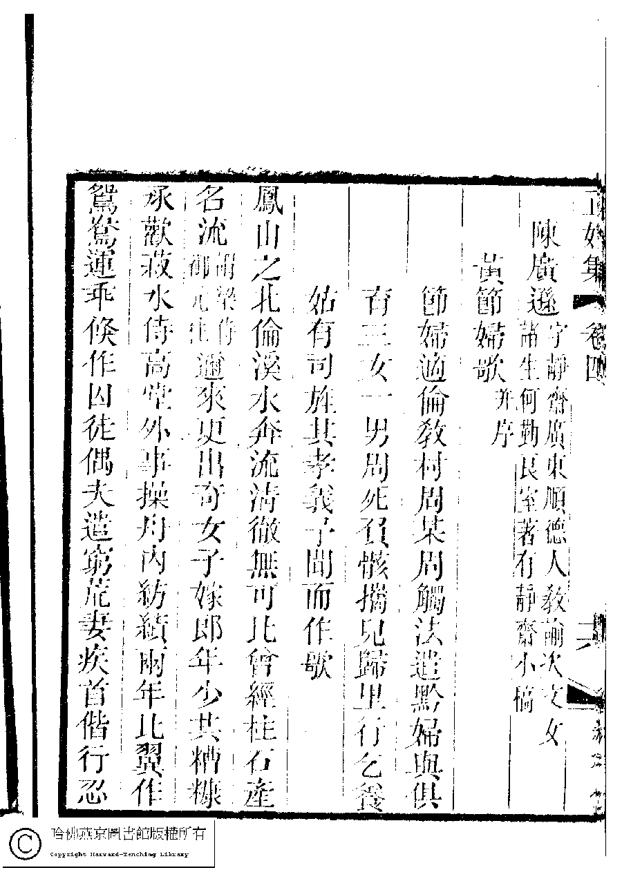 | 陳廣遜[略傳] Chen Guangxun [lüe zhuan] 文﹕略傳 Wen: lue zhuan 惲珠﹐號星聯﹐字珍浦﹐又名完顏惲珠, 蓉湖道人, 蓉湖女史, 蓉湖散人, 毗陵女史 Yun Zhu, hao: Xinglian, zi: Zhenpu 國朝閨秀正始集﹕二十卷﹐附錄﹕一卷﹐補遺﹕一卷﹐又附題詞﹕一卷(清惲珠輯) Guo chao gui xiu zheng shi ji: 20 juan, fu lu: 1 juan, bu yi: 1 juan, you fu ti ci: 1 juan (edited by Yun Zhu, Qing dynasty) , pp. 4.16b. |