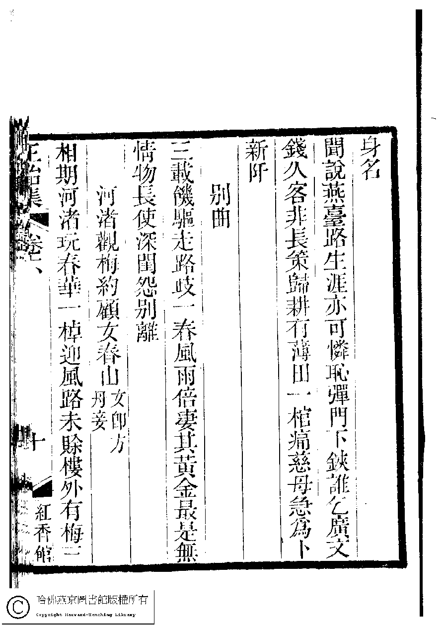 | 寄遠曲(四首) Ji yuan qu 詩 - 樂府 shi - yuefu 朱柔則﹐字順成﹐又名道珠 Zhu Rouze, zi: Shuncheng 國朝閨秀正始集﹕二十卷﹐附錄﹕一卷﹐補遺﹕一卷﹐又附題詞﹕一卷(清惲珠輯) Guo chao gui xiu zheng shi ji: 20 juan, fu lu: 1 juan, bu yi: 1 juan, you fu ti ci: 1 juan (edited by Yun Zhu, Qing dynasty) , pp. 6.10a,6.9b. |