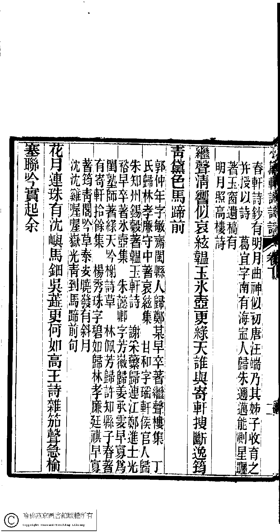 陳孝女遺集﹕二卷﹔小黛軒論詩詩﹕二卷(清陳芸撰) Chen xiao nü yi ji: 2 juan; Xiao dai xuan lun shi shi: 2 juan (by Chen Yun, Qing dynasty) , pp. 下.2b,下.3a.