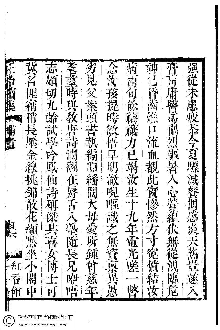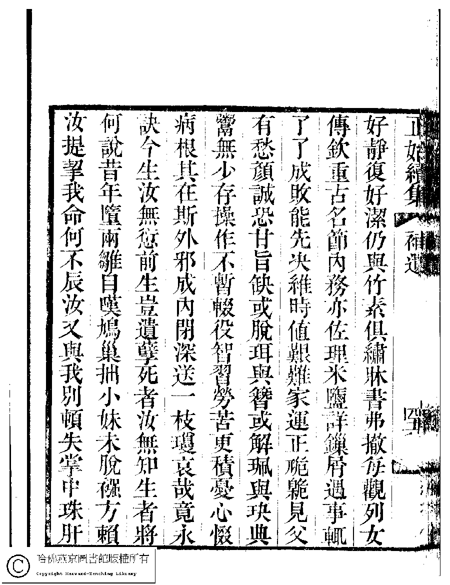 | 悼女馥華 Dao nü Fuhua 詩 - 五言古詩 shi - wuyangushi 金婉﹐字玉卿 Jin Wan, zi: Yuqing 國朝閨秀正始續集﹕十卷﹐附錄﹕一卷﹐補遺﹕一卷﹐輓詞﹕一卷(清惲珠輯) Guo chao gui xiu zheng shi xu ji: 10 juan, fu lu: 1 juan, bu yi: 1 juan, wan ci: 1 juan (edited by Yun Zhu, Qing dynasty) , pp. 補遺.45b,補遺.46a,補遺.46b,補遺.47a. |