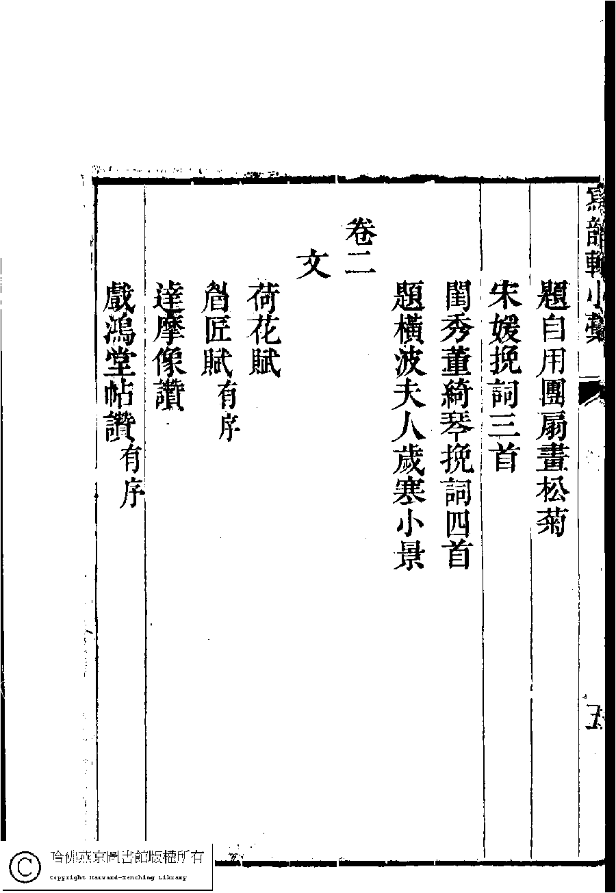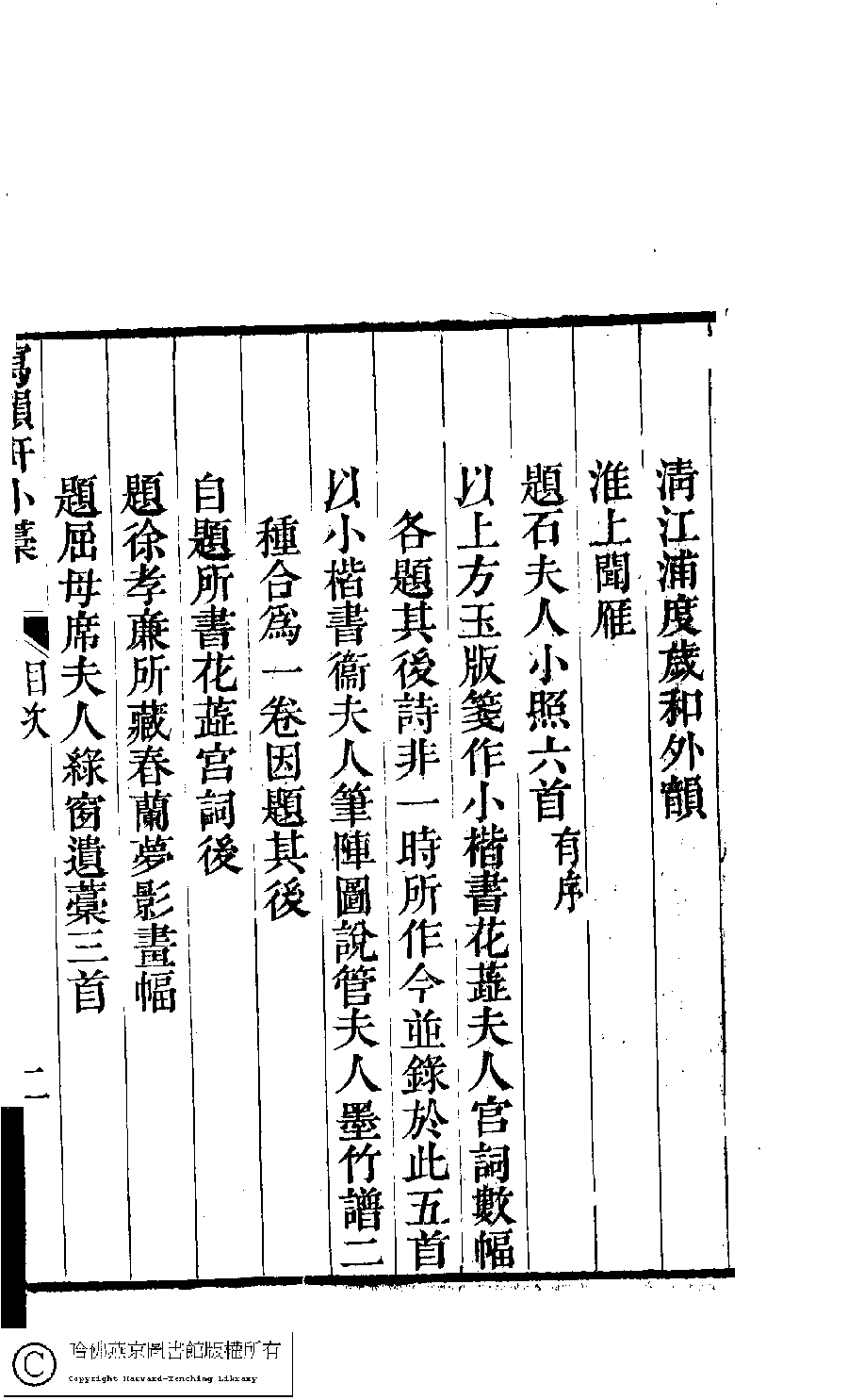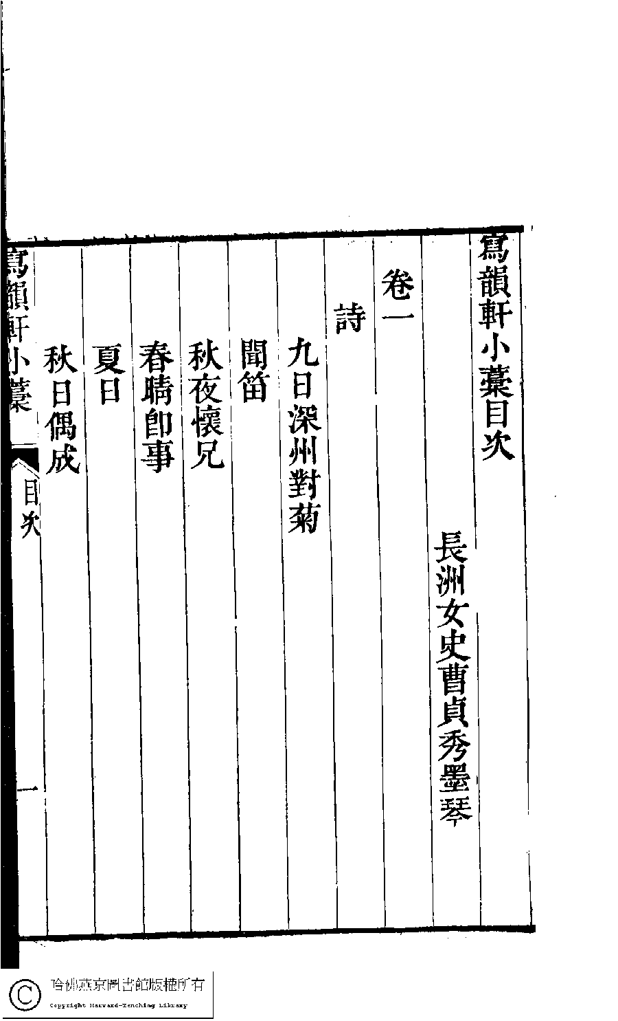 寫韻軒小藁﹕二卷續增卷(清曹貞秀撰) Xie yun xuan xiao gao: 2 juan, xu zeng juan (by Cao Zhenxiu, Qing dynasty) , pp. 目次.1a,目次.1b,目次.2a,目次.2b,目次.3a,目次.3b,目次.4a,目次.4b,目次.5a,目次.5b.