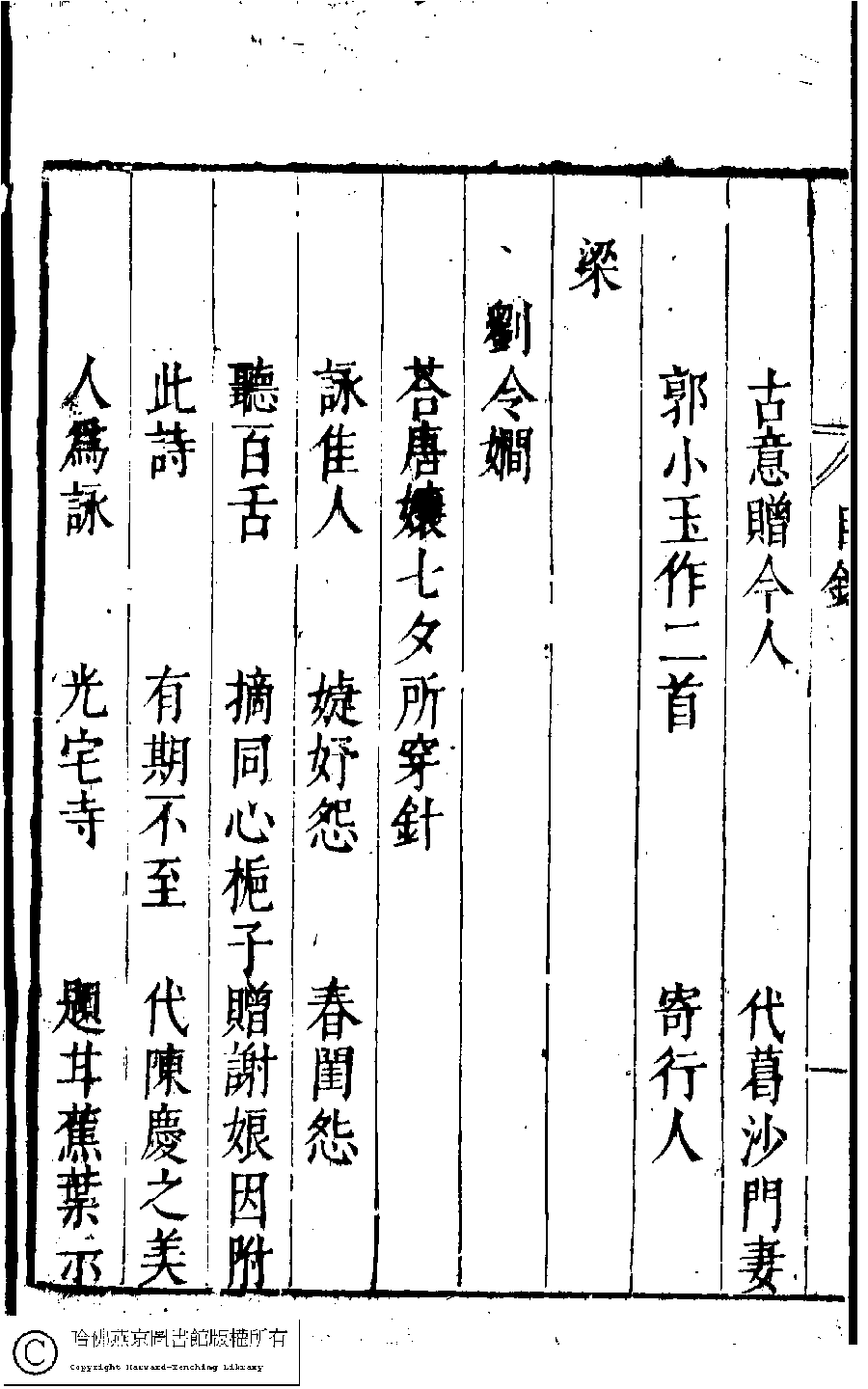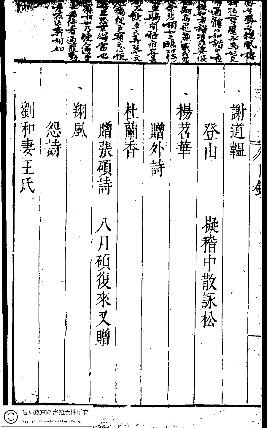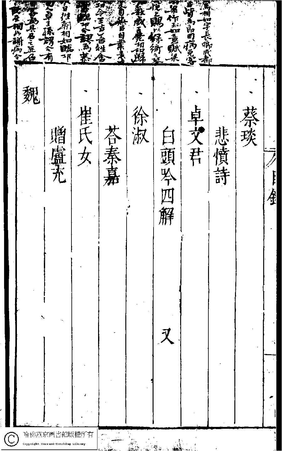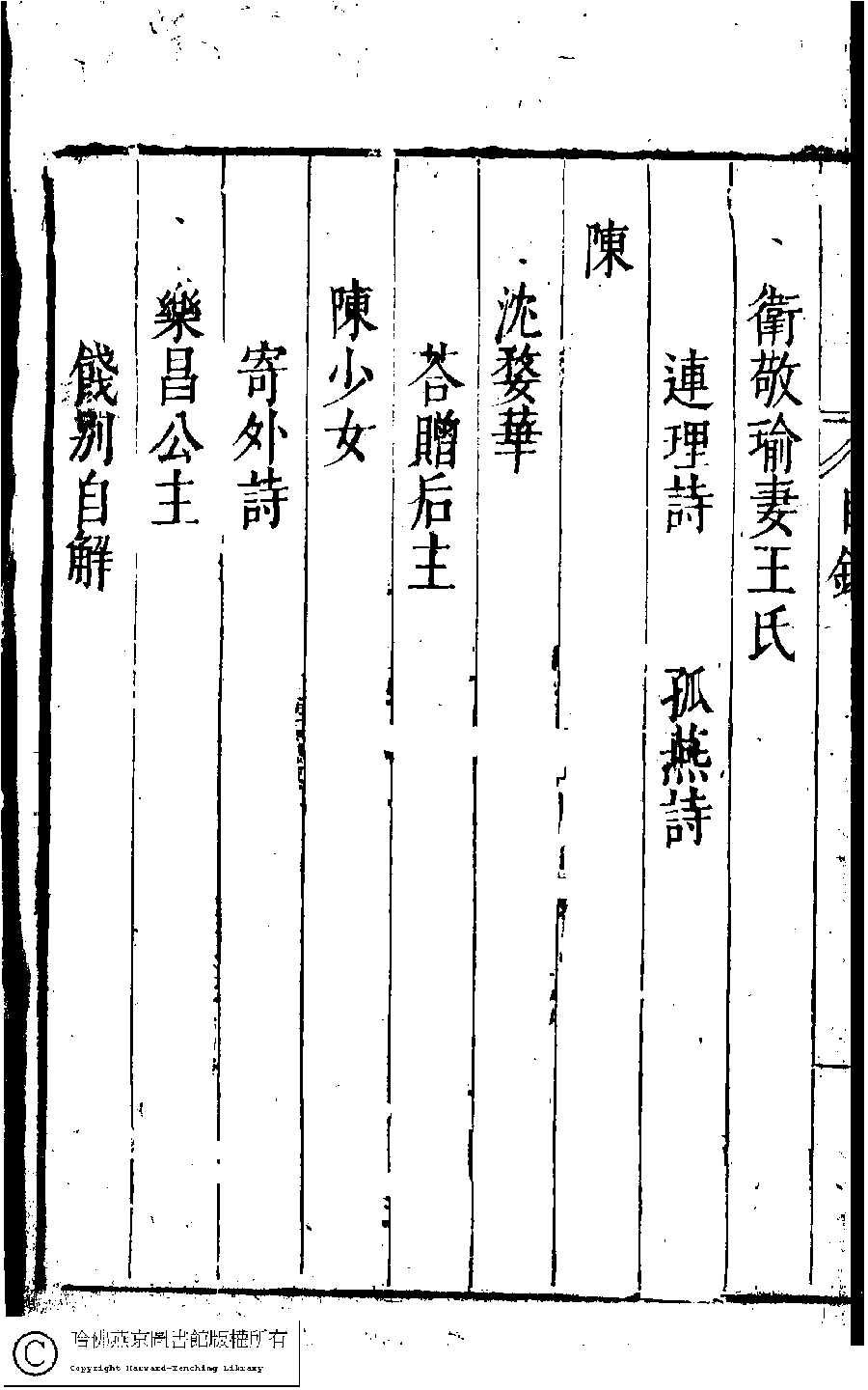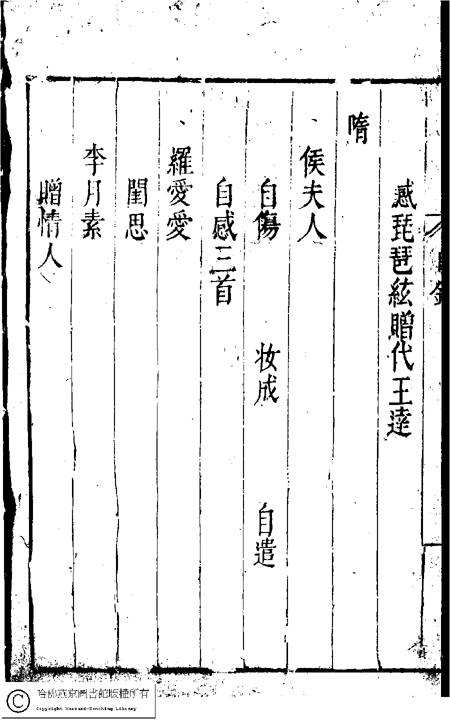 | 名媛彙詩第二卷目錄(五言古詩) Ming yuan hui shi di er juan mu lu (Wu yan gu shi) 詩 shi 名媛彙詩﹕二十卷(明鄭文昂編) Ming yuan hui shi: 20 juan (by Zheng Wenang, Ming dynasty) , pp. 2.目錄.1a,2.目錄.1b,2.目錄.2a,2.目錄.2b,2.目錄.3a,2.目錄.3b,2.目錄.4a,2.目錄.4b,2.目錄.5a,2.目錄.5b,2.目錄.6a,2.目錄.6b. |