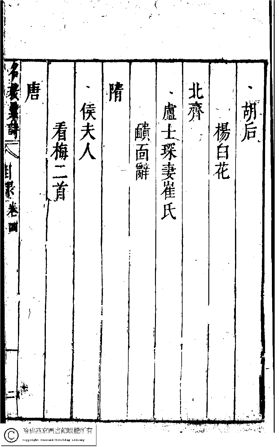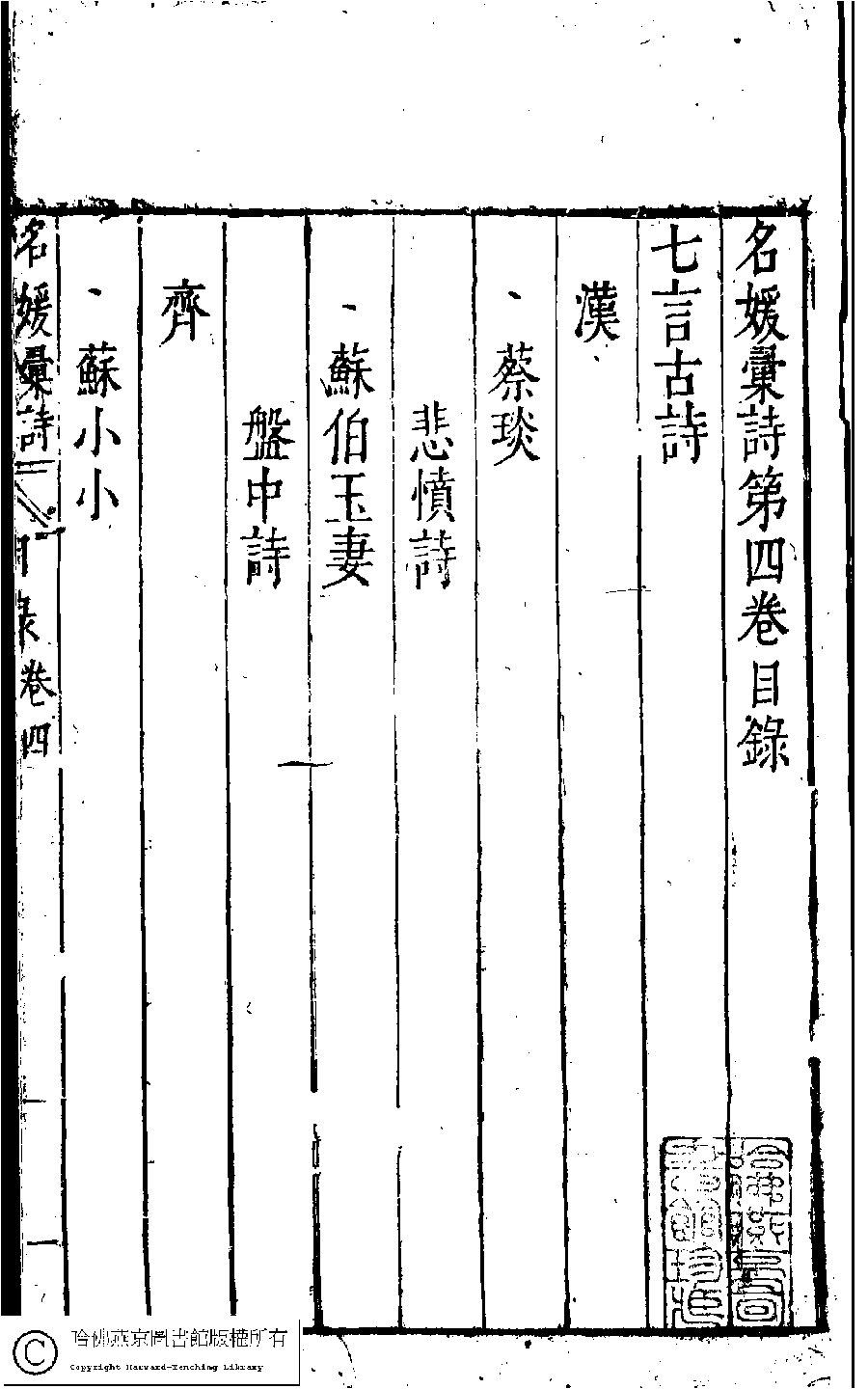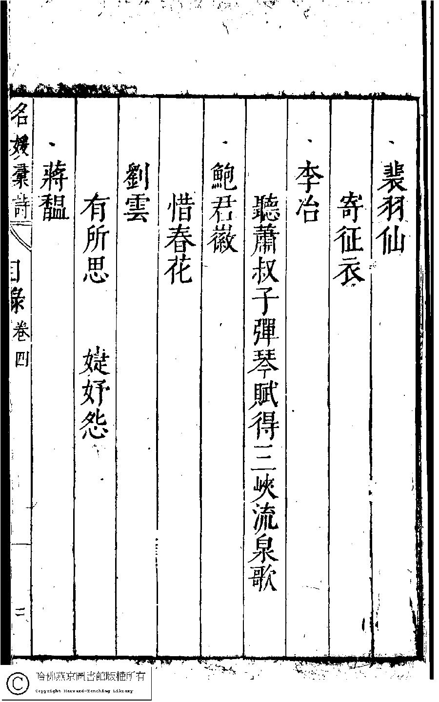 名媛彙詩﹕二十卷(明鄭文昂編) Ming yuan hui shi: 20 juan (by Zheng Wenang, Ming dynasty) , pp. 4.目錄.1a,4.目錄.2a,4.目錄.2b,4.目錄.3a,4.目錄.3b,4.目錄.4a,4.目錄.4b,4.目錄1b.