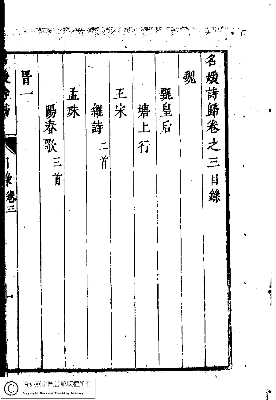 名媛詩歸﹕三十六卷(鍾惺點次) Ming yuan shi gui: 36 juan (edited by Zhong Xing, Ming dynasty) , pp. 3.目錄.1a,3.目錄.1b,3.目錄.2a,3.目錄.2b,3.目錄.3a,3.目錄.3b.