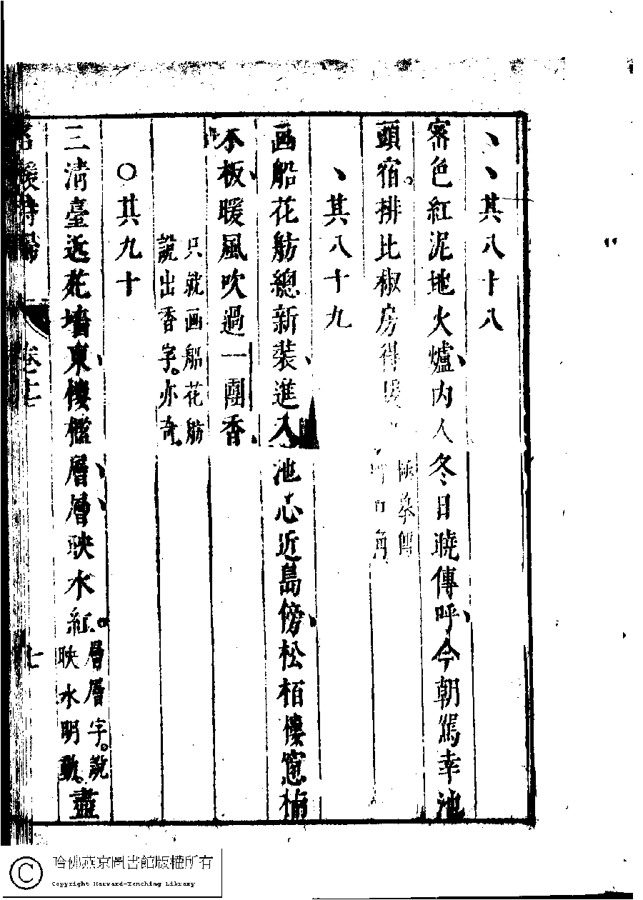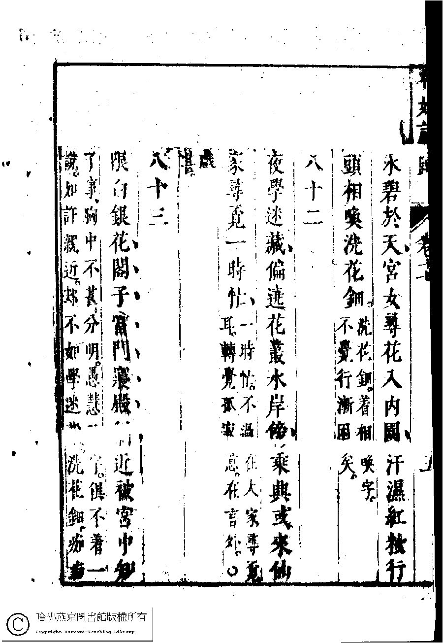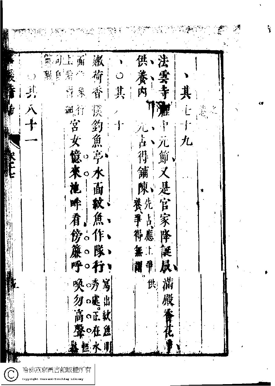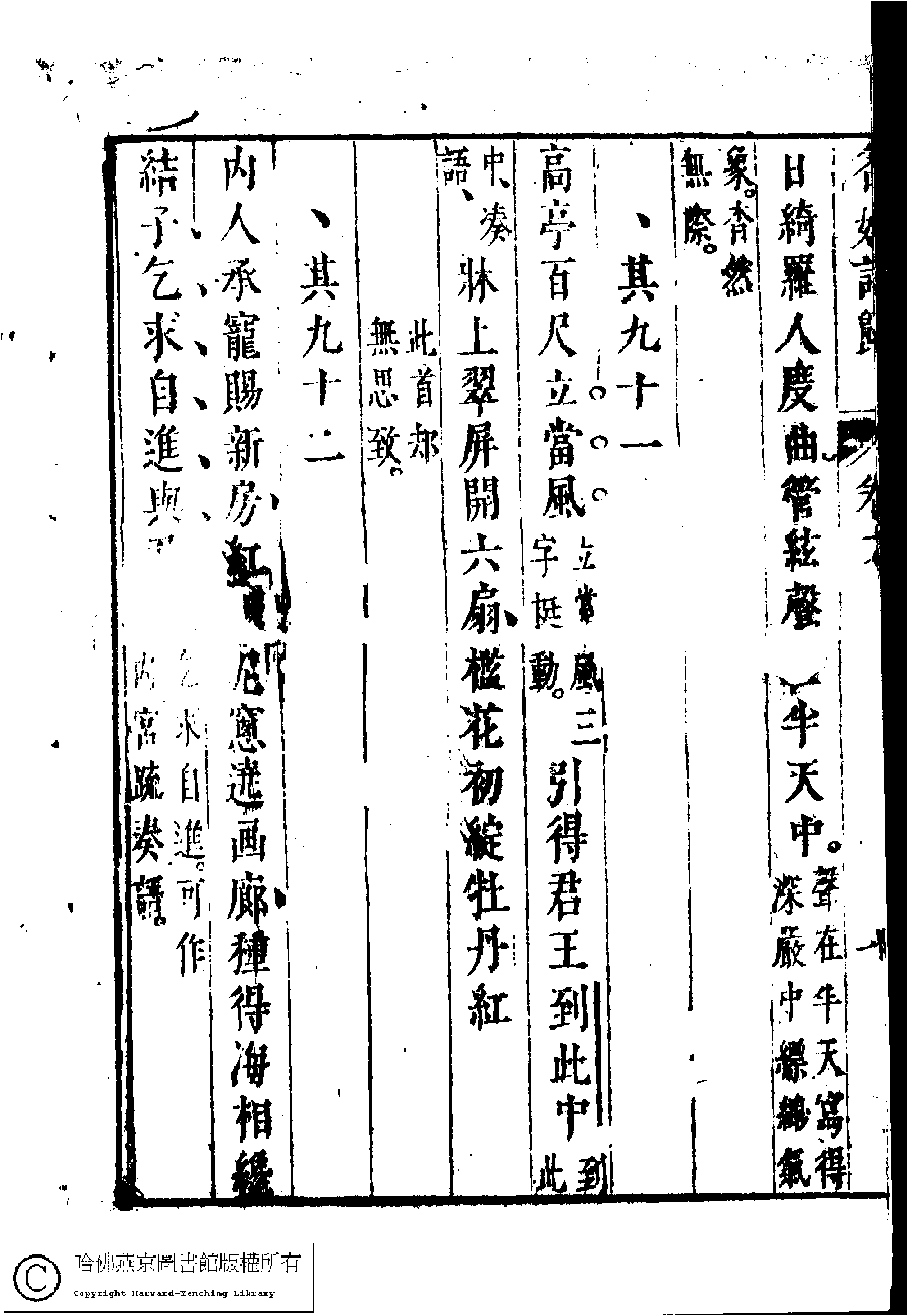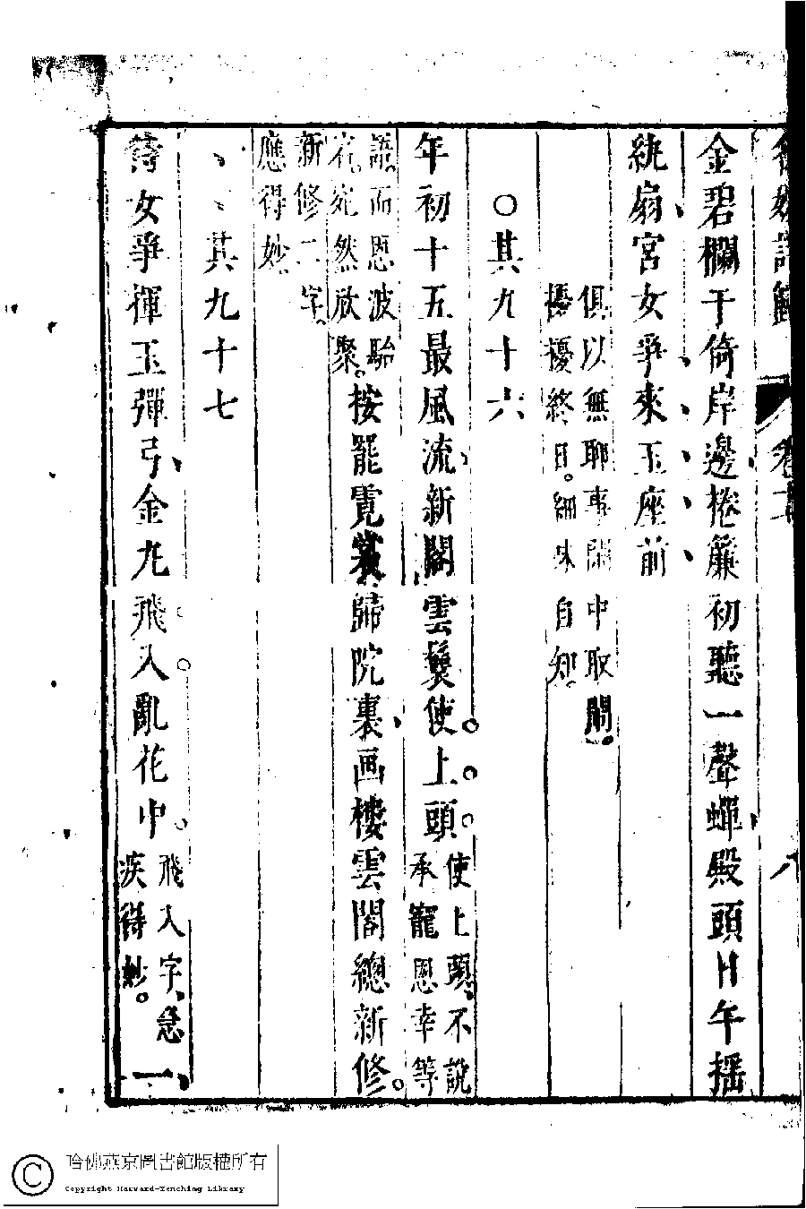 | 宮詞(四十首) Gong ci 詩 - 七言絕句 shi - qiyanjueju 花蕊夫人﹐又名徐氏 Huarui furen 名媛詩歸﹕三十六卷(鍾惺點次) Ming yuan shi gui: 36 juan (edited by Zhong Xing, Ming dynasty) , pp. 17.1a,17.1b,17.2a,17.2b,17.3a,17.3b,17.4a,17.4b,17.5a,17.5b,17.6a,17.6b,17.7a,17.7b,17.8a,17.8b,17.9a,17.9b. |