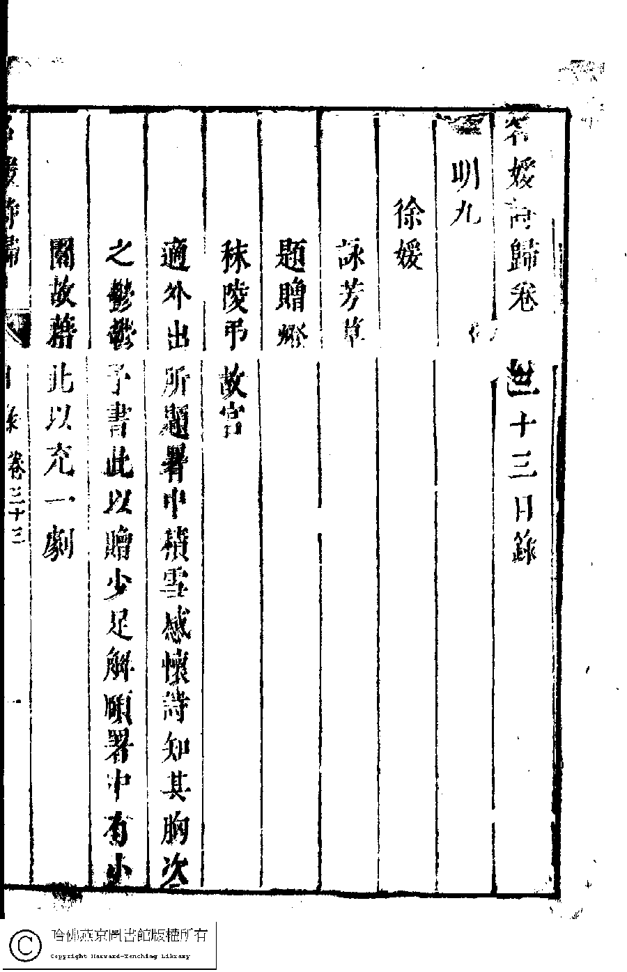 名媛詩歸﹕三十六卷(鍾惺點次) Ming yuan shi gui: 36 juan (edited by Zhong Xing, Ming dynasty) , pp. 33.目錄.1a,33.目錄.1b,33.目錄.2a,33.目錄.2b,33.目錄.3a,33.目錄.3b,33.目錄.4a,33.目錄.4b.