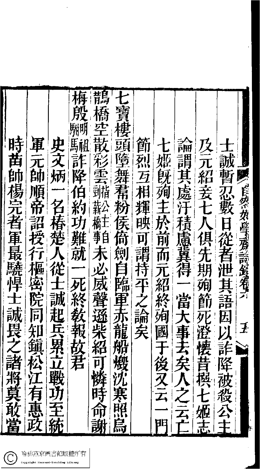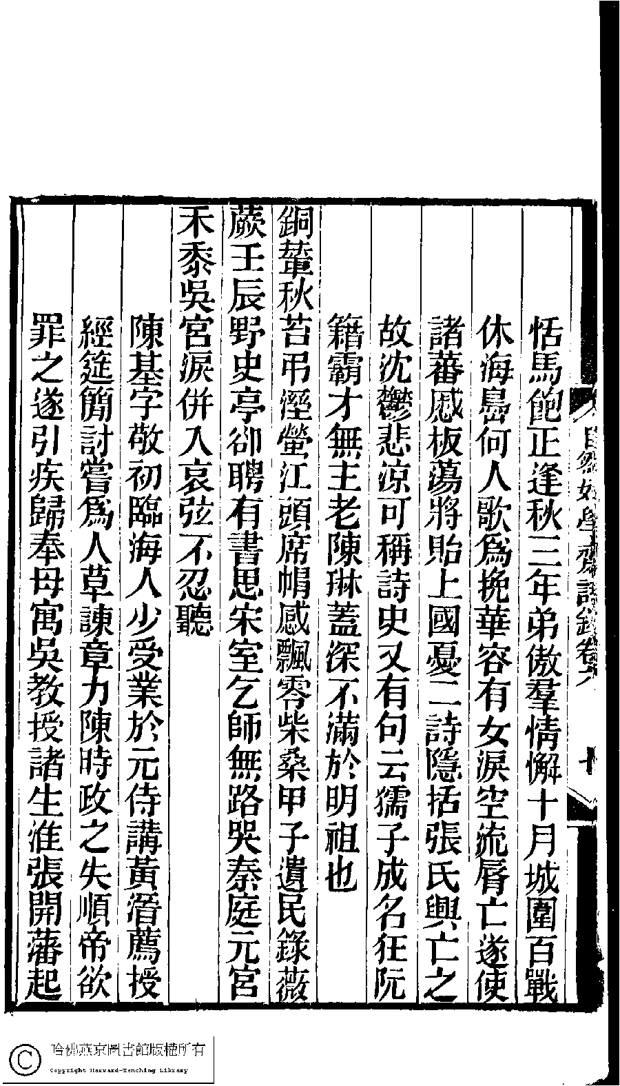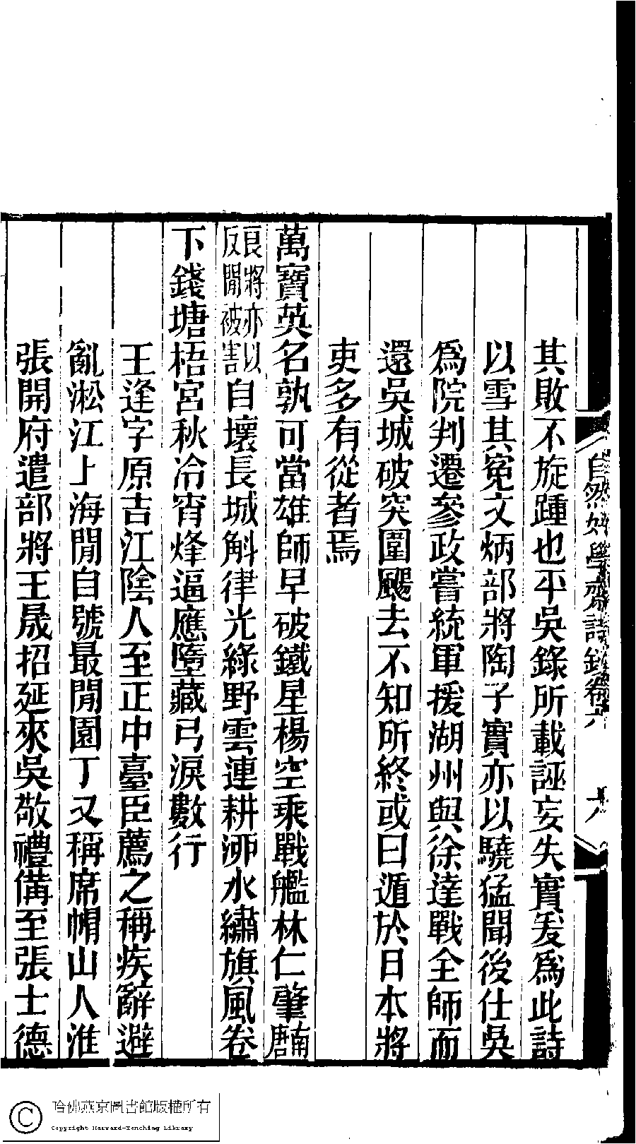 | 張吳紀事詩(二十五首) Zhang Wu ji shi shi (er shi wu shou) 詩 - 七言律詩 shi - qiyanlüshi 汪端﹐號小韞﹐字允莊 Wang Duan, hao: Xiaoyun, zi: Yunzhuang 林下雅音集﹕五種(淸冒俊輯) 自然好學齋詩鈔: 十卷 Lin xia ya yin ji: 5 zhong (edited by Mao Jun, Qing dynasty) Zi ran hao xue zhai shi chao: 10 juan, pp. 6.10a,6.10b,6.11a,6.11b,6.12a,6.12b,6.13a,6.13b,6.14a,6.14b,6.15a,6.15b,6.16a,6.16b,6.17a,6.17b,6.18a,6.18b,6.1b,6.2a,6.2b,6.3a,6.3b,6.4a,6.4b,6.5a,6.5b,6.6a,6.6b,6.7a,6.7b,6.8a,6.8b,6.9a,6.9b. |
