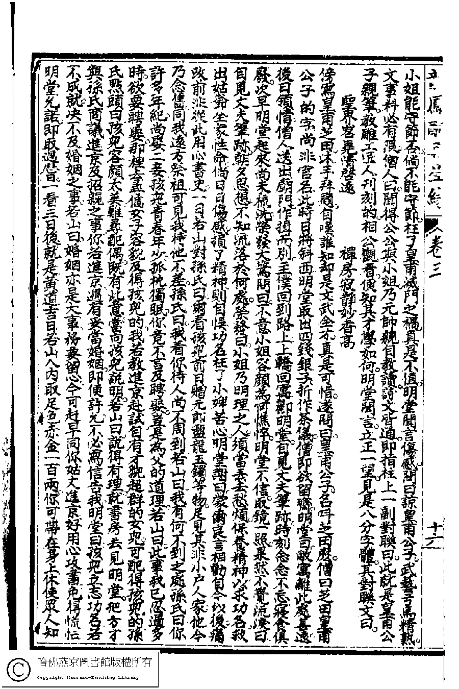 | 第二十五回 為救夫明堂進京 貪美妻奎璧掛帥 Di er shi wu hui Wei jiu fu Mingtang jin jing Tan mei qi Kuibi gua shuai 文﹕彈詞 Wen: Tan ci 陳端生﹐字雲貞 Chen Duansheng, zi: Yunzhen 梁德繩﹐號古春老人﹐字楚生 Liang Desheng, hao: Guchunlanren, zi: Chusheng (繪圖龍鳳配)再生緣﹕八卷﹐七十四回(清陳端生撰,梁德繩續) (Hui tu long feng pei) Zai sheng yuan: 8 juan, 74 hui (by Chen Duansheng, Liang Desheng, Qing dynasty) , pp. 3.15b,3.16a,3.16b,3.17a. |