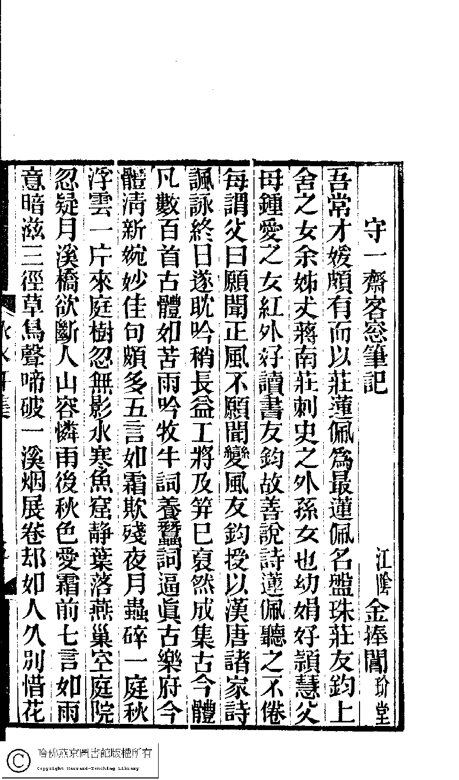林下雅音集﹕五種(淸冒俊輯) 秋水軒詩詞集: 一卷 Lin xia ya yin ji: 5 zhong (edited by Mao Jun, Qing dynasty) Qiu shui xuan shi ci ji: 1 juan, pp. 5a,5b,6a,6b.