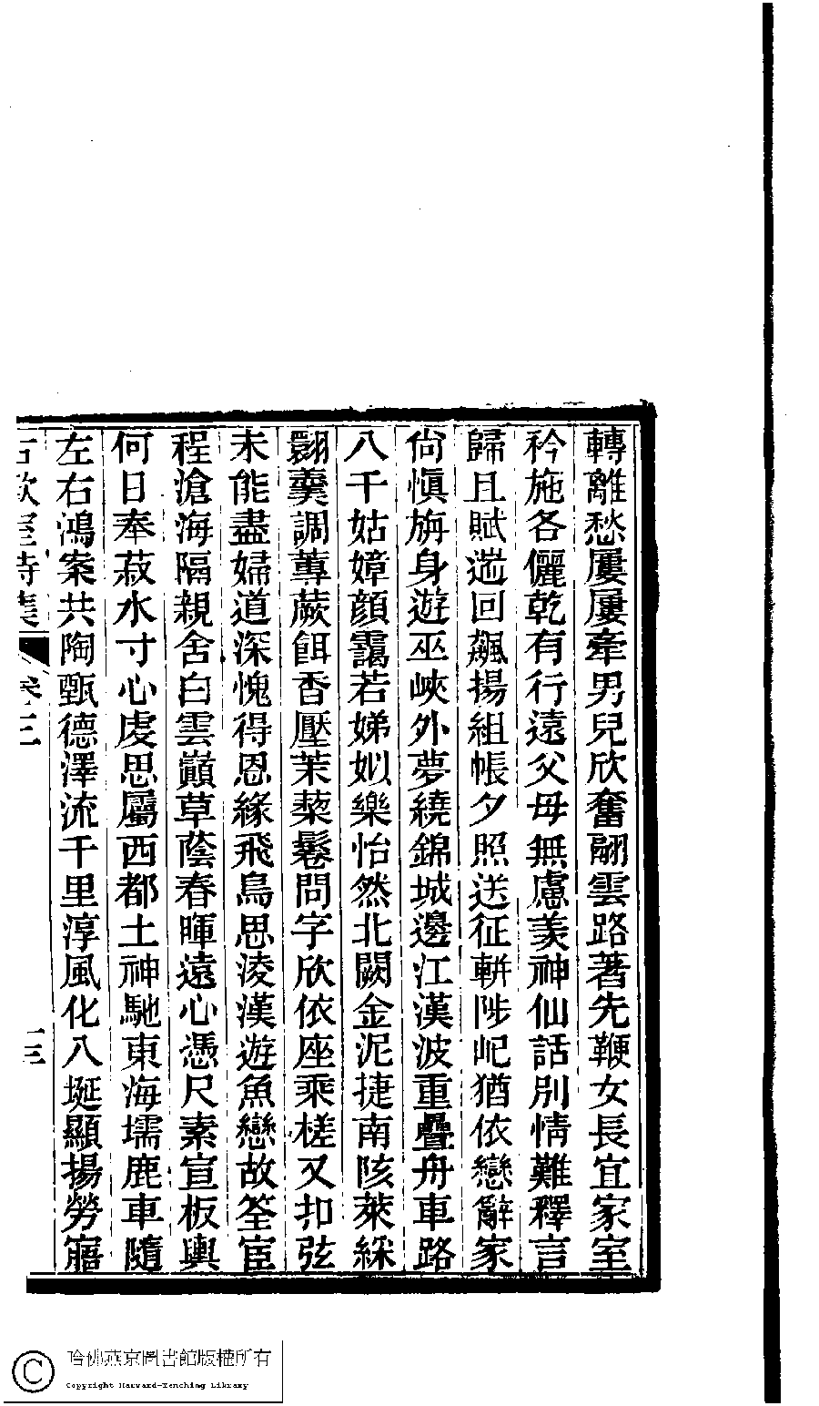 | 憶昔篇八十韻 Yi xi pian ba shi yun 詩 - 五言排律 shi - wuyanpailü 曾懿﹐字伯淵﹐又名朗秋 Zeng Yi, zi: Boyuan 古歡室集:詩三卷,詞一卷,醫學篇二卷,女學篇一卷,中饋錄一卷(清曽懿撰) Gu huan shi ji: shi 3 juan, ci 1 juan, yi xue pian: 2 juan, nü xue pian 1 juan, zhong kui lu 1 juan (by Zeng Yi, Qing dynasty) , pp. 3.11b,3.12a,3.12b,3.13a,3.13b. |