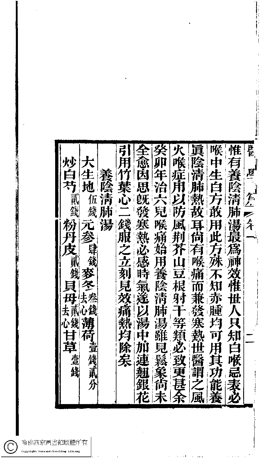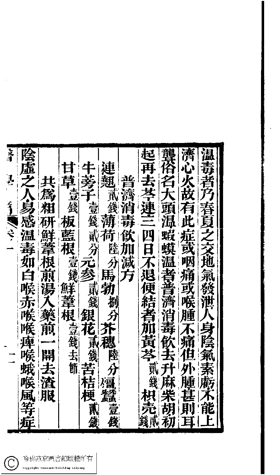 | 溫毒治法 Wen du zhi fa 文﹕文 Wen: Wen 曾懿﹐字伯淵﹐又名朗秋 Zeng Yi, zi: Boyuan 古歡室集:詩三卷,詞一卷,醫學篇二卷,女學篇一卷,中饋錄一卷(清曽懿撰) Gu huan shi ji: shi 3 juan, ci 1 juan, yi xue pian: 2 juan, nü xue pian 1 juan, zhong kui lu 1 juan (by Zeng Yi, Qing dynasty) , pp. 醫學1.1.10b,醫學1.1.11a,醫學1.1.11b,醫學1.1.12a. |