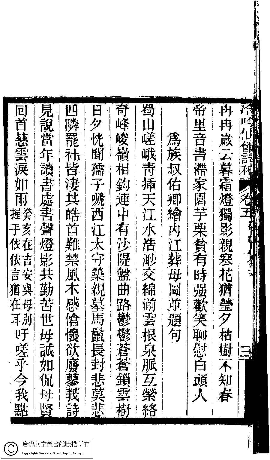 冷吟仙舘詩稿﹕八卷﹐詩餘一卷﹐文存一卷(淸左錫嘉撰) Leng yin xian guan shi gao: 8 juan, shi yu 1 juan, wen cun 1 juan (by Zuo Xijia, Qing dynasty) , pp. 5.3a,5.3b.