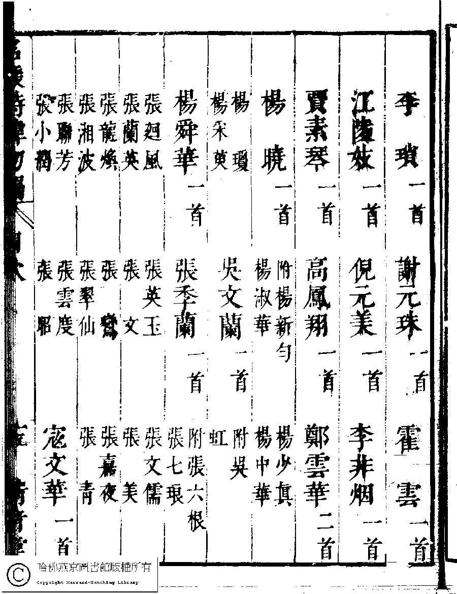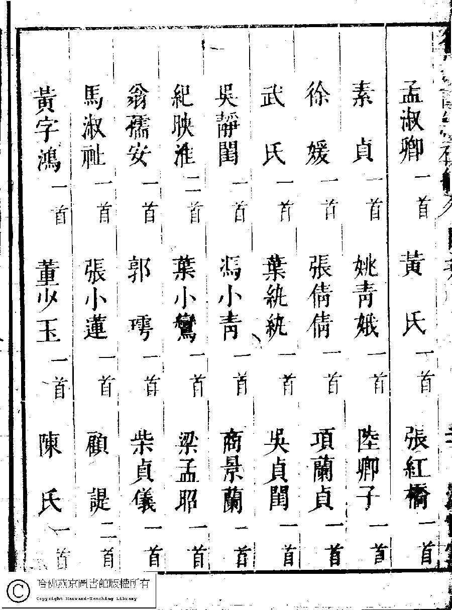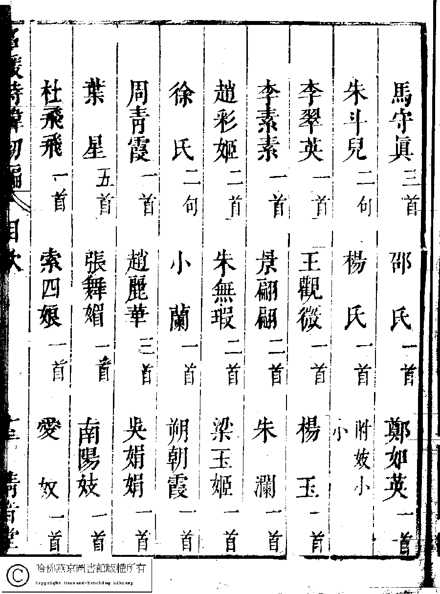 | 名媛詩緯初編目次 Ming yuan shi wei chu bian mu ci 名媛詩緯初編(清王端淑輯) Ming yuan shi wei chu bian (Edited by Wang Duanshu, Qing dynasty) , pp. 目次.10a,目次.10b,目次.11a,目次.11b,目次.12a,目次.12b,目次.13a,目次.13b,目次.14a,目次.14b,目次.15a,目次.15b,目次.16a,目次.16b,目次.17a,目次.17b,目次.18a,目次.18b,目次.19a,目次.19b,目次.1a,目次.1b,目次.20a,目次.20b,目次.21a,目次.21b,目次.22a,目次.22b,目次.23a,目次.23b,目次.24a,目次.24b,目次.2a,目次.2b,目次.3a,目次.3b,目次.4a,目次.4b,目次.5a,目次.5b,目次.6a,目次.6b,目次.7a,目次.7b,目次.8a,目次.8b,目次.9a,目次.9b. |
