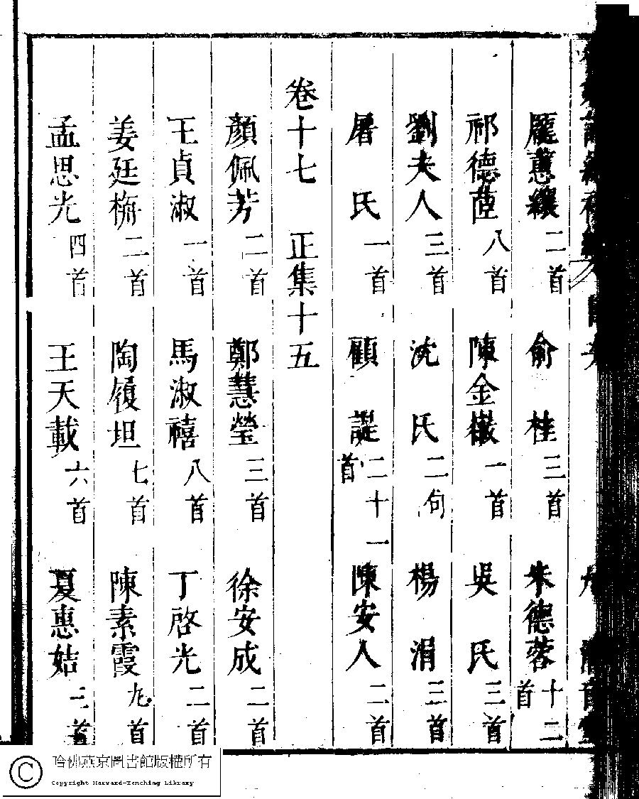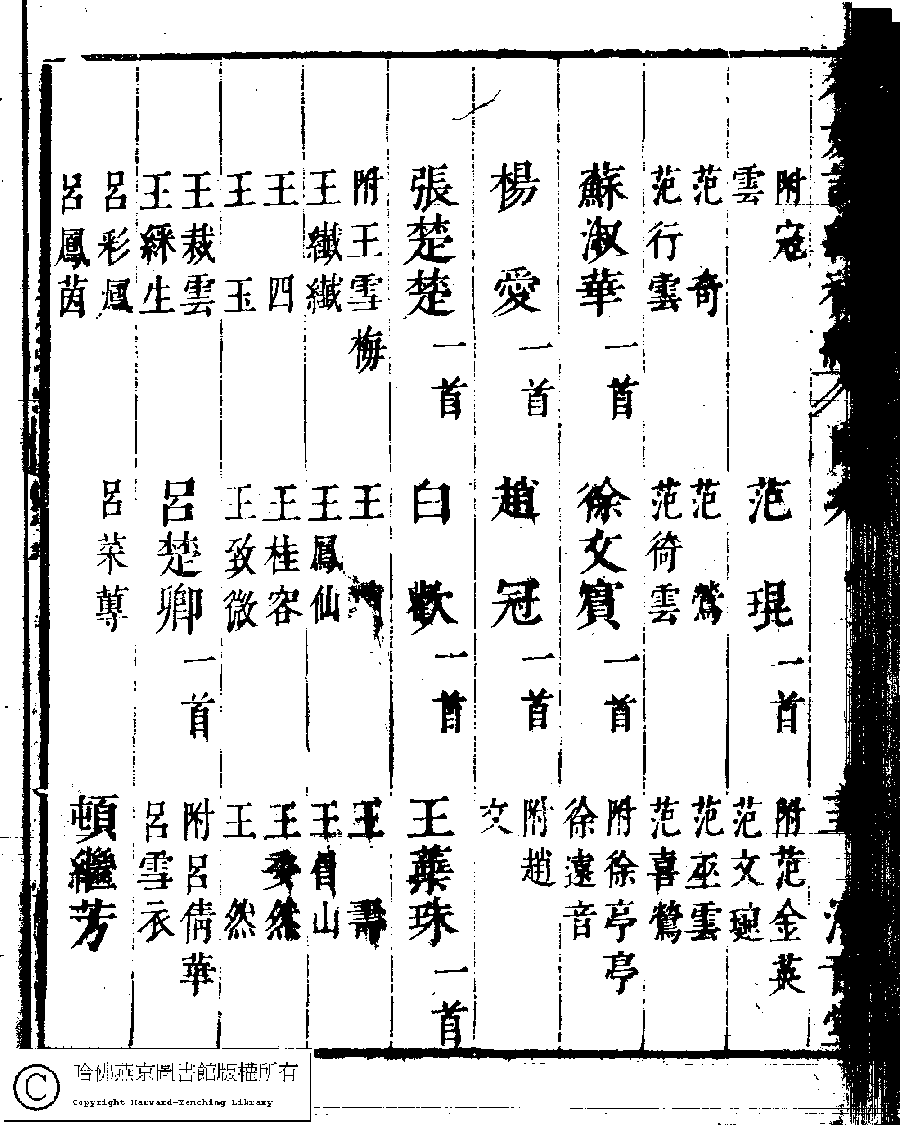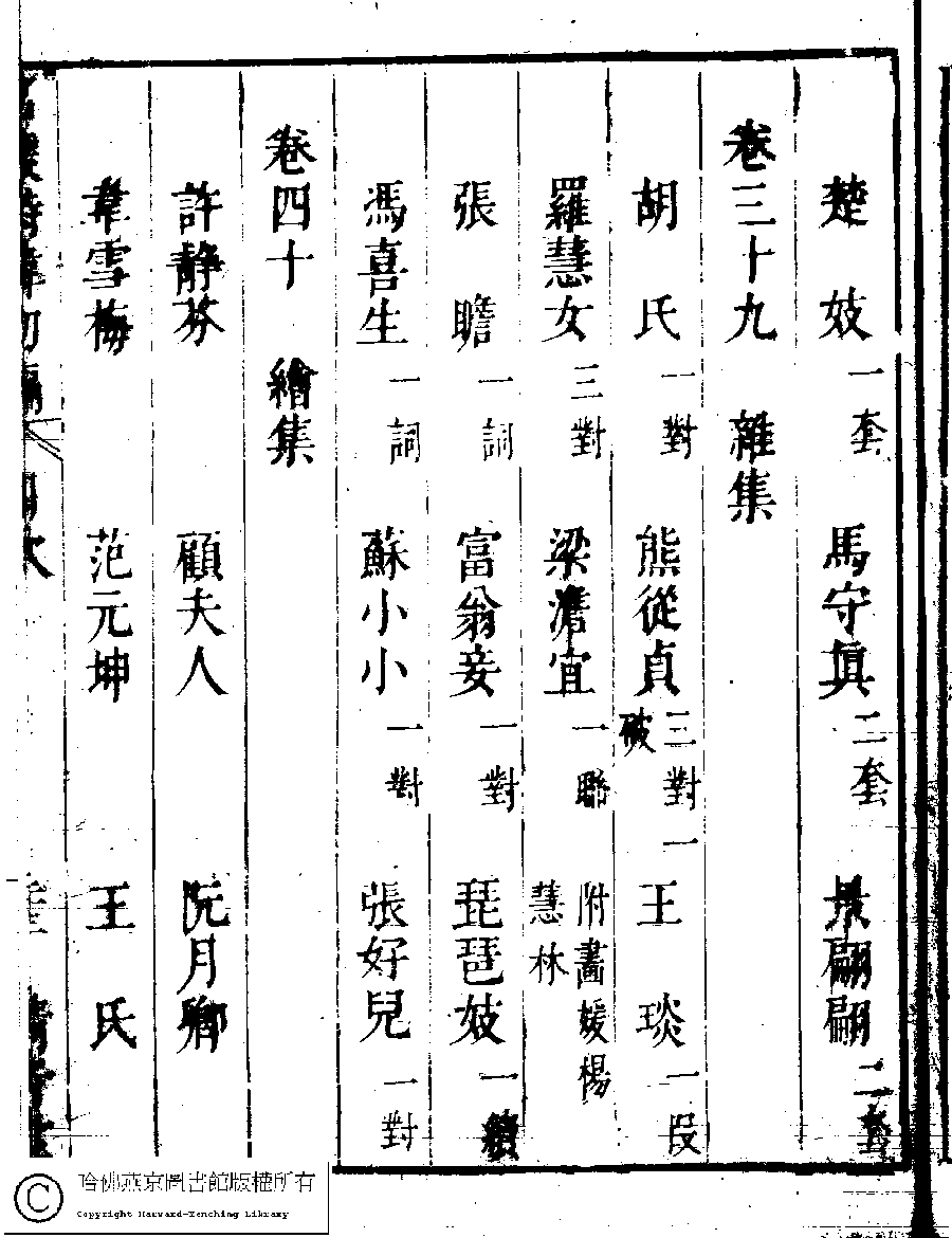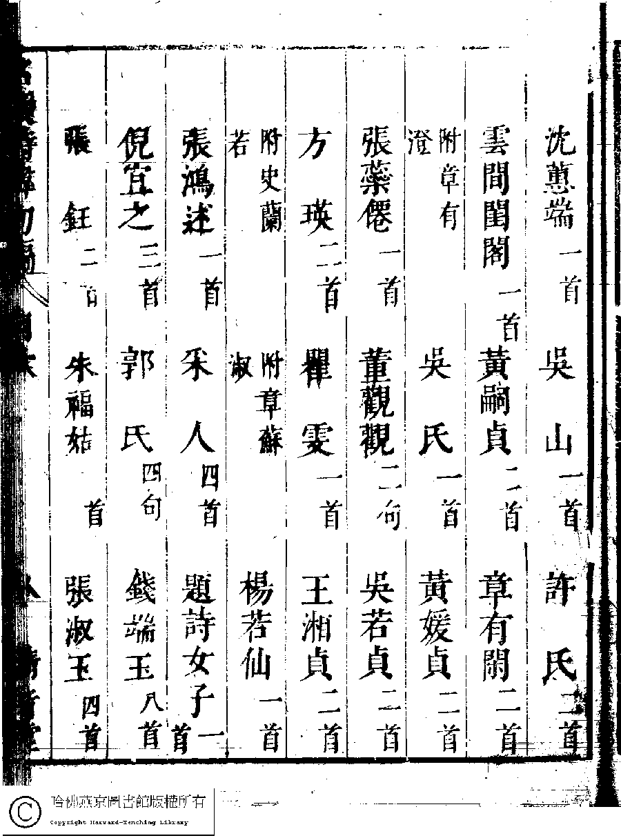 | 名媛詩緯初編目次 Ming yuan shi wei chu bian mu ci 名媛詩緯初編(清王端淑輯) Ming yuan shi wei chu bian (Edited by Wang Duanshu, Qing dynasty) , pp. 目次.10a,目次.10b,目次.11a,目次.11b,目次.12a,目次.12b,目次.13a,目次.13b,目次.14a,目次.14b,目次.15a,目次.15b,目次.16a,目次.16b,目次.17a,目次.17b,目次.18a,目次.18b,目次.19a,目次.19b,目次.1a,目次.1b,目次.20a,目次.20b,目次.21a,目次.21b,目次.22a,目次.22b,目次.23a,目次.23b,目次.24a,目次.24b,目次.2a,目次.2b,目次.3a,目次.3b,目次.4a,目次.4b,目次.5a,目次.5b,目次.6a,目次.6b,目次.7a,目次.7b,目次.8a,目次.8b,目次.9a,目次.9b. |
