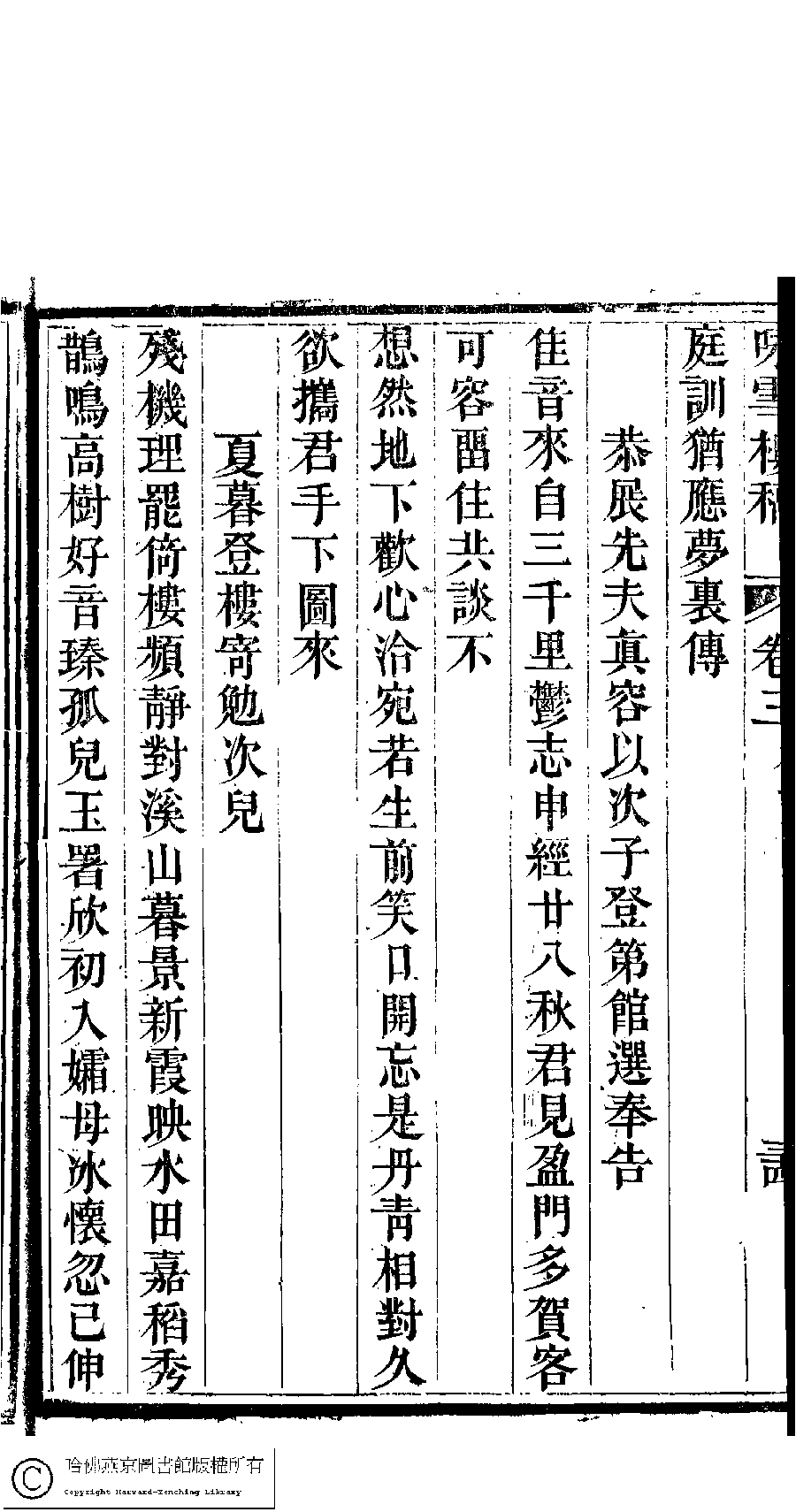 | 恭展先夫真容以次子登第館選奉告(二首) Gong zhan xian fu zhen rong yi ci zi deng di guan xuan feng gao 詩 - 七言絕句 shi - qiyanjueju 甘立媃﹐字如玉 Gan Lirou, zi: Ruyu 詠雪樓稿﹕五卷,卷首一卷,附一卷(清甘立媃撰) Yong xue lou gao: 5 juan, juan shou 1 juan, fu 1 juan ( by Gan lirou, Qing dynasty) , pp. 3.34b. |