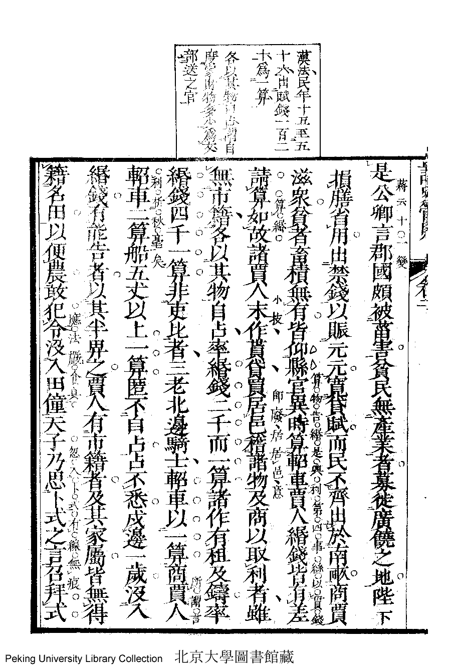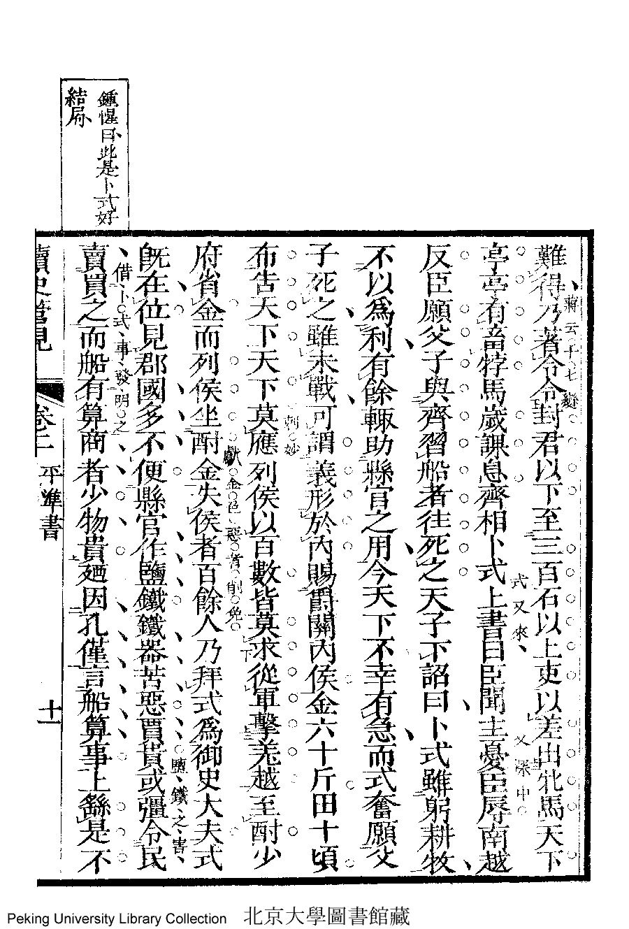 | 平準書 ping zhun shu 文﹕案語 Wen: An yu 李晚芳﹐號菉猗 Li Wanfang, hao: Luyi 讀史管見﹕三卷(清李晚芳撰) Du shi guan jian: 3 juan (by Li Wanfang, Qing dynasty) , pp. 2.10a,2.10b,2.11a,2.11b,2.12a,2.12b,2.13a,2.13b,2.14a,2.14b,2.15a,2.15b,2.16a,2.16b,2.1a,2.1b,2.2a,2.2b,2.3a,2.3b,2.4a,2.4b,2.5a,2.5b,2.6a,2.6b,2.7a,2.7b,2.8a,2.8b,2.9a,2.9b. |