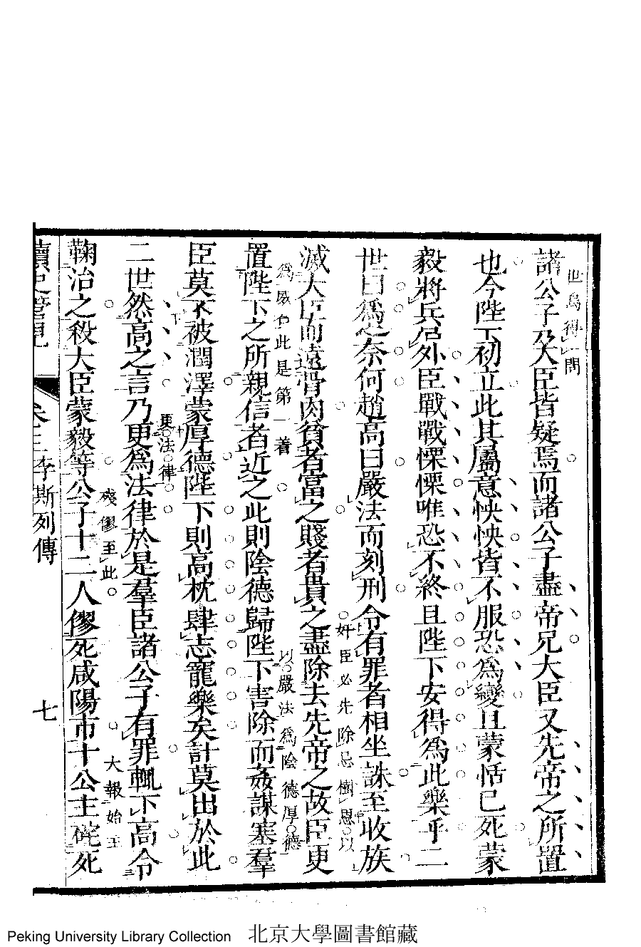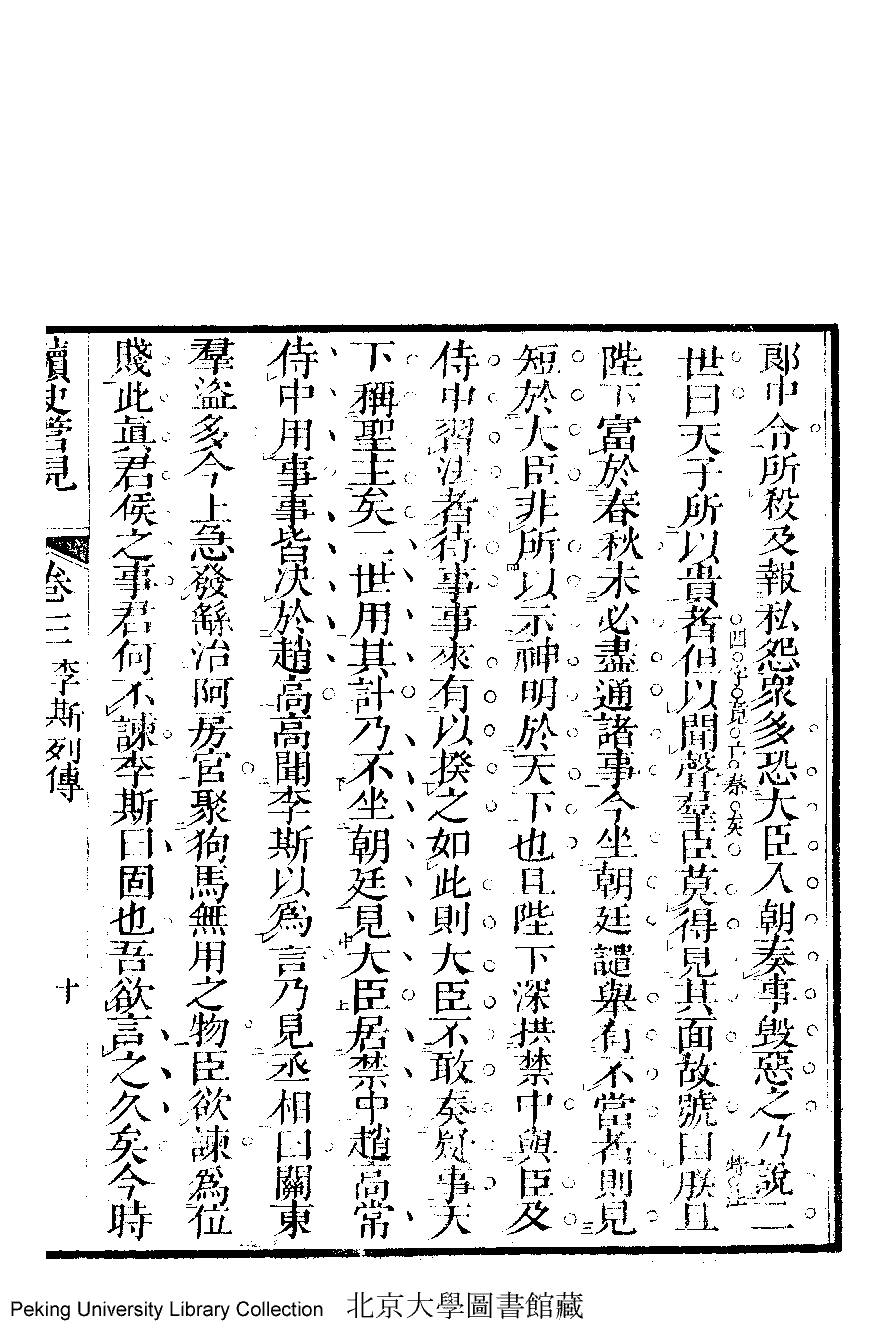 | 李斯列傳 li si lie zhuan 文﹕案語 Wen: An yu 李晚芳﹐號菉猗 Li Wanfang, hao: Luyi 讀史管見﹕三卷(清李晚芳撰) Du shi guan jian: 3 juan (by Li Wanfang, Qing dynasty) , pp. 3.10a,3.10b,3.11a,3.11b,3.12a,3.12b,3.13a,3.13b,3.1a,3.1b,3.2a,3.2b,3.3a,3.3b,3.4a,3.4b,3.5a,3.5b,3.6a,3.6b,3.7a,3.7b,3.8a,3.8b,3.9a,3.9b. |