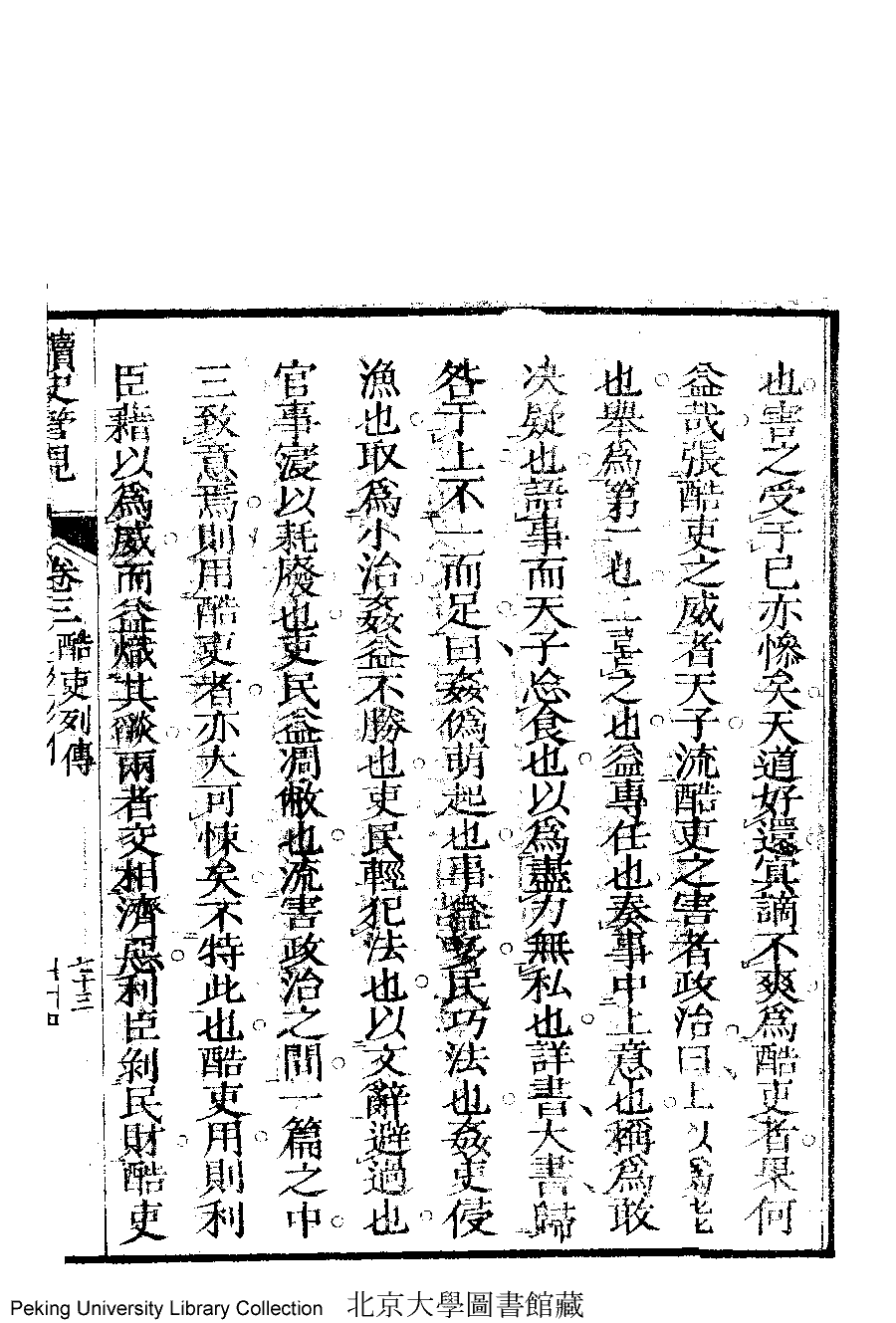 | 酷吏列傳 ku li lie zhuan 文﹕案語 Wen: An yu 李晚芳﹐號菉猗 Li Wanfang, hao: Luyi 讀史管見﹕三卷(清李晚芳撰) Du shi guan jian: 3 juan (by Li Wanfang, Qing dynasty) , pp. 3.58a,3.58b,3.59a,3.59b,3.60a,3.60b,3.61a,3.61b,3.62a,3.62b,3.63a,3.63b,3.64a,3.64b,3.65a,3.65b,3.66a,3.66b,3.67a,3.67b,3.68a,3.68b,3.69a,3.69b,3.70a,3.70b,3.71a,3.71b,3.72a,3.72b,3.73a,3.73b. |