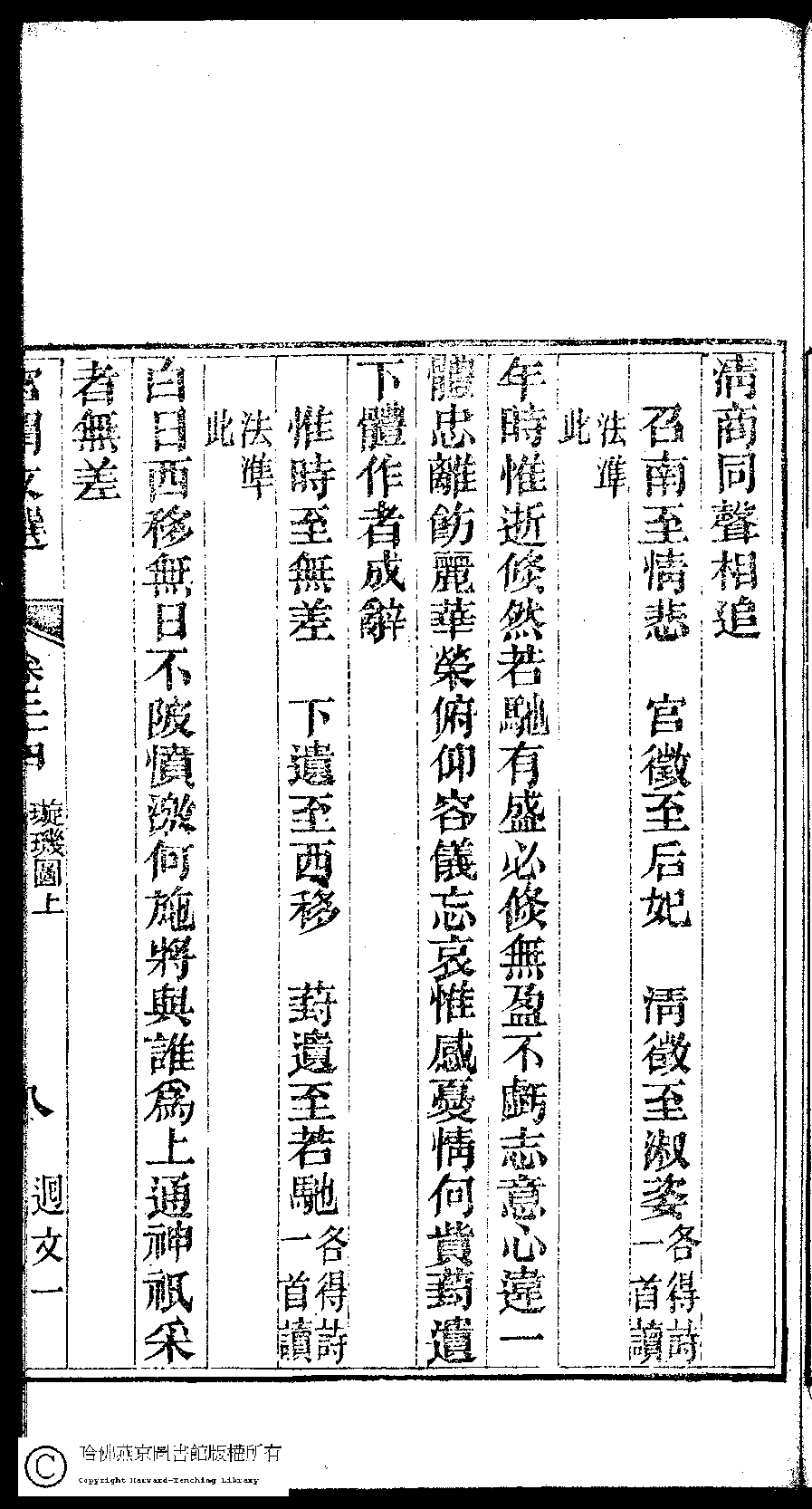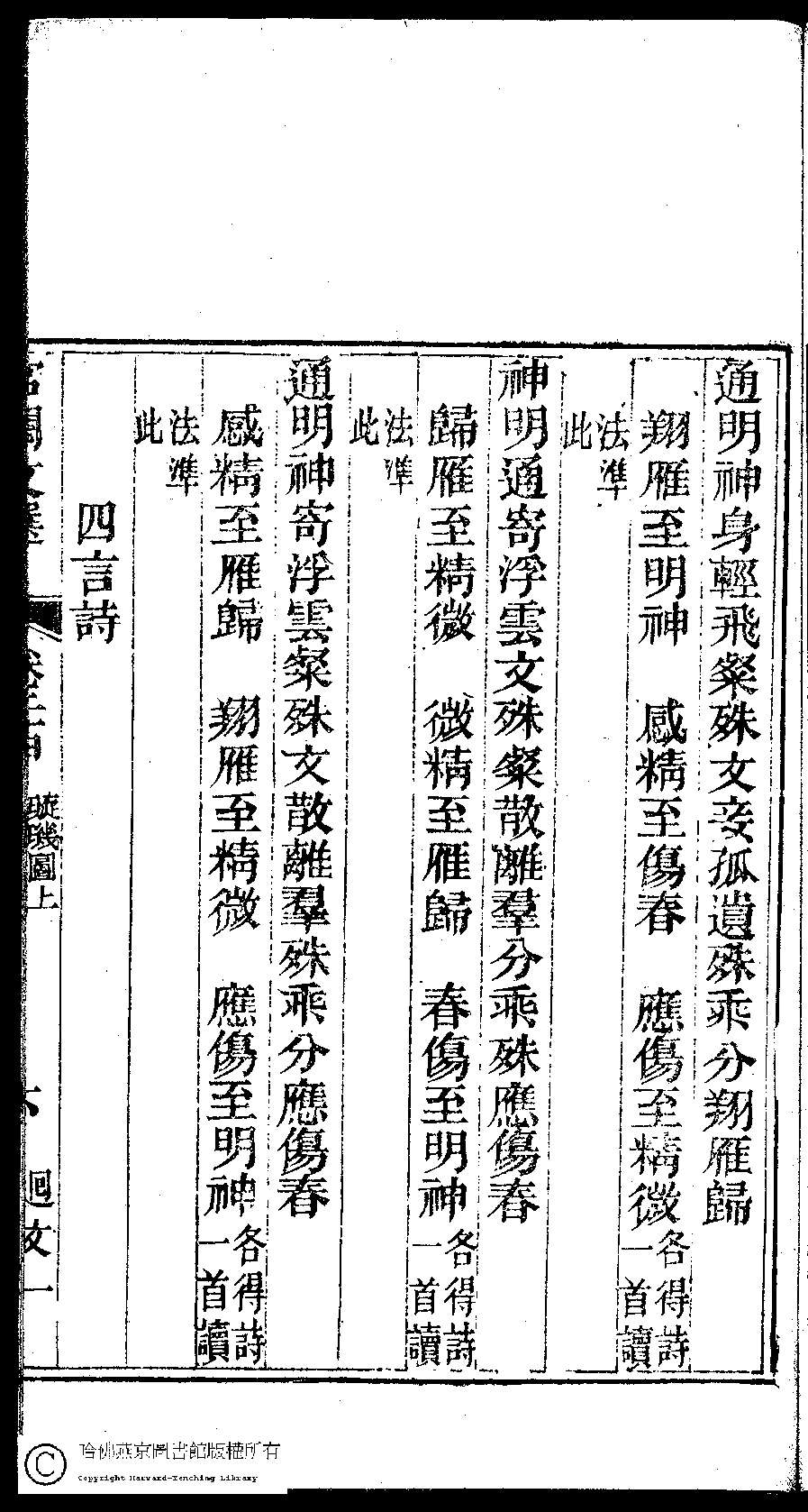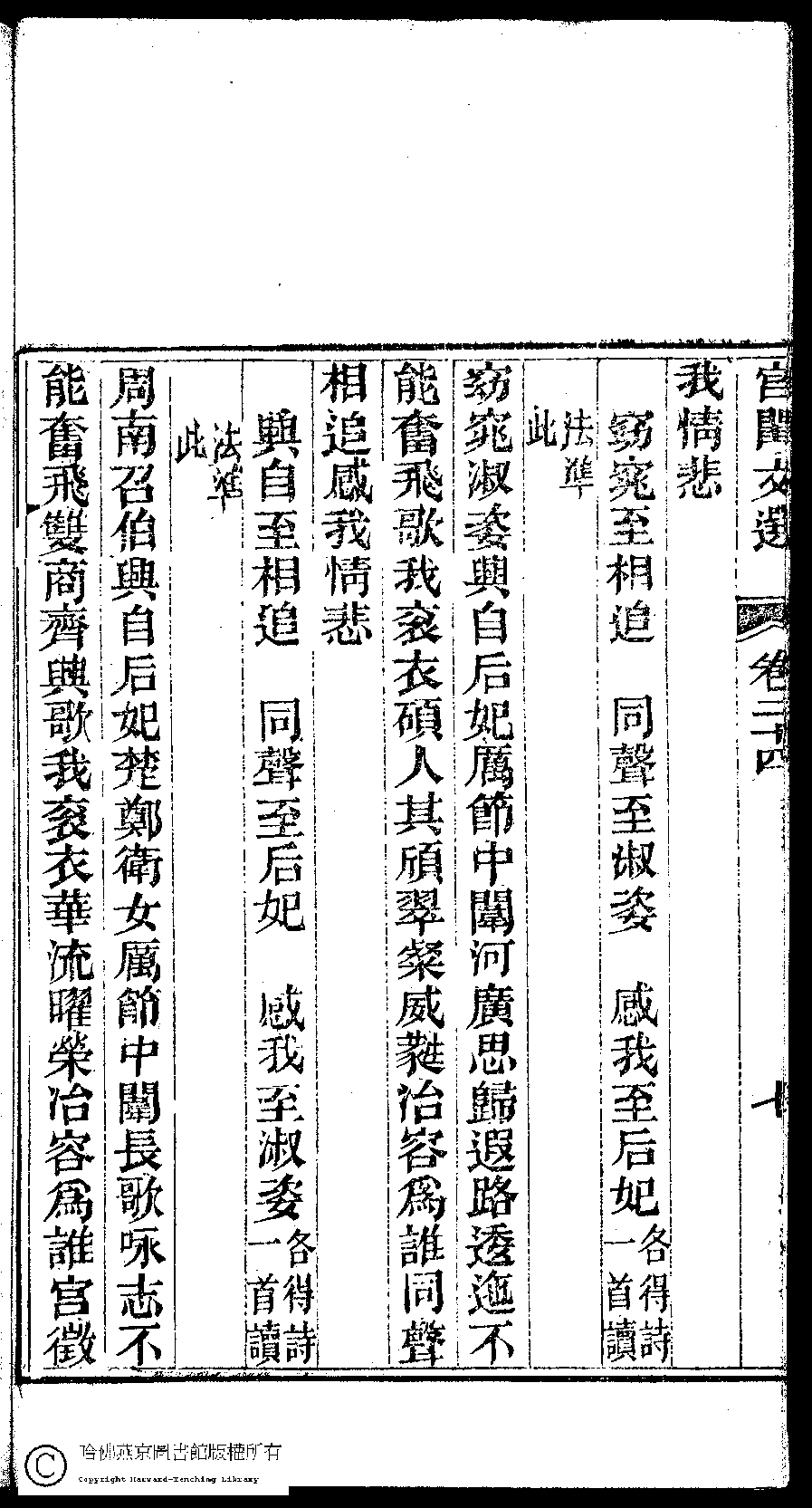 | 四言詩 Si yan shi - 四言詩 - siyanshi 蘇蕙﹐字若蘭 Su Hui, zi: Ruolan 宮閨文選:二十六卷,姓氏小錄 : 一卷(清周壽昌輯訂) Gong gui wen xuan: 26 juan, Xing shi xiao lu: 1 juan (edited by Zhou Shouchang) , pp. 24.10a,24.10b,24.11a,24.11b,24.12a,24.12b,24.13a,24.13b,24.14a,24.14b,24.15a,24.15b,24.16a,24.16b,24.6a,24.6b,24.7a,24.7b,24.8a,24.8b,24.9a,24.9b. |