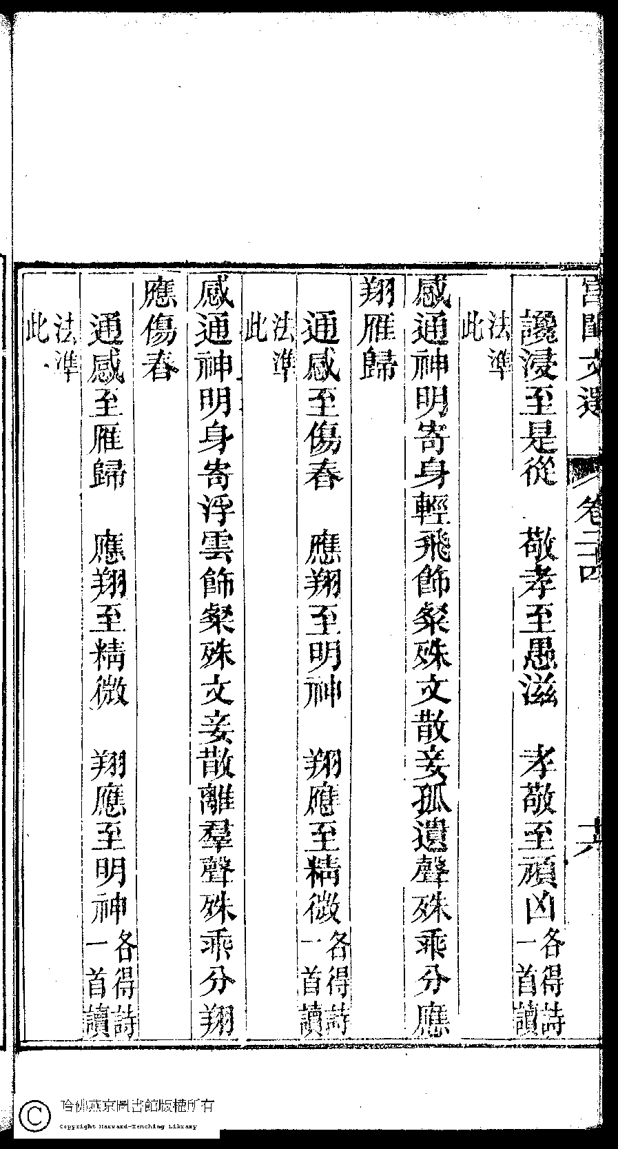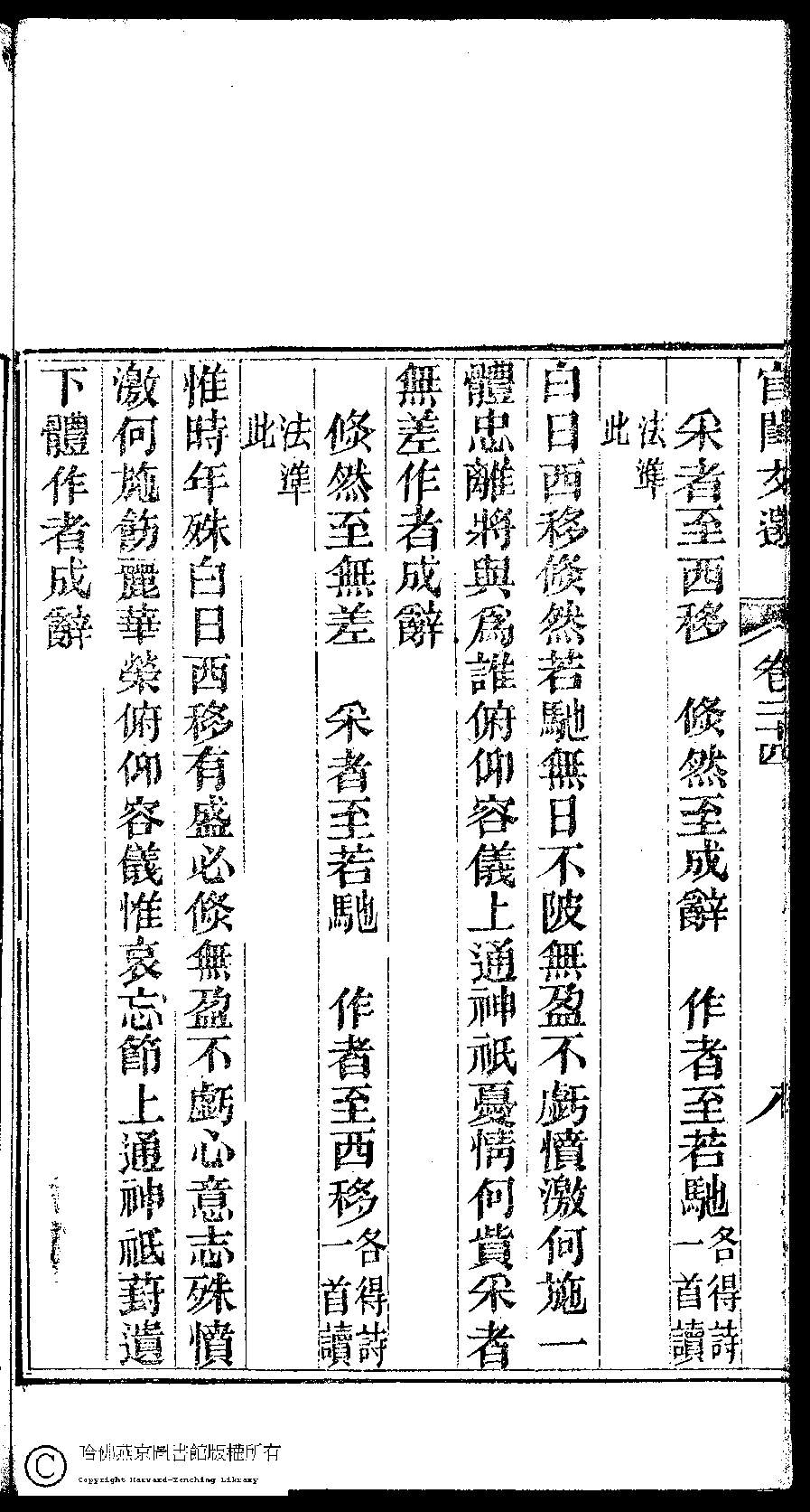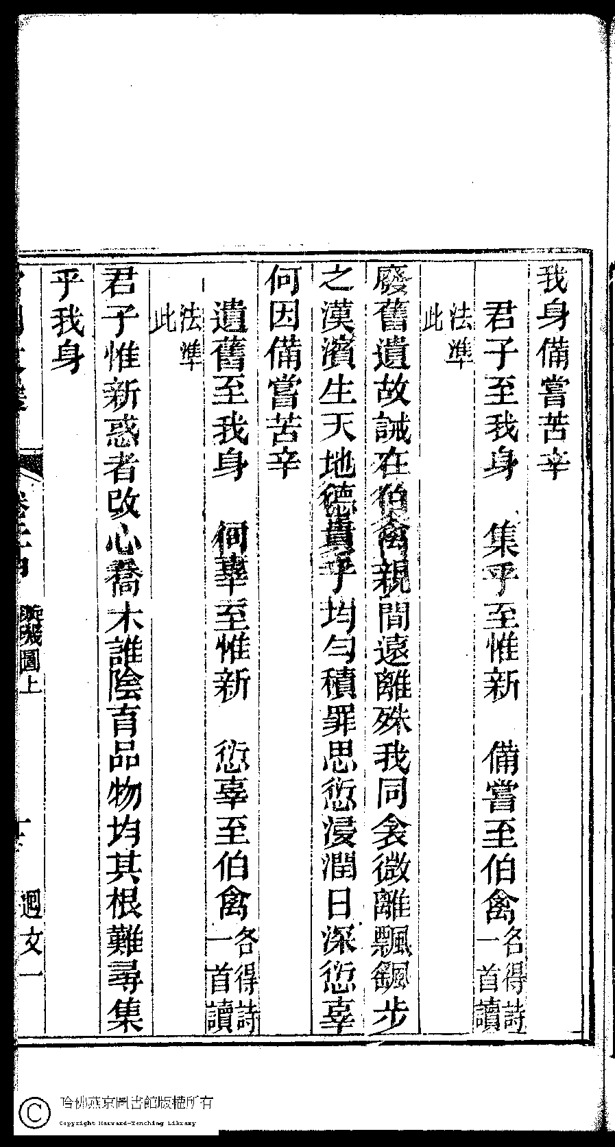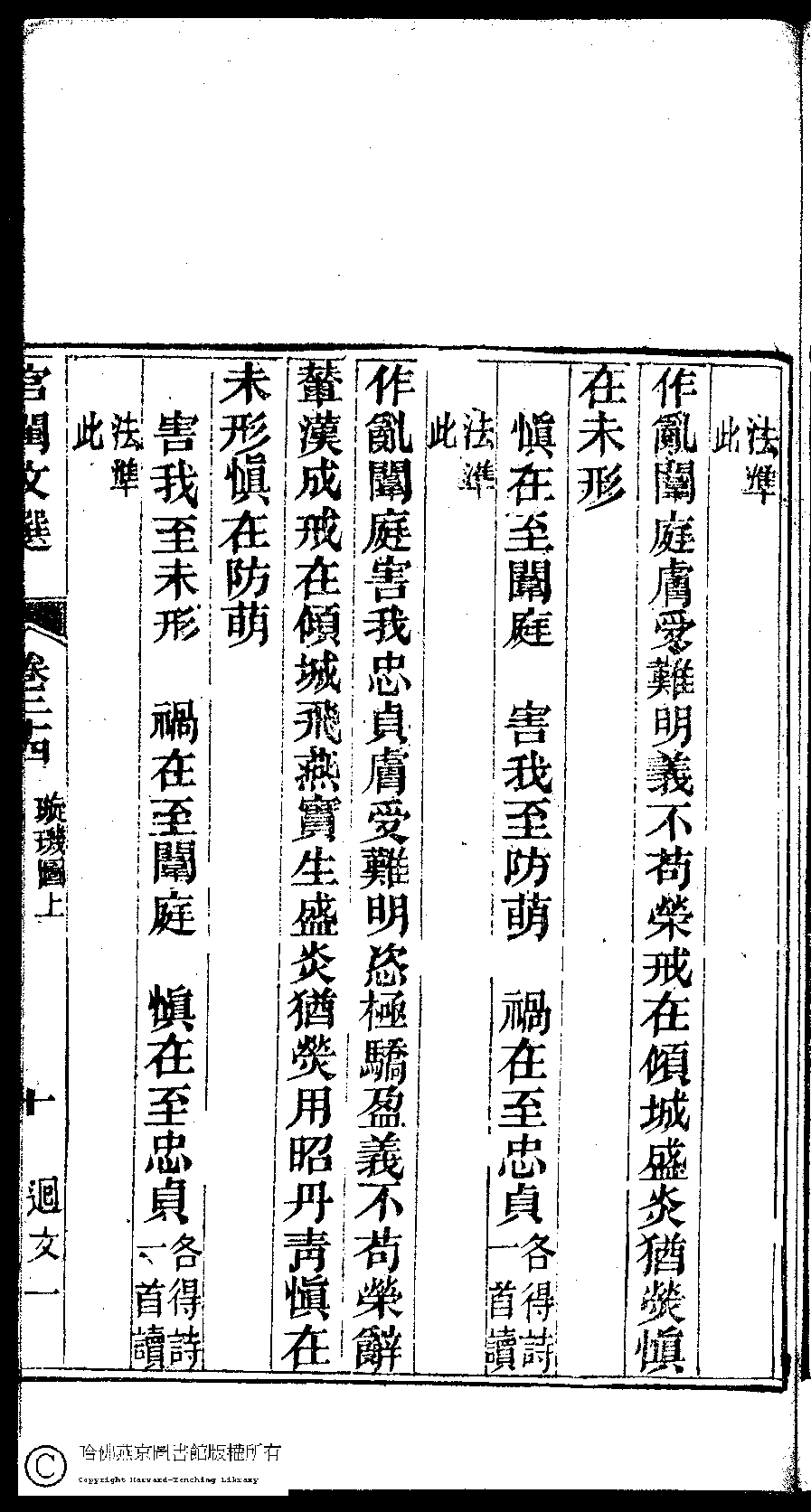 | 四言詩 Si yan shi - 四言詩 - siyanshi 蘇蕙﹐字若蘭 Su Hui, zi: Ruolan 宮閨文選:二十六卷,姓氏小錄 : 一卷(清周壽昌輯訂) Gong gui wen xuan: 26 juan, Xing shi xiao lu: 1 juan (edited by Zhou Shouchang) , pp. 24.10a,24.10b,24.11a,24.11b,24.12a,24.12b,24.13a,24.13b,24.14a,24.14b,24.15a,24.15b,24.16a,24.16b,24.6a,24.6b,24.7a,24.7b,24.8a,24.8b,24.9a,24.9b. |