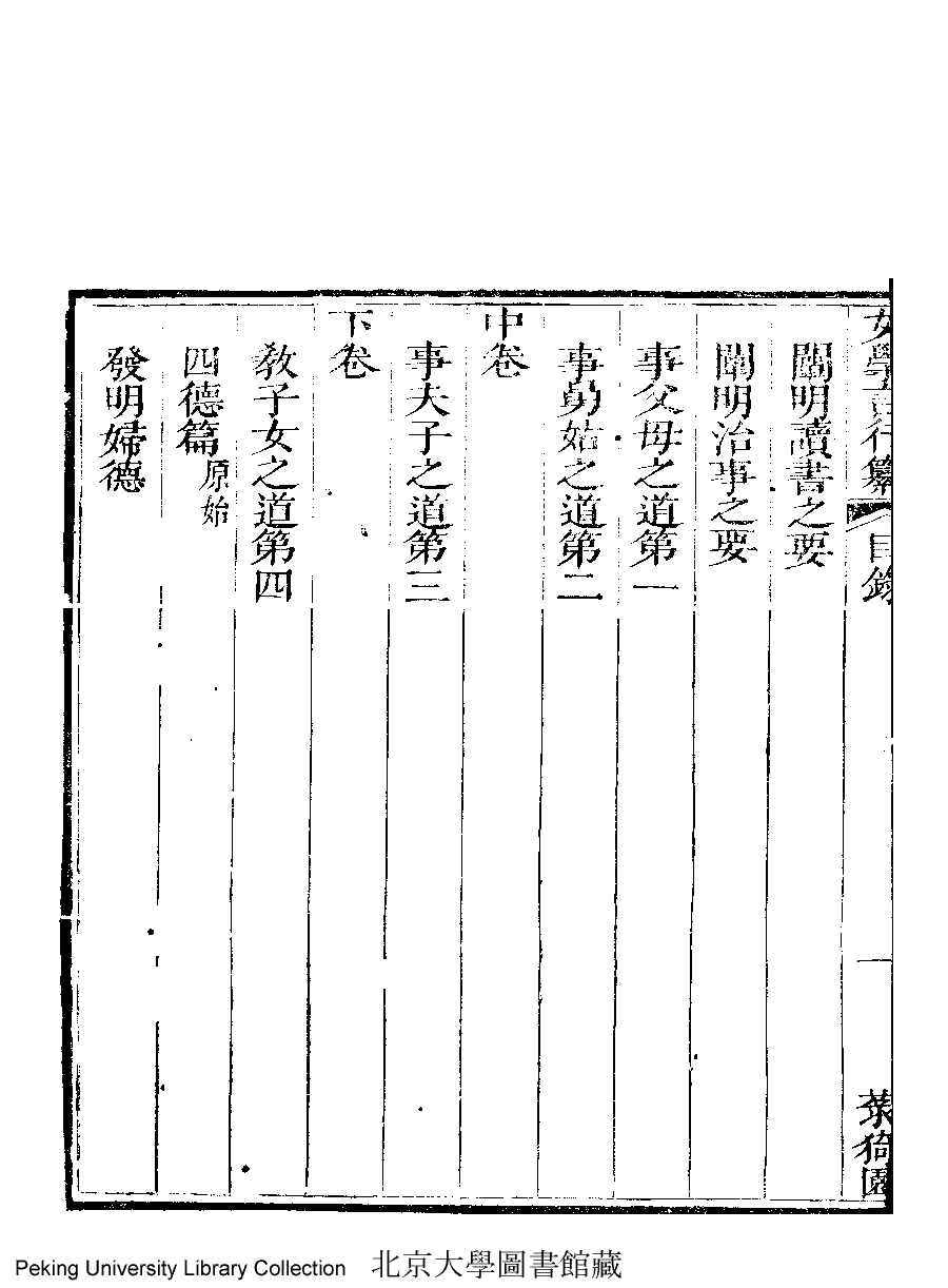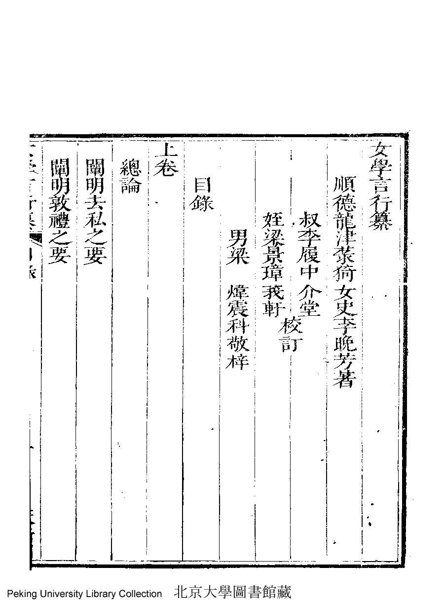 女學言行纂﹕三卷(清李晚芳撰) Nü xue yan xing zhuan: 3 juan (by Li Wanfang, Qing dynasty) , pp. 目錄.1a,目錄.1b,目錄.2a,目錄.2b.
