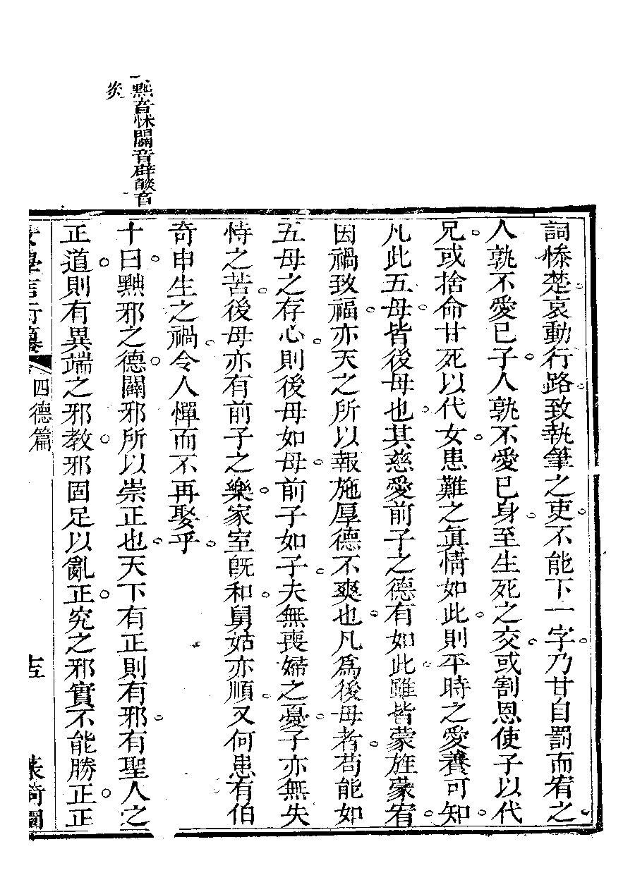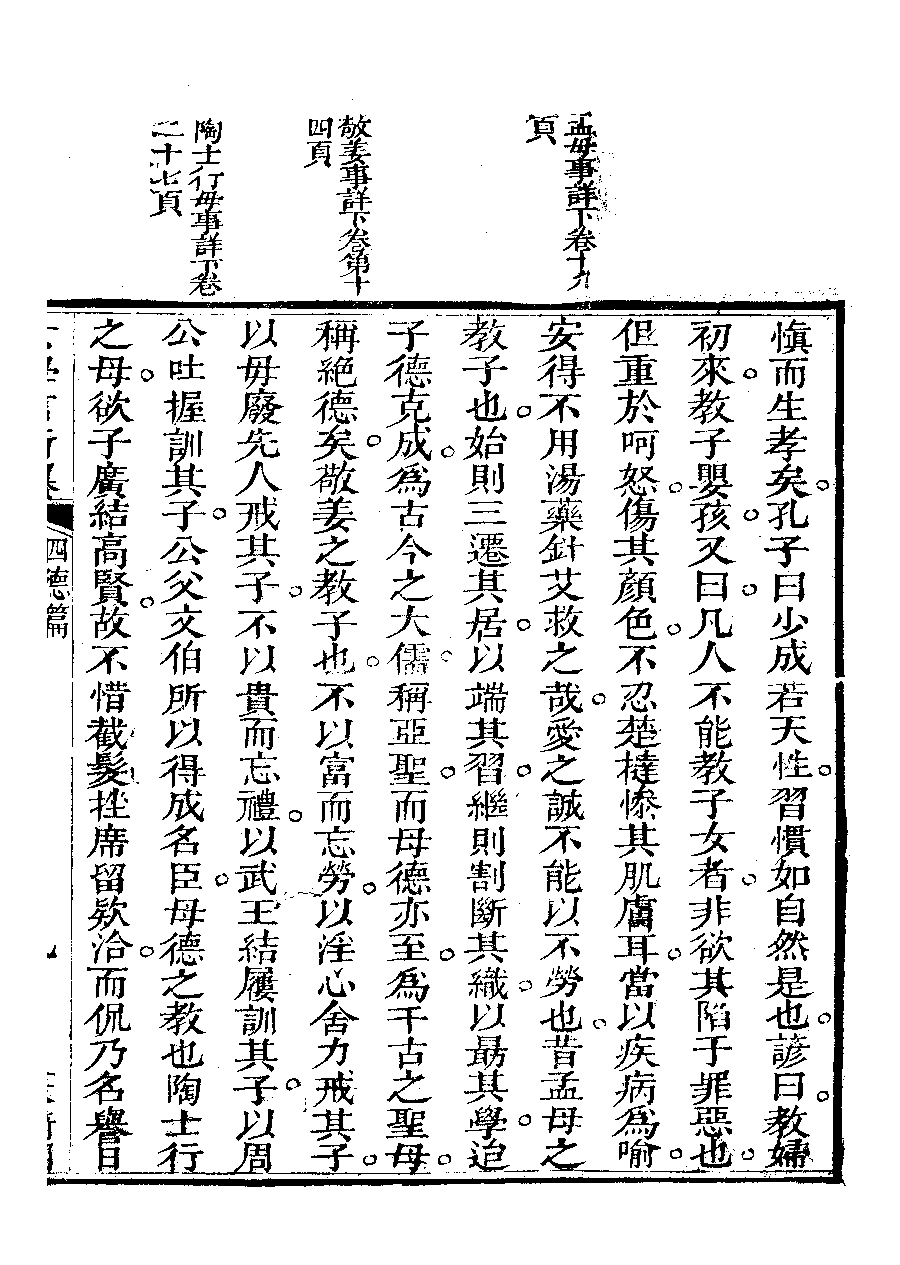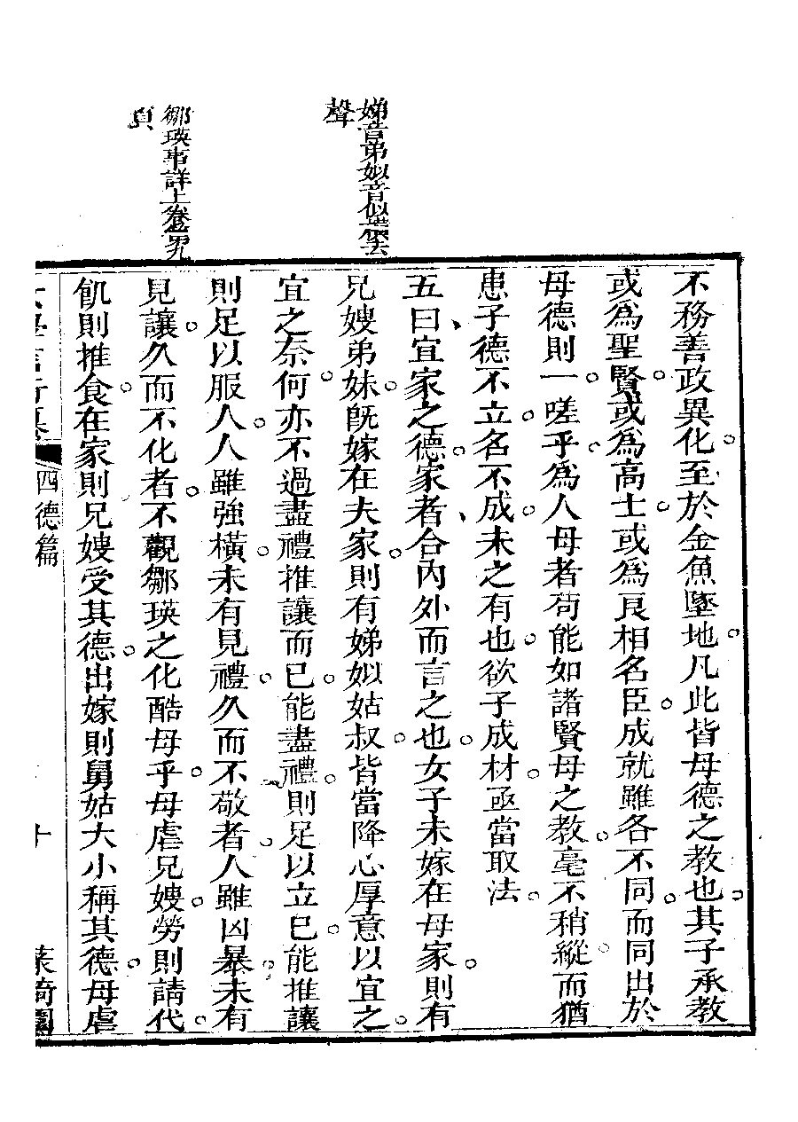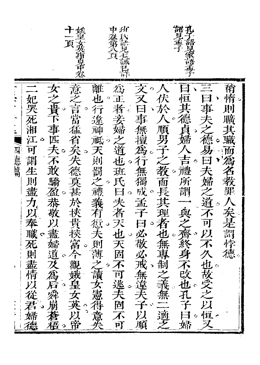 | 四德篇之引證四德 Si de pian zhi yin zheng si de 文﹕文 Wen: Wen 李晚芳﹐號菉猗 Li Wanfang, hao: Luyi 女學言行纂﹕三卷(清李晚芳撰) Nü xue yan xing zhuan: 3 juan (by Li Wanfang, Qing dynasty) , pp. 四德篇.10a,四德篇.10b,四德篇.12a,四德篇.12b,四德篇.13a,四德篇.13b,四德篇.14a,四德篇.14b,四德篇.15a,四德篇.15b,四德篇.16a,四德篇.16b,四德篇.17a,四德篇.17b,四德篇.18a,四德篇.18b,四德篇.19a,四德篇.19b,四德篇.20a,四德篇.20b,四德篇.2b,四德篇.3a,四德篇.3b,四德篇.4a,四德篇.4b,四德篇.5a,四德篇.5b,四德篇.6a,四德篇.6b,四德篇.7a,四德篇.7b,四德篇.8a,四德篇.8b,四德篇.9a,四德篇.9b. |