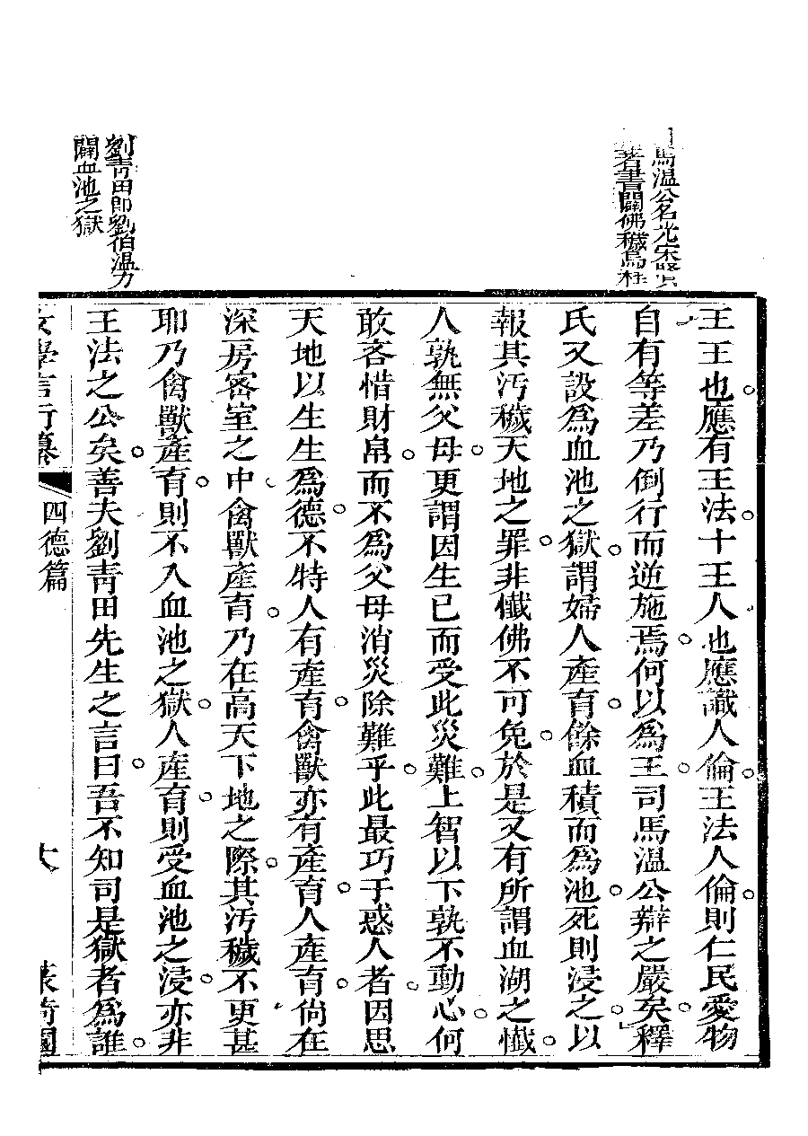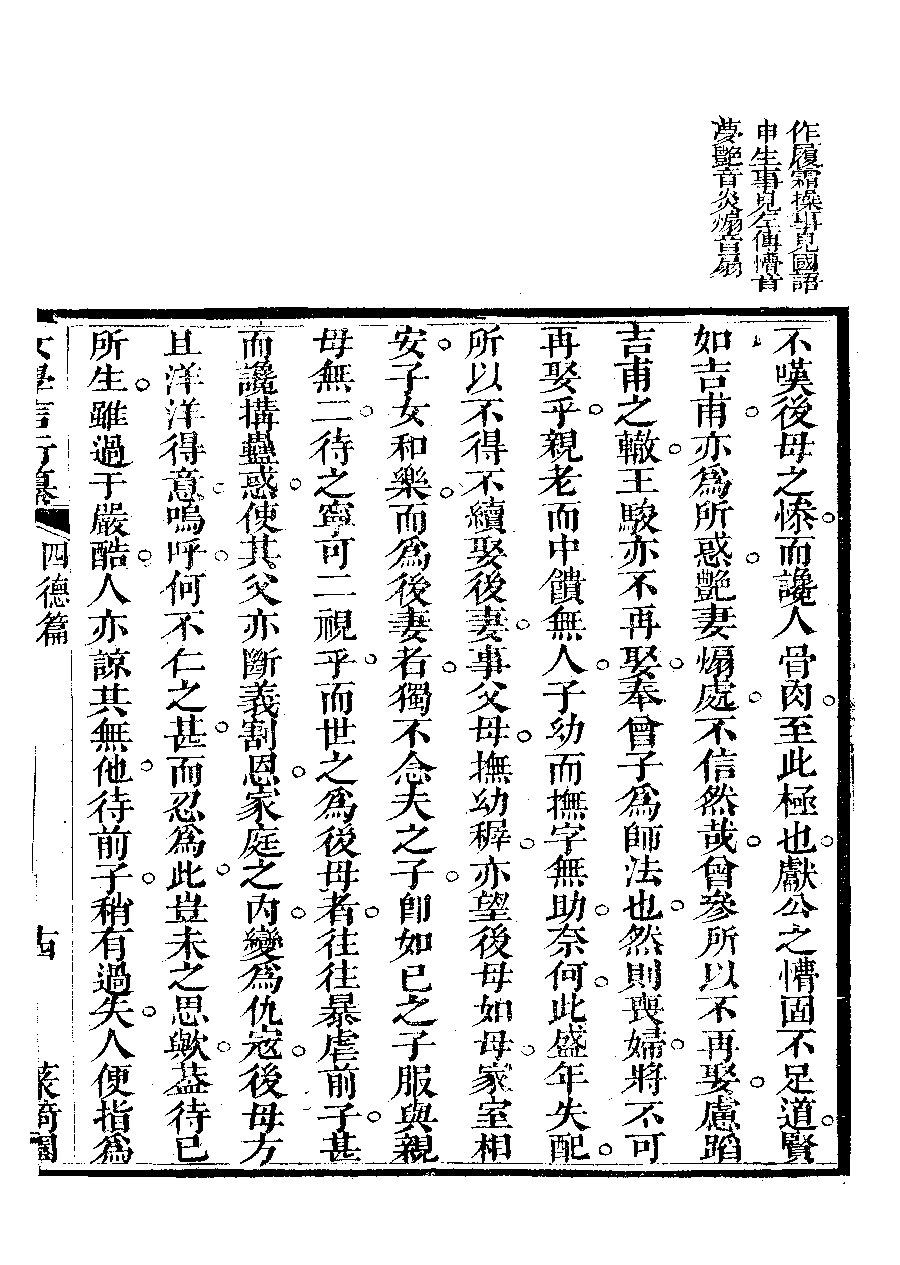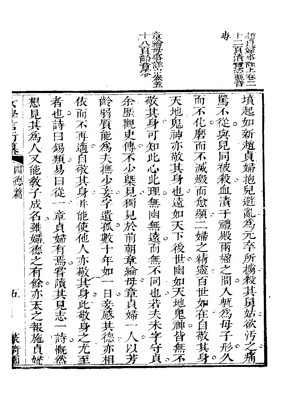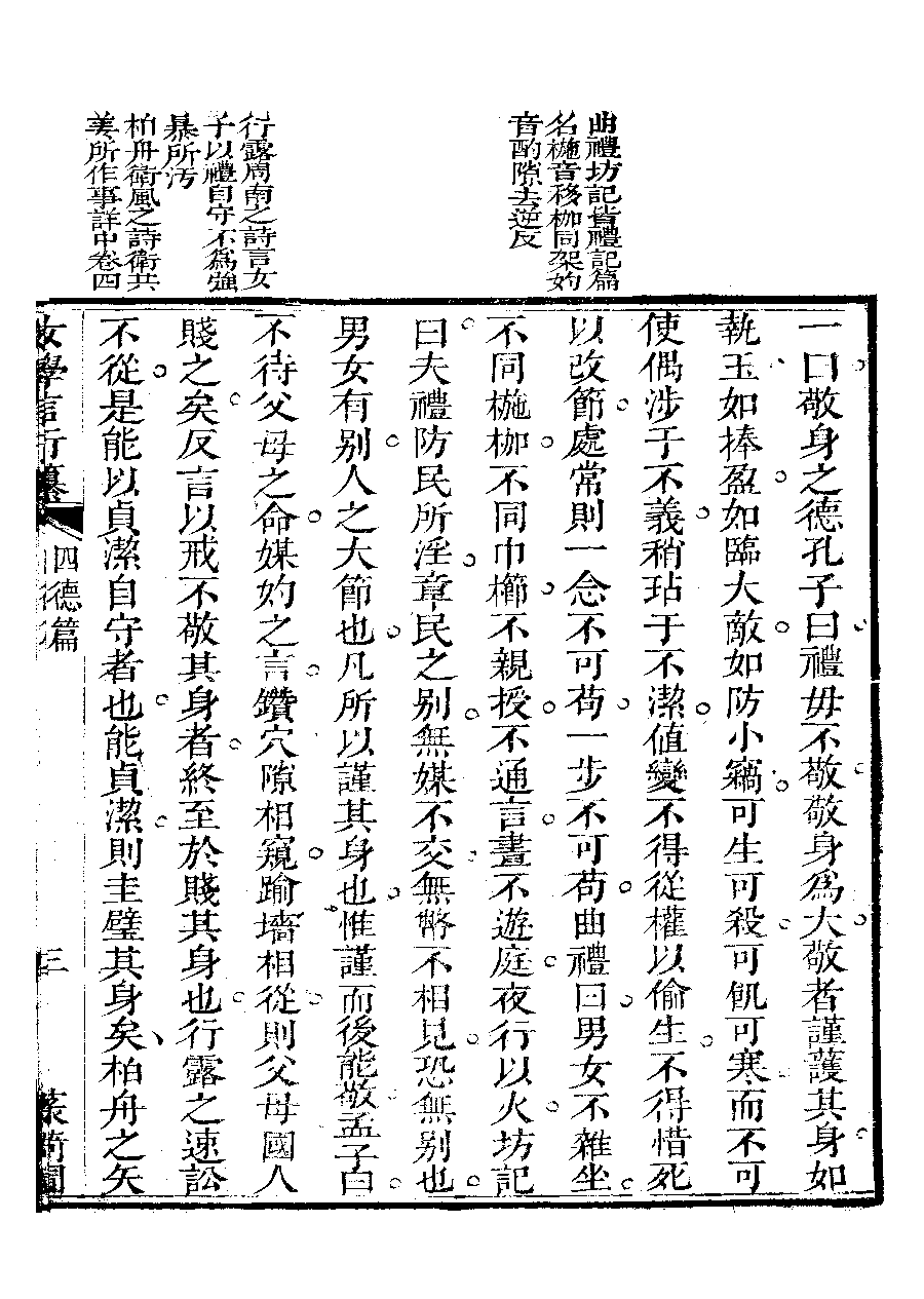 | 四德篇之引證四德 Si de pian zhi yin zheng si de 文﹕文 Wen: Wen 李晚芳﹐號菉猗 Li Wanfang, hao: Luyi 女學言行纂﹕三卷(清李晚芳撰) Nü xue yan xing zhuan: 3 juan (by Li Wanfang, Qing dynasty) , pp. 四德篇.10a,四德篇.10b,四德篇.12a,四德篇.12b,四德篇.13a,四德篇.13b,四德篇.14a,四德篇.14b,四德篇.15a,四德篇.15b,四德篇.16a,四德篇.16b,四德篇.17a,四德篇.17b,四德篇.18a,四德篇.18b,四德篇.19a,四德篇.19b,四德篇.20a,四德篇.20b,四德篇.2b,四德篇.3a,四德篇.3b,四德篇.4a,四德篇.4b,四德篇.5a,四德篇.5b,四德篇.6a,四德篇.6b,四德篇.7a,四德篇.7b,四德篇.8a,四德篇.8b,四德篇.9a,四德篇.9b. |