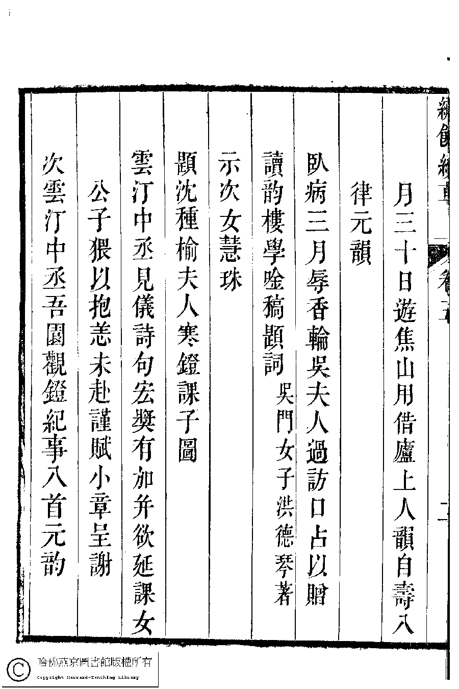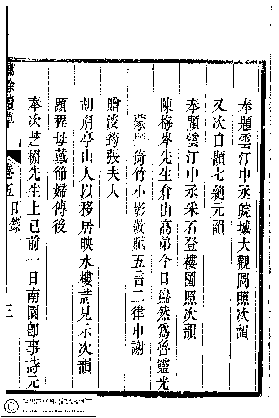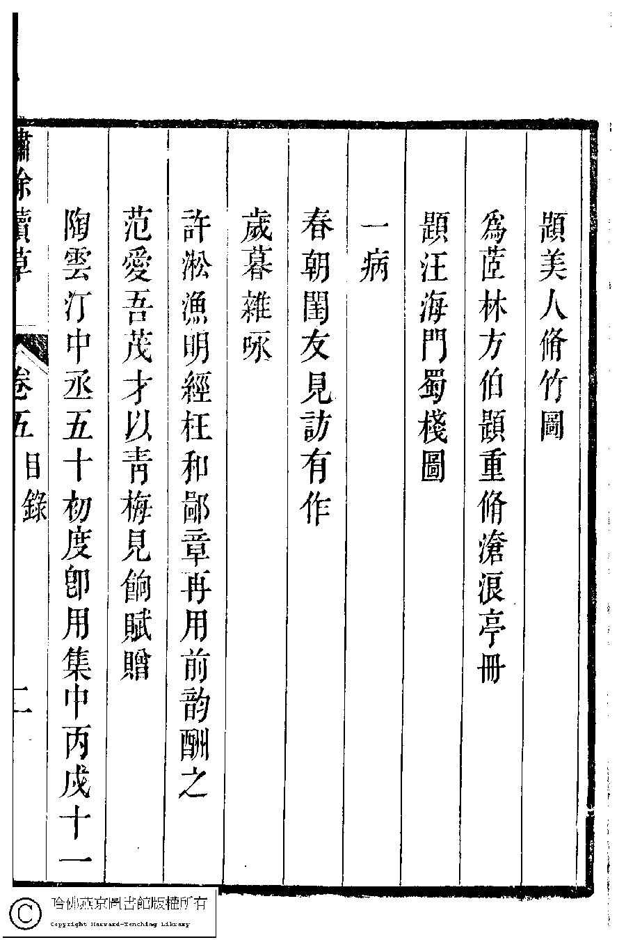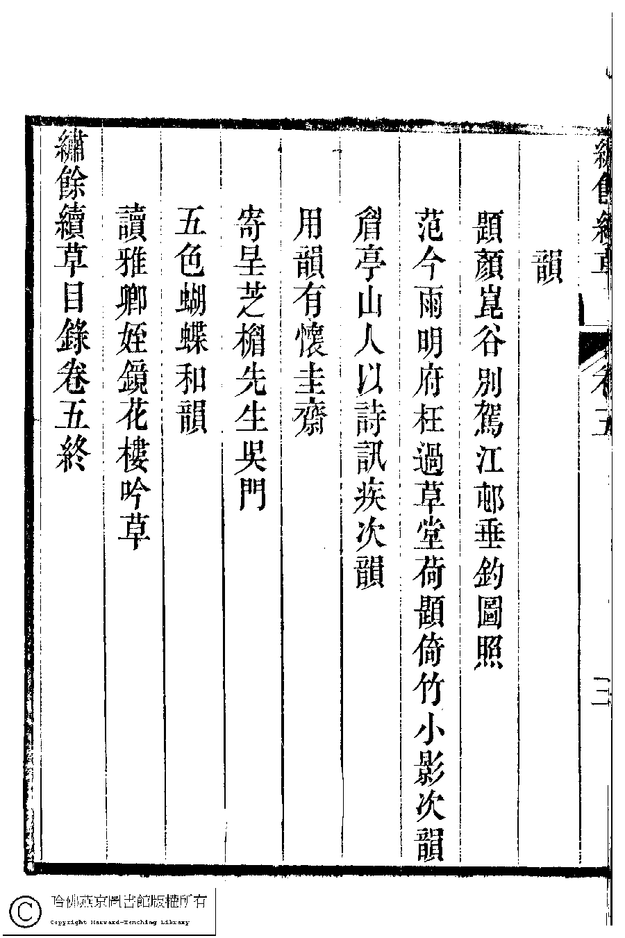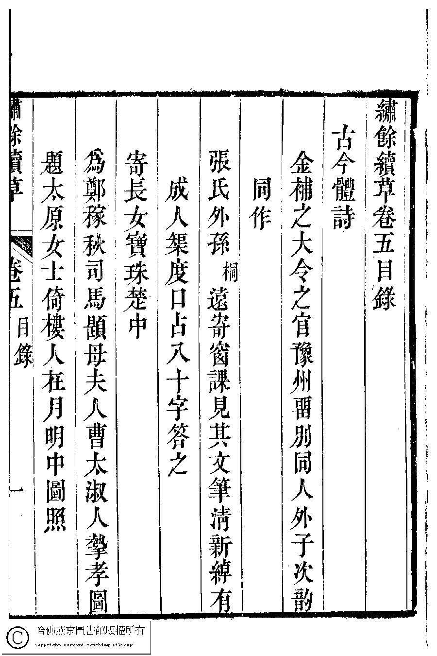 繡餘續草﹕五卷(清歸懋儀撰) Xiu yu xu cao: 5 juan (by Gui Maoyi, Qing dynasty) , pp. 5.目錄.1a,5.目錄.1b,5.目錄.2a,5.目錄.2b,5.目錄.3a,5.目錄.3b.