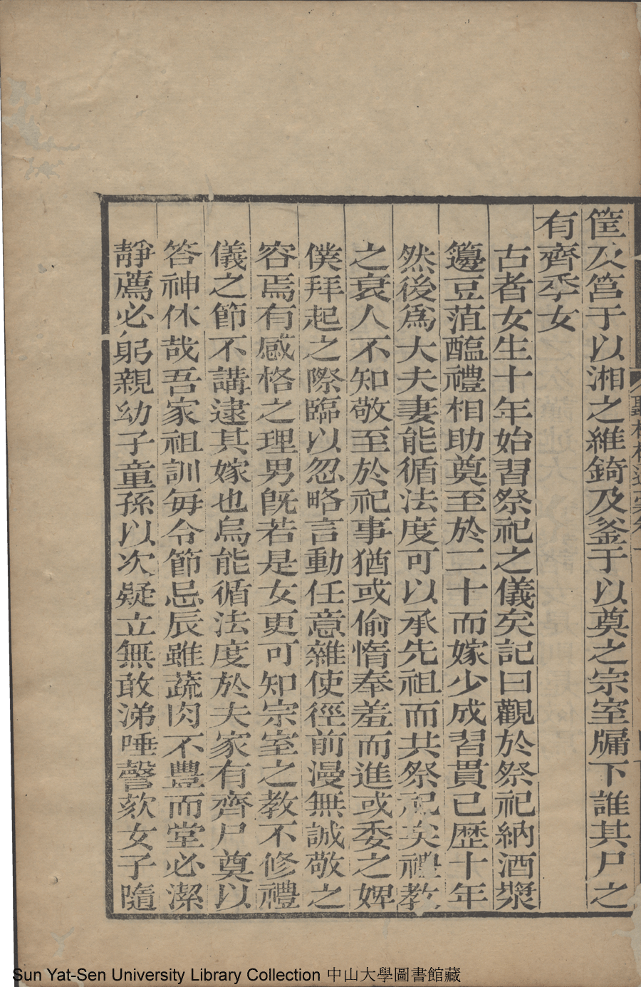 | 采蘋于以采蘋南澗之濱于以采藻于彼行潦于以盛之維筐及筥于以湘之維錡及釜于以奠之宗室牖下誰其尸之有齊季女 Cai ping yu yi cai ping nan jian zhi bin yu yi cai zao yu bi xing lao yu yi cheng zhi wei kuang ji ju yu yi xiang zhi wei yi ji fu yu yi dian zhi zong shi you xia shui qi shi zhi you zhai ji nü 文﹕文 Wen: Wen 陳爾士﹐號靜友﹐字煒卿 Chen Ershi, hao: Jingyou, zi: Weiqing 聽松樓遺稿: 四卷(清陳爾士撰) Ting song lou yi gao: 4 juan (by Chen Ershi, Qing dynasty) , pp. 卷一4a,卷一4b,卷一5a. |