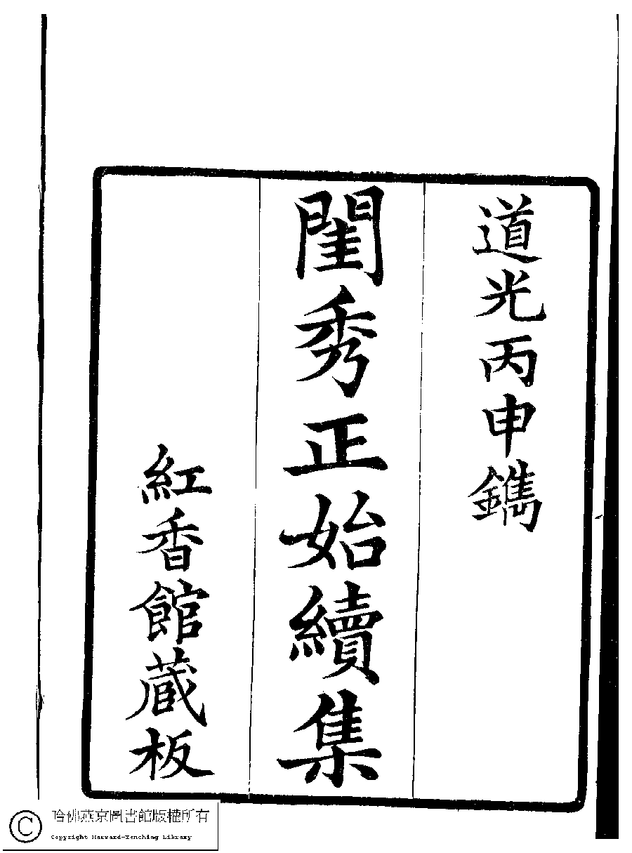 國朝閨秀正始續集﹕十卷﹐附錄﹕一卷﹐補遺﹕一卷﹐輓詞﹕一卷(清惲珠輯) Guo chao gui xiu zheng shi xu ji: 10 juan, fu lu: 1 juan, bu yi: 1 juan, wan ci: 1 juan (edited by Yun Zhu, Qing dynasty) , pp. 扉頁.