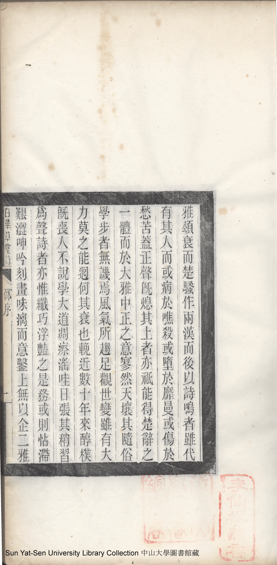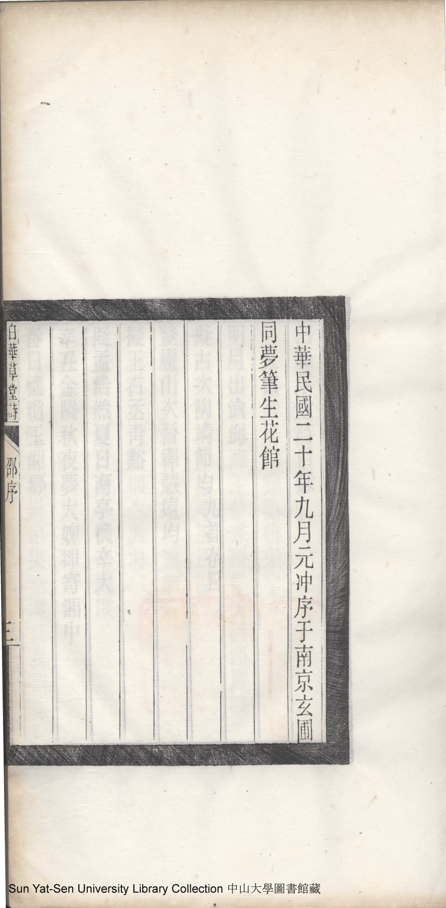 白華草堂詩:六卷,玉尺樓詩:一卷(清張昭漢撰) Bai hua cao tang shi: 6 juan, Yu chi lou shi: 1 juan(by Zhang Zhaohan, Qing dynasty) , pp. 邵元沖序1a,邵元沖序1b,邵元沖序2a,邵元沖序2b,邵元沖序3a,邵元沖序3b.