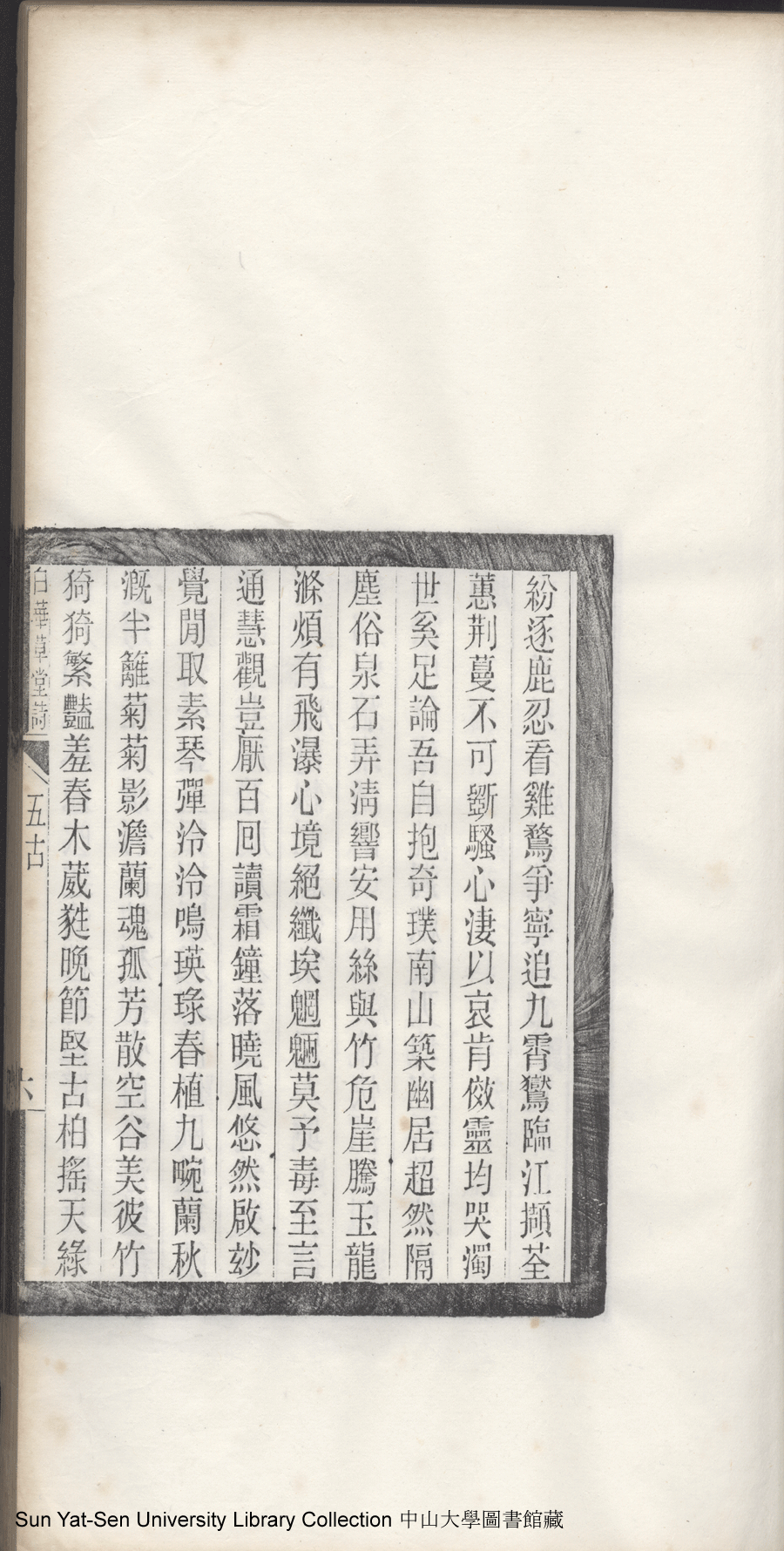 白華草堂詩:六卷,玉尺樓詩:一卷(清張昭漢撰) Bai hua cao tang shi: 6 juan, Yu chi lou shi: 1 juan(by Zhang Zhaohan, Qing dynasty) , pp. 五古5b,五古6a,五古6b.