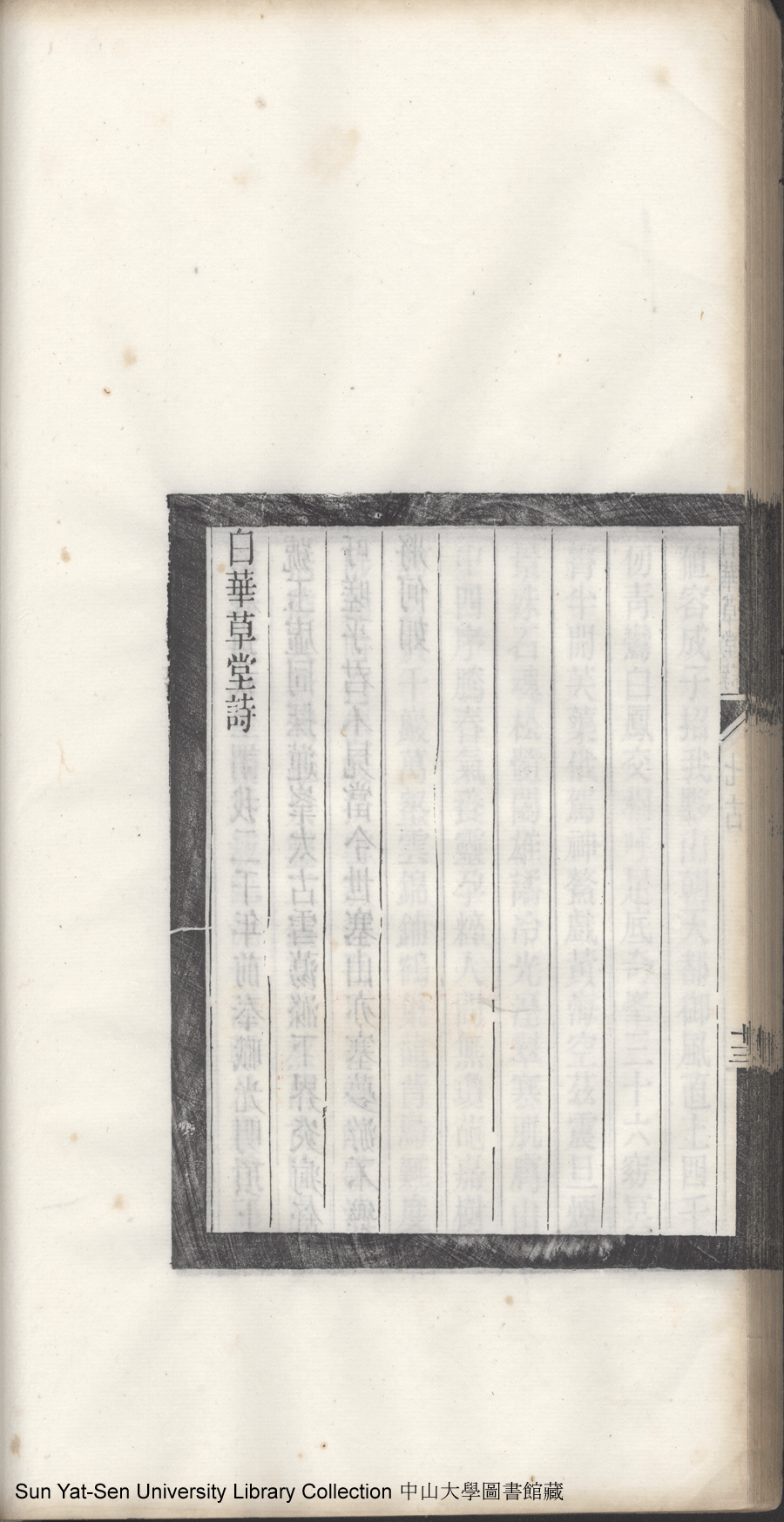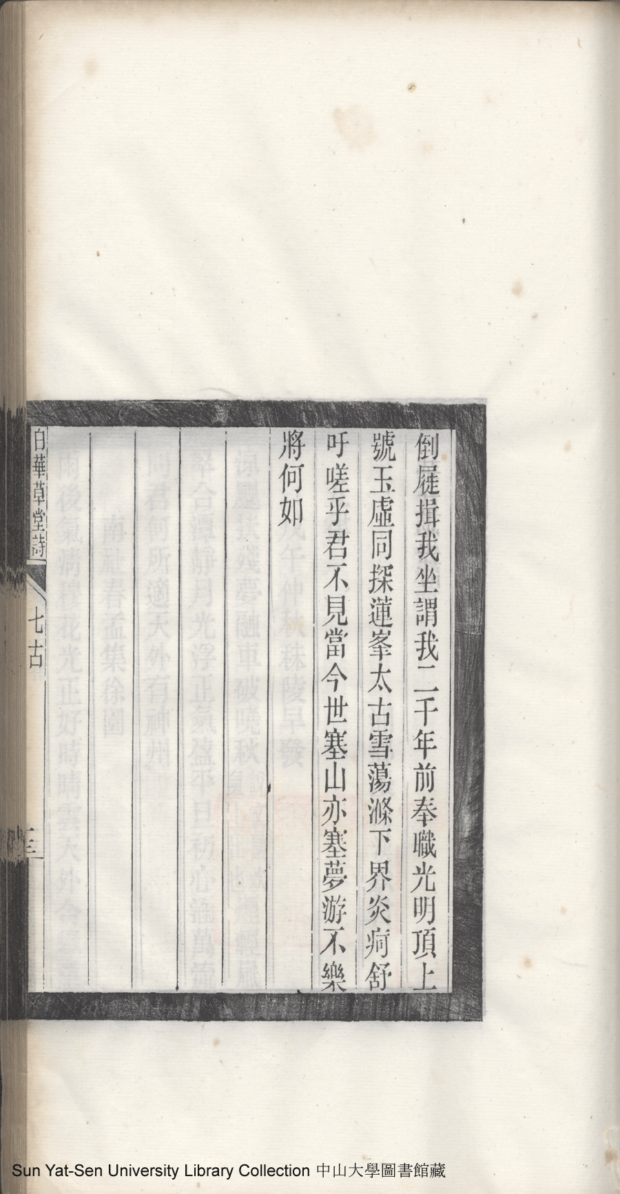 白華草堂詩:六卷,玉尺樓詩:一卷(清張昭漢撰) Bai hua cao tang shi: 6 juan, Yu chi lou shi: 1 juan(by Zhang Zhaohan, Qing dynasty) , pp. 七古12a,七古12b,七古13a,七古13b.