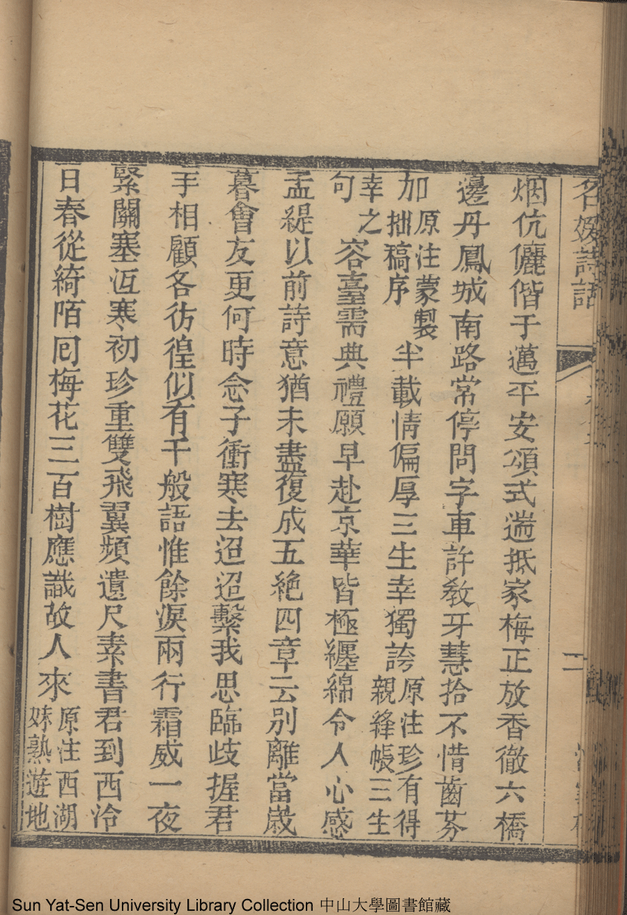 | 論張䌌英顧太清韓畹卿 Lun Zhang Xiying Gu Taiqing Han Wanqing 文﹕詩話 Wen: Shi hua 沈善寶﹐號西湖散人﹐字湘佩 Shen Shanbao, hao: Xihusanren, zi: Xiangpei 名媛詩話十二卷續集三卷: 十五卷(清沈善寶撰) Ming yuan shi hua shi er juan xu ji san juan: 15 juan (by Shen Shanbao, Qing Dynasty) , pp. 續集中1b,續集中2a,續集中2b,續集中3a. |