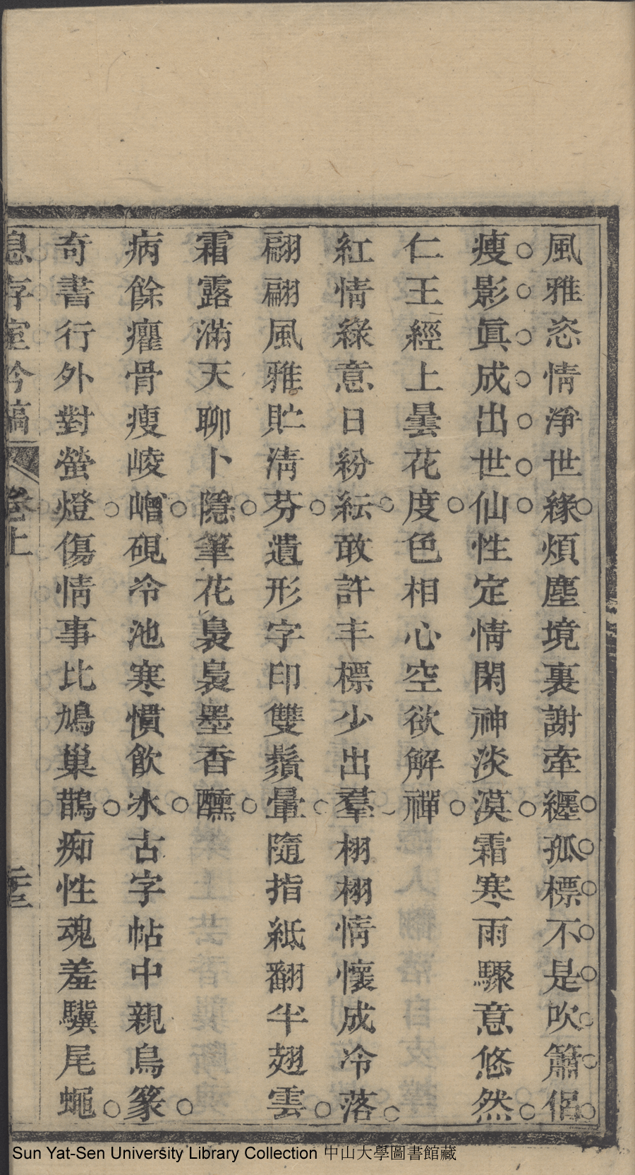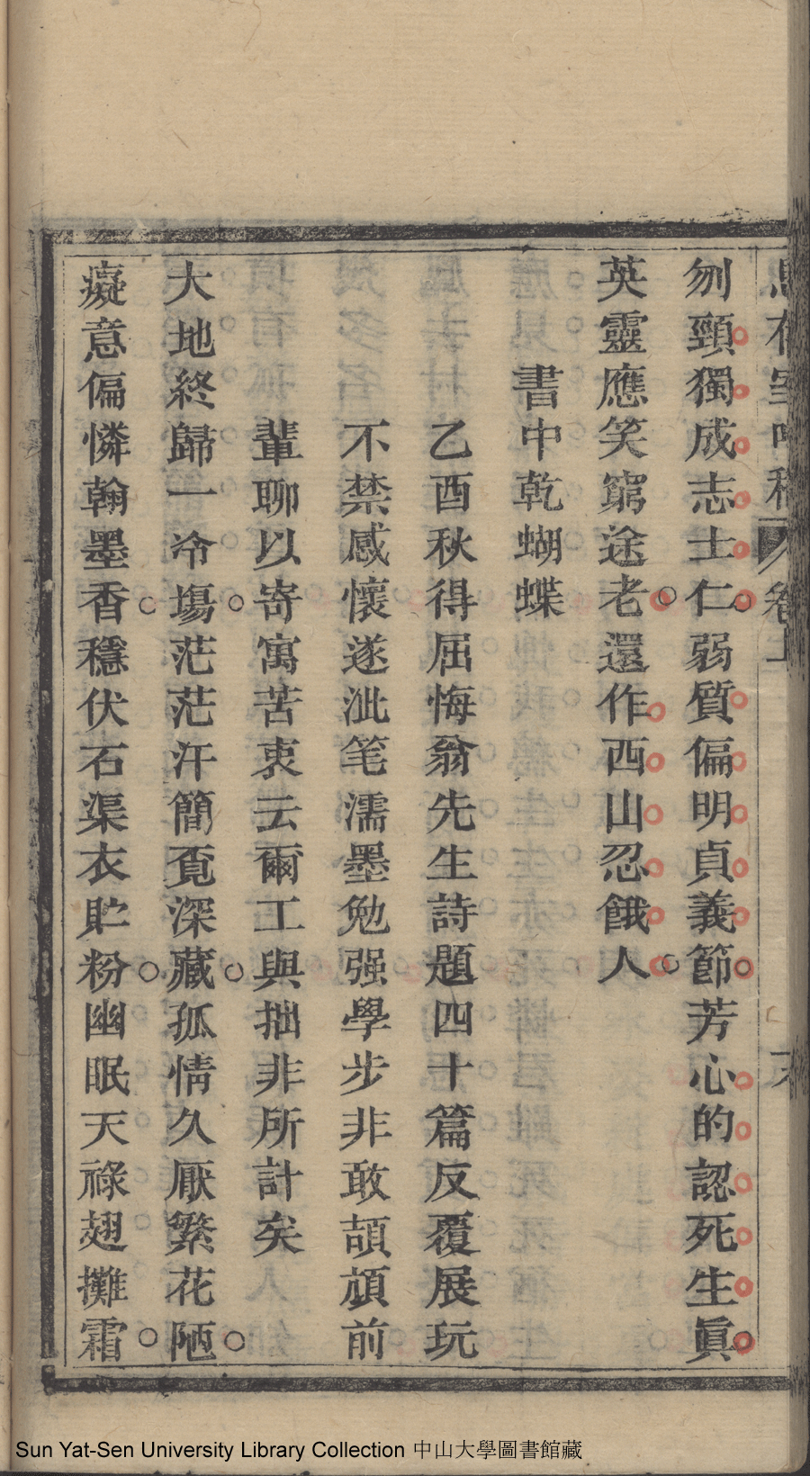 | 書中乾蝴蝶(有序)(四十首) Shou zhong gan hu die (you xu) (si shi shou) 詩 - 七言律詩 shi - qiyanlüshi 杭温如﹐字玉輝 Hang Wenru, zi: Yuhui 息存室吟稿初集一卷續集一卷:二卷(清杭溫如撰) Xi cun shi yin gao chu ji yi juan xu ji yi juan: 2 juan (by Hang Wenru, Qing Dynasty) , pp. 初集18b,初集19a,初集19b,初集20a,初集20b,初集21a,初集21b,初集22a,初集22b,初集23a,初集23b,初集24a,初集24b,初集25a,初集25b,初集26a. |