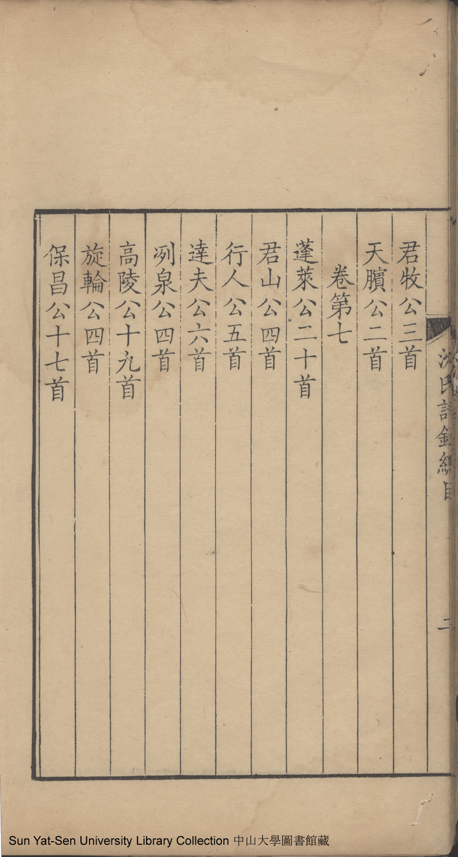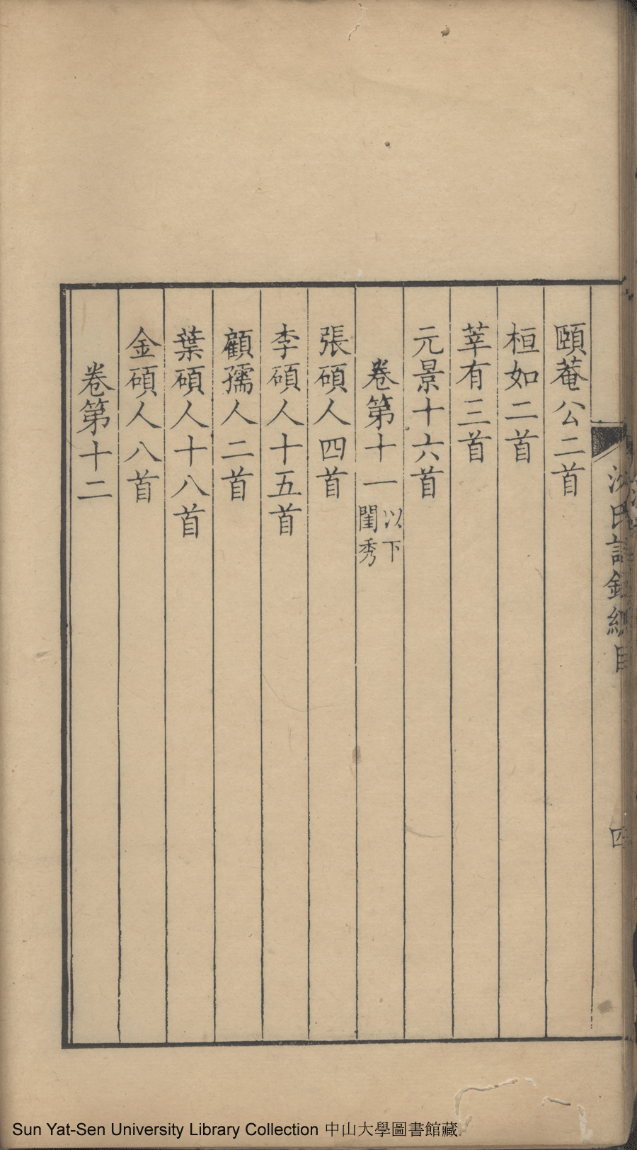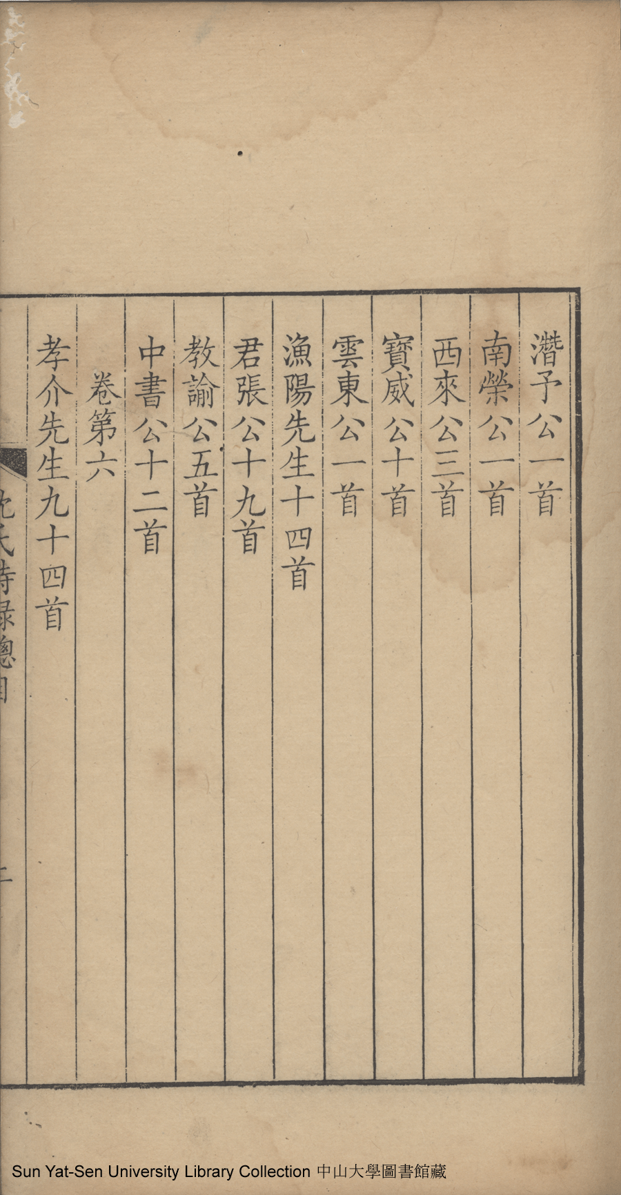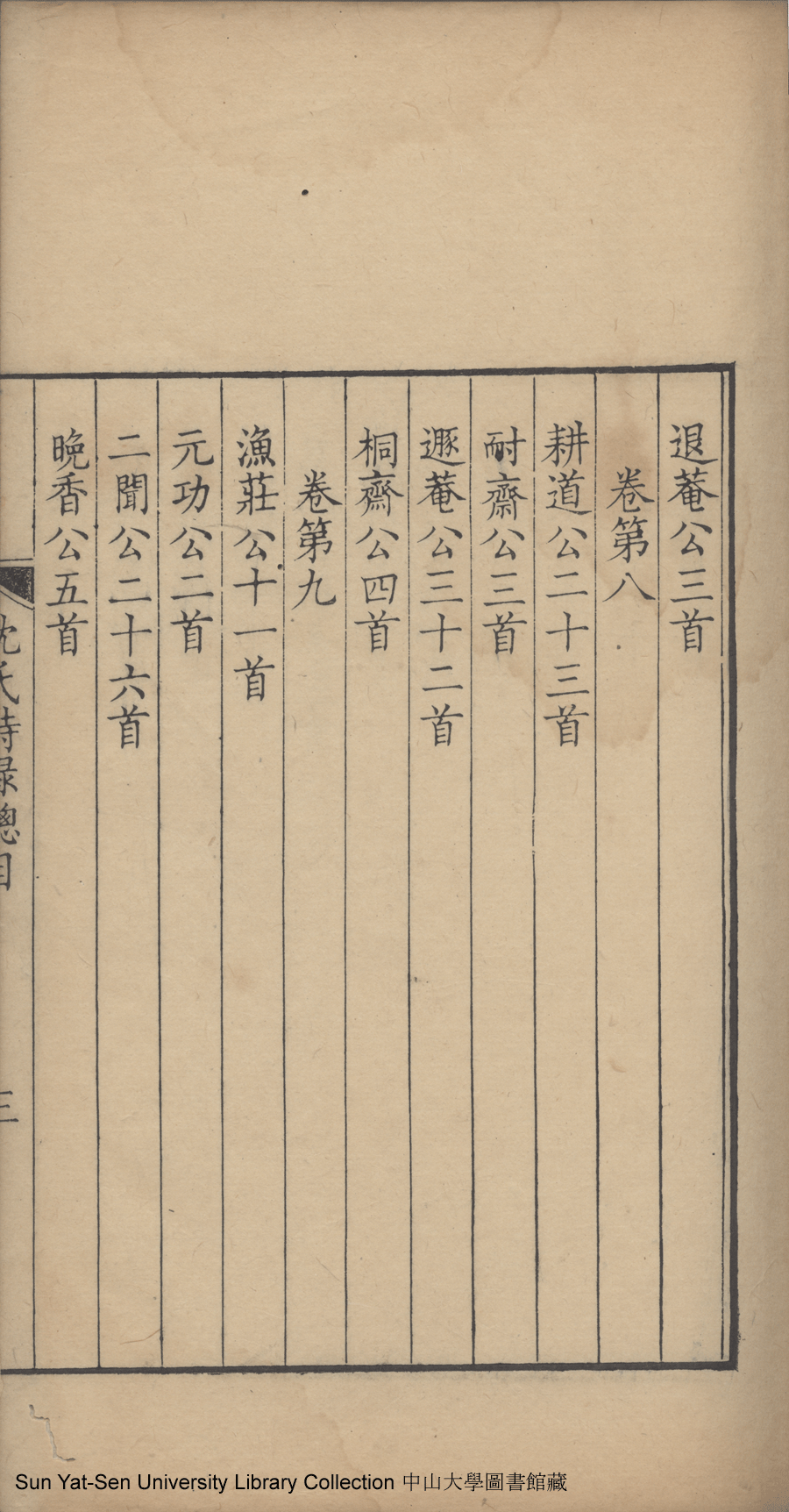吳江沈氏詩集:十二卷(清沈祖禹輯) Wujiang Shen shi shi ji: 12 juan (by Shen Zuyu, Qing dynasty , pp. 總目1a,總目1b,總目2a,總目2b,總目3a,總目3b,總目4a,總目4b,總目5a,總目5b.